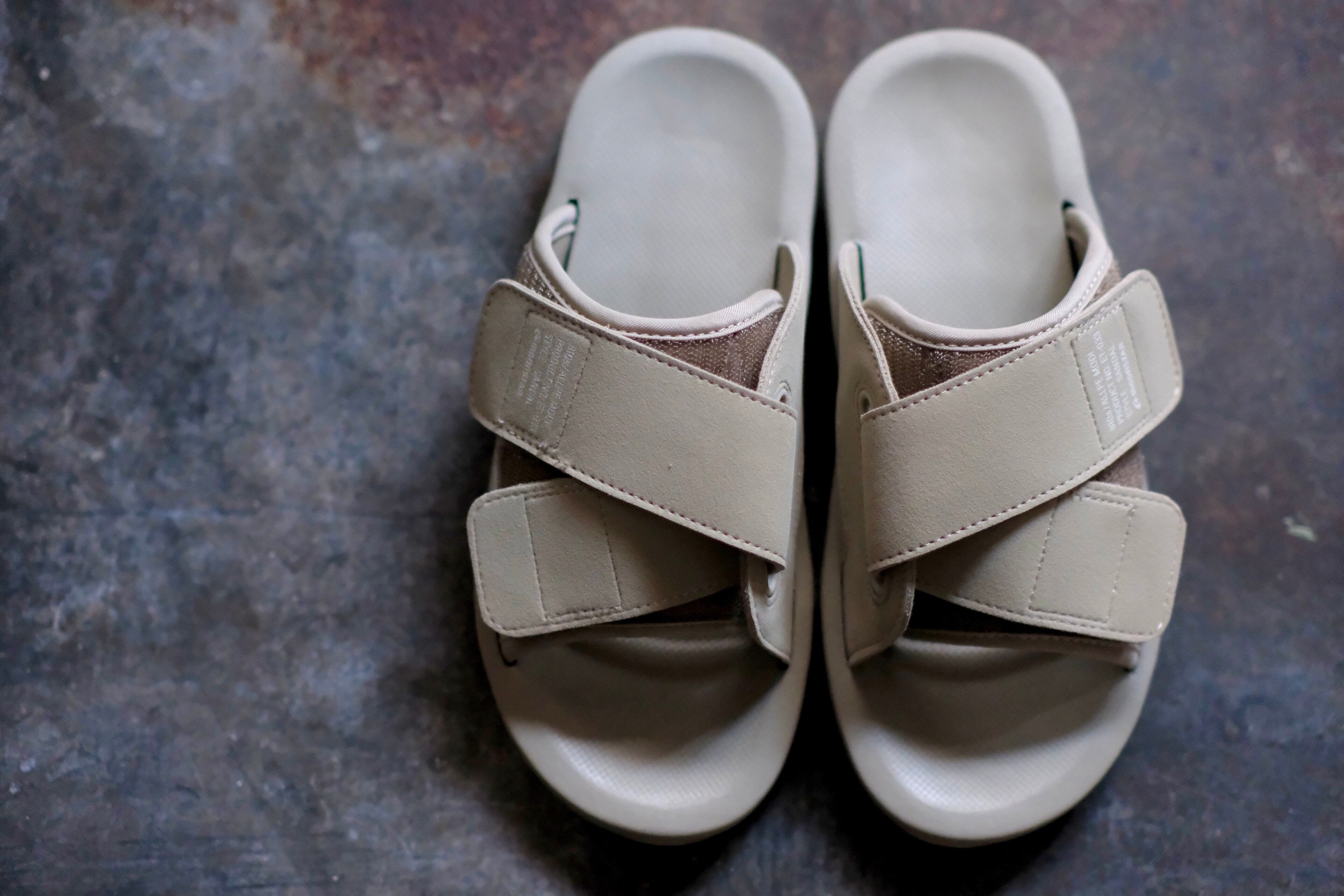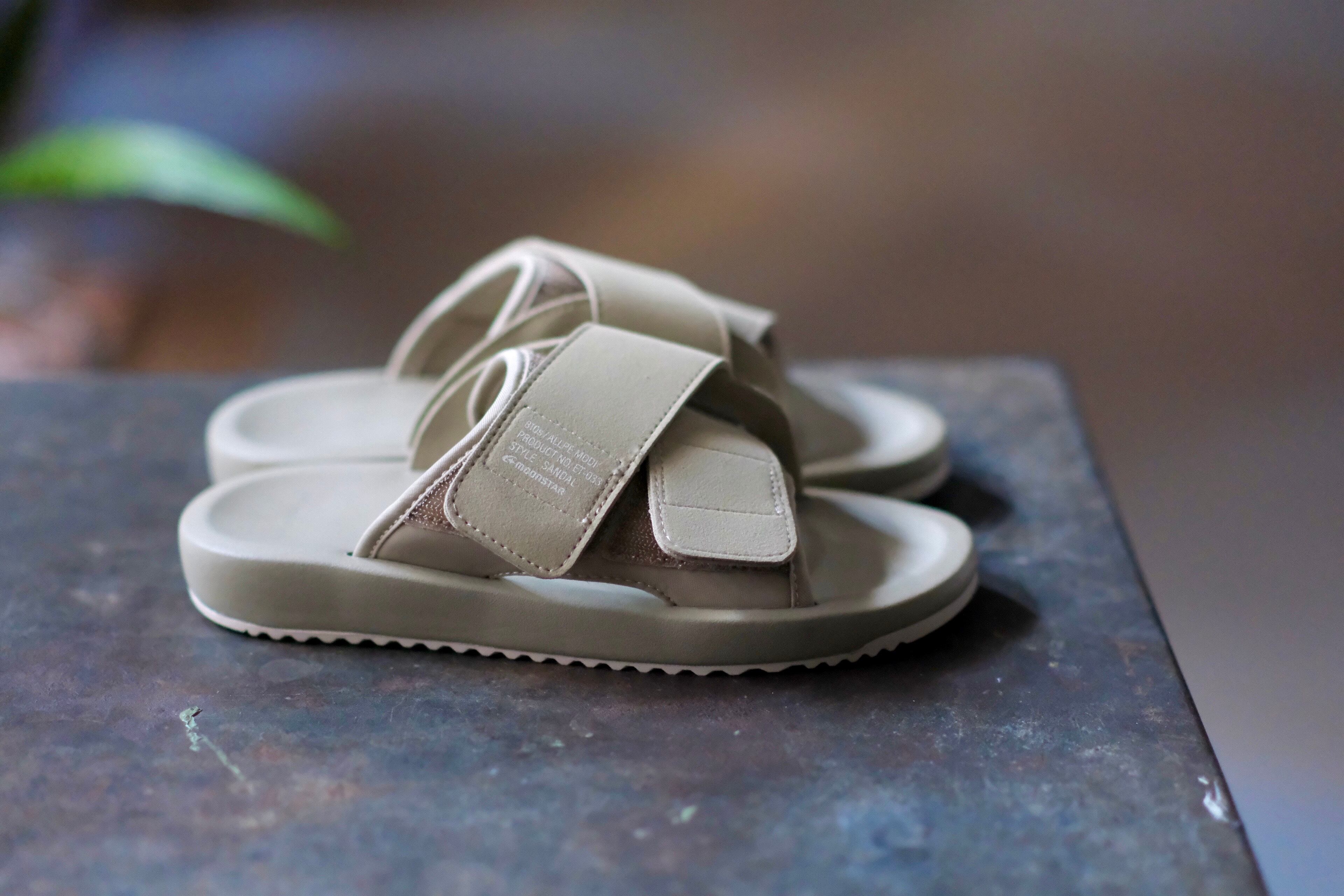 履く人に合わせてベルトを自由に固定できる簡潔な構造のサンダルタイプ。