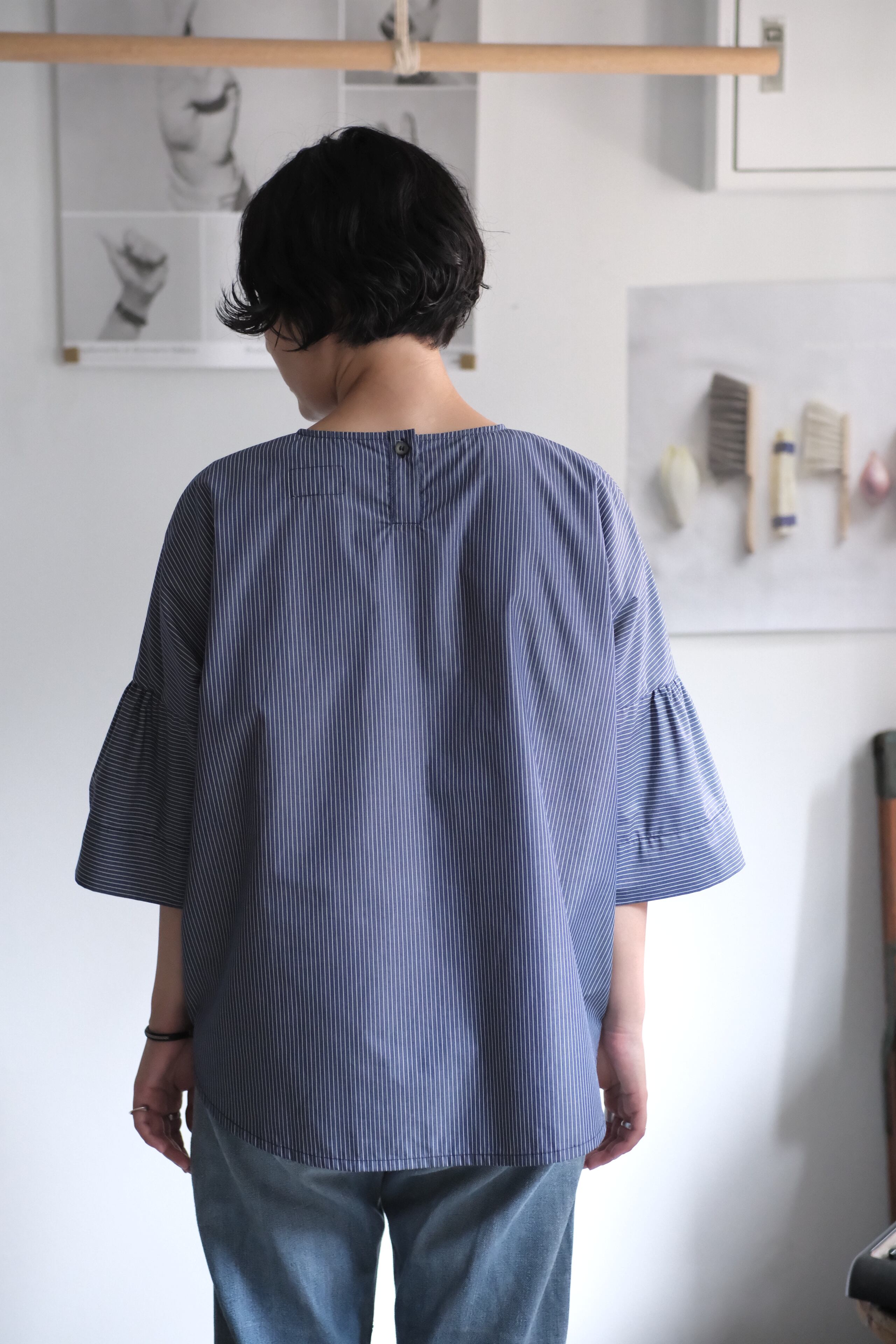 ポイントのギャザースリーブとシンプルでゆったりとしたシルエットのプルオーバーシャツ。