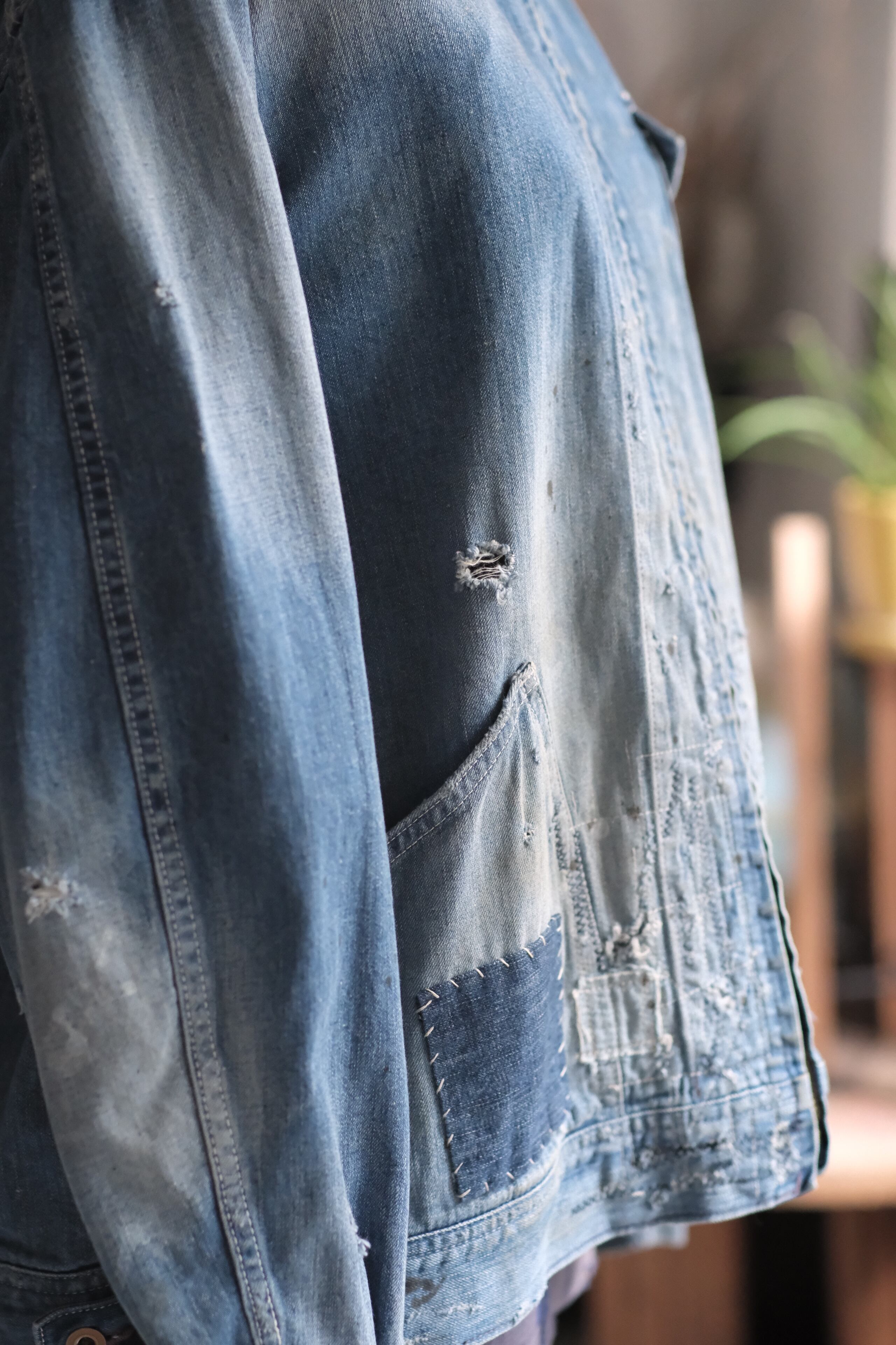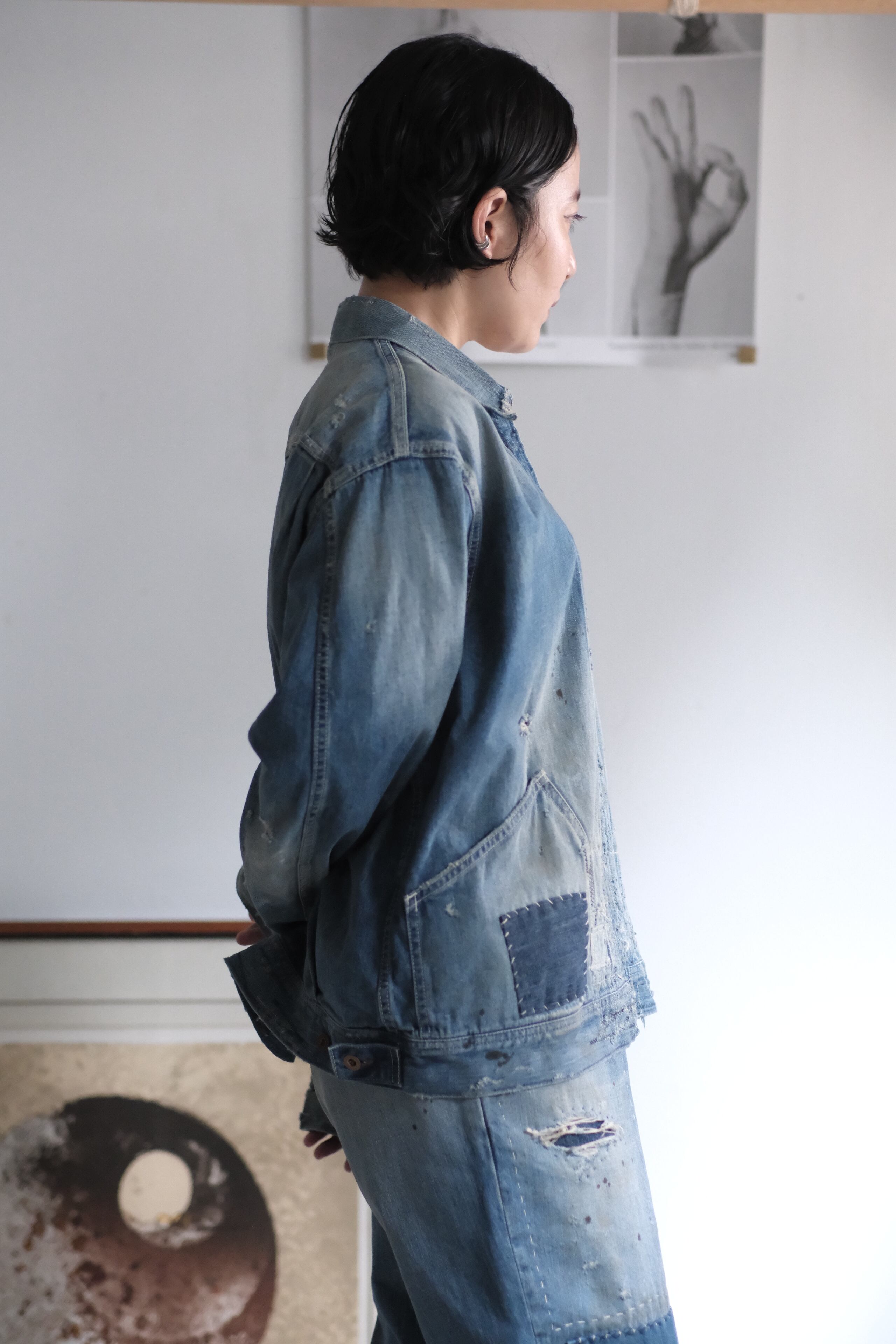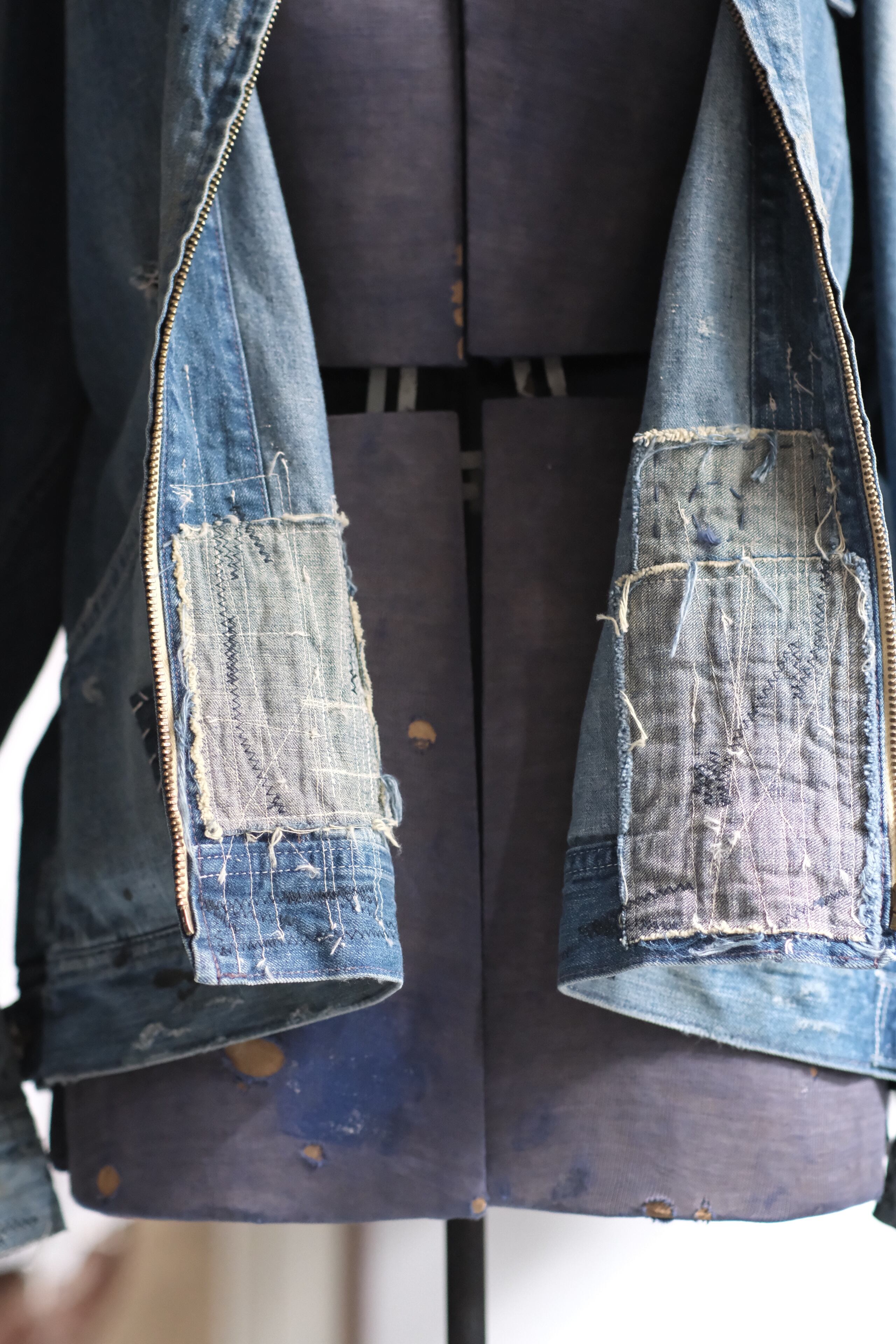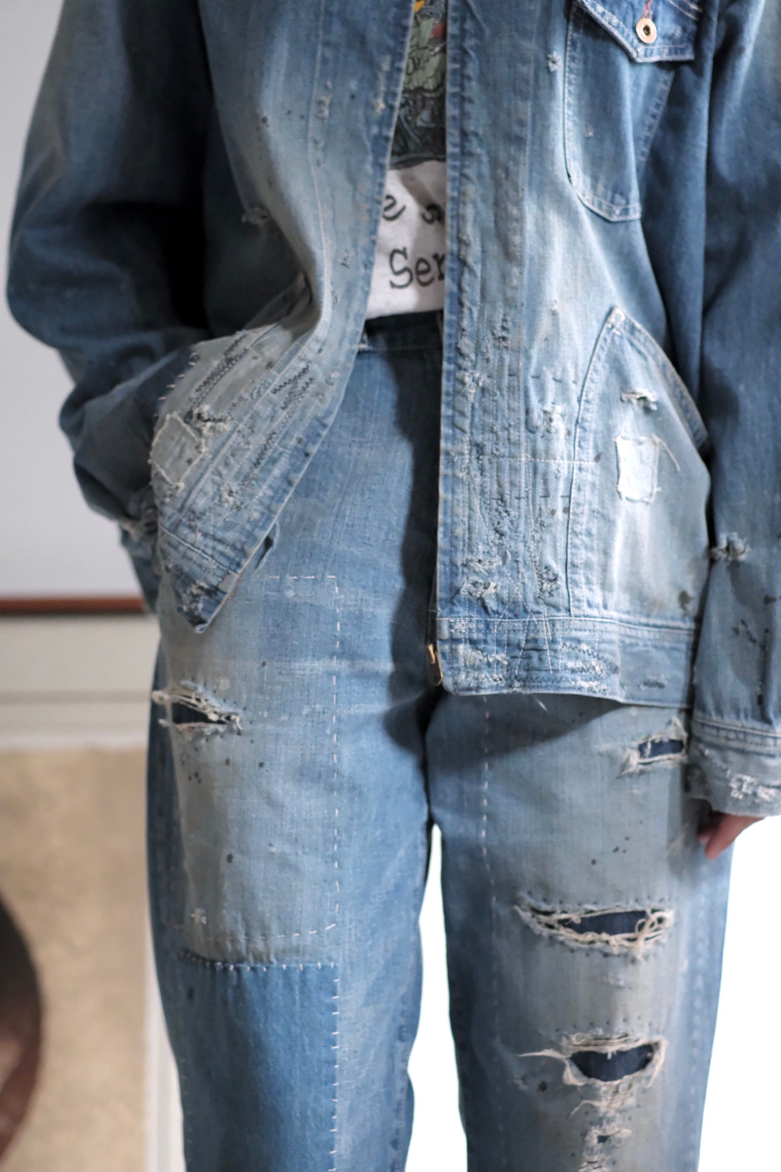 ダメージ部分にリペアを手作業にて施し、更にダメージ加工を施し、リペアを施しの繰り返しにより、本物のヴィンテージ感がある仕上がりになっています。