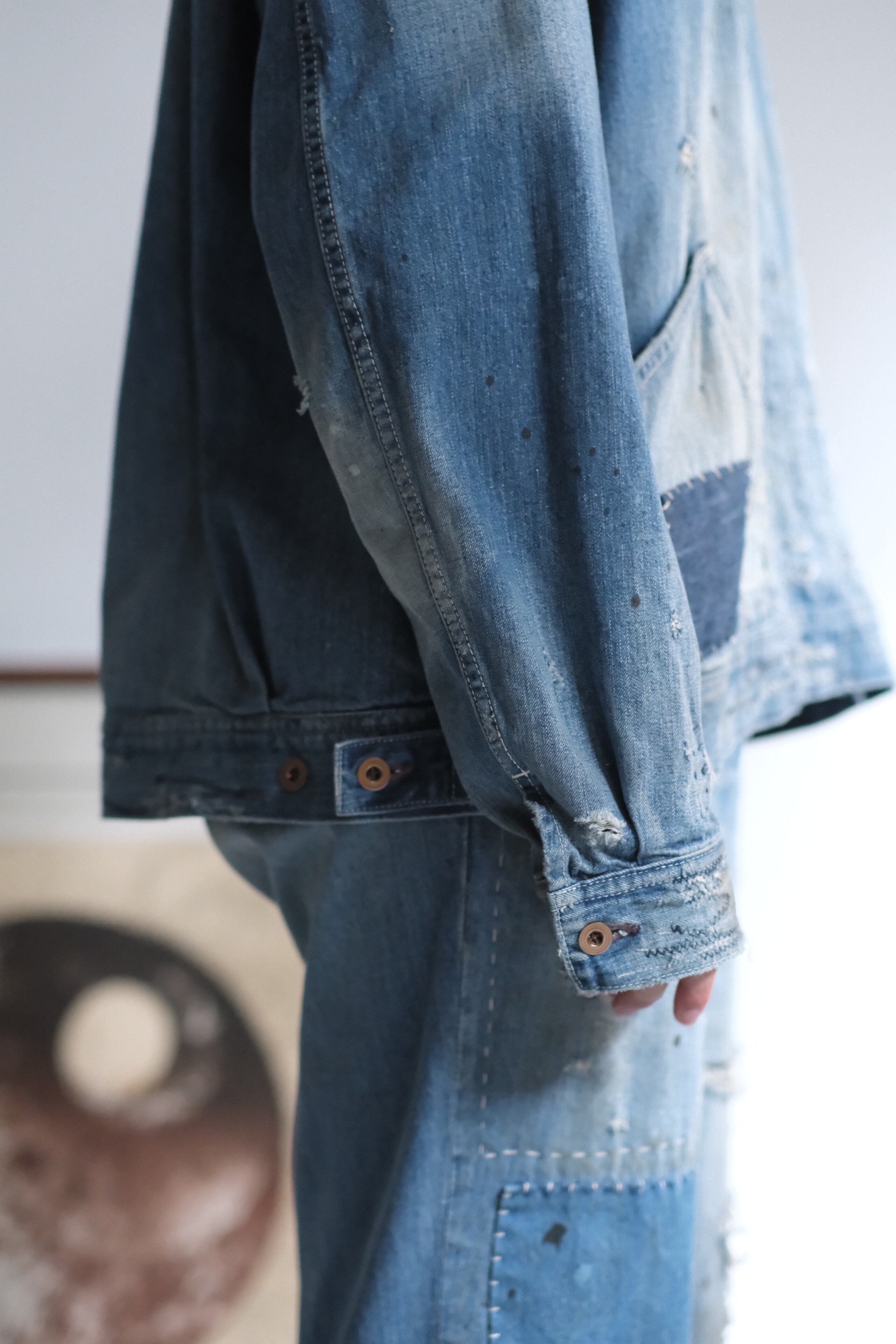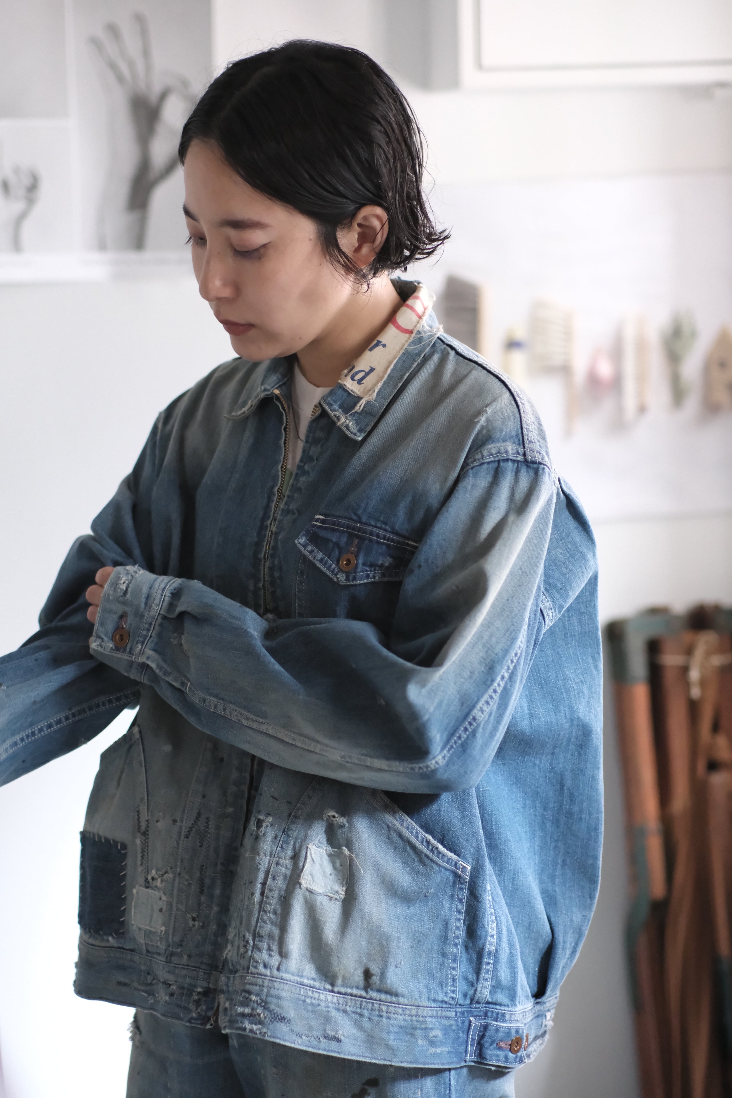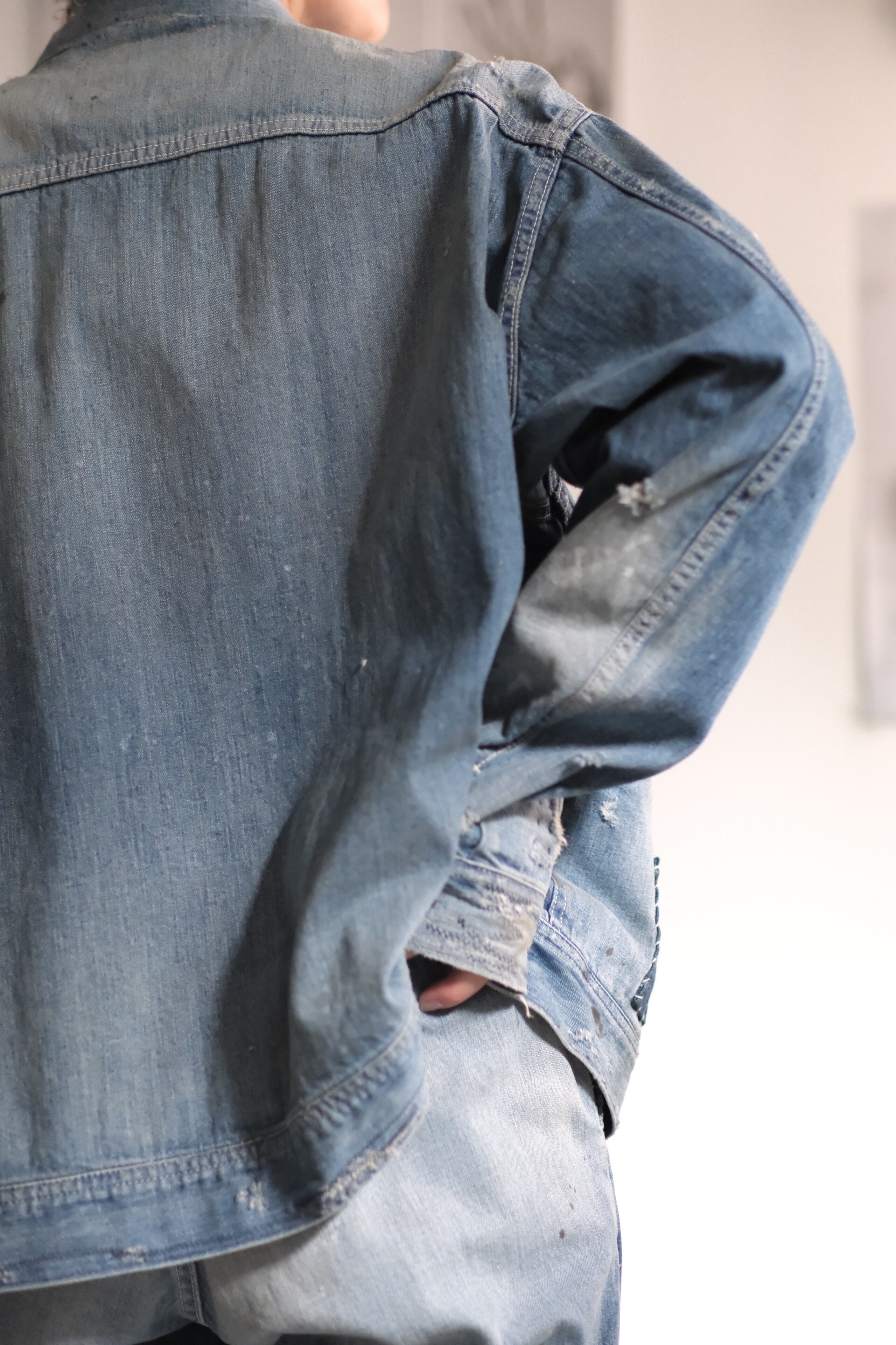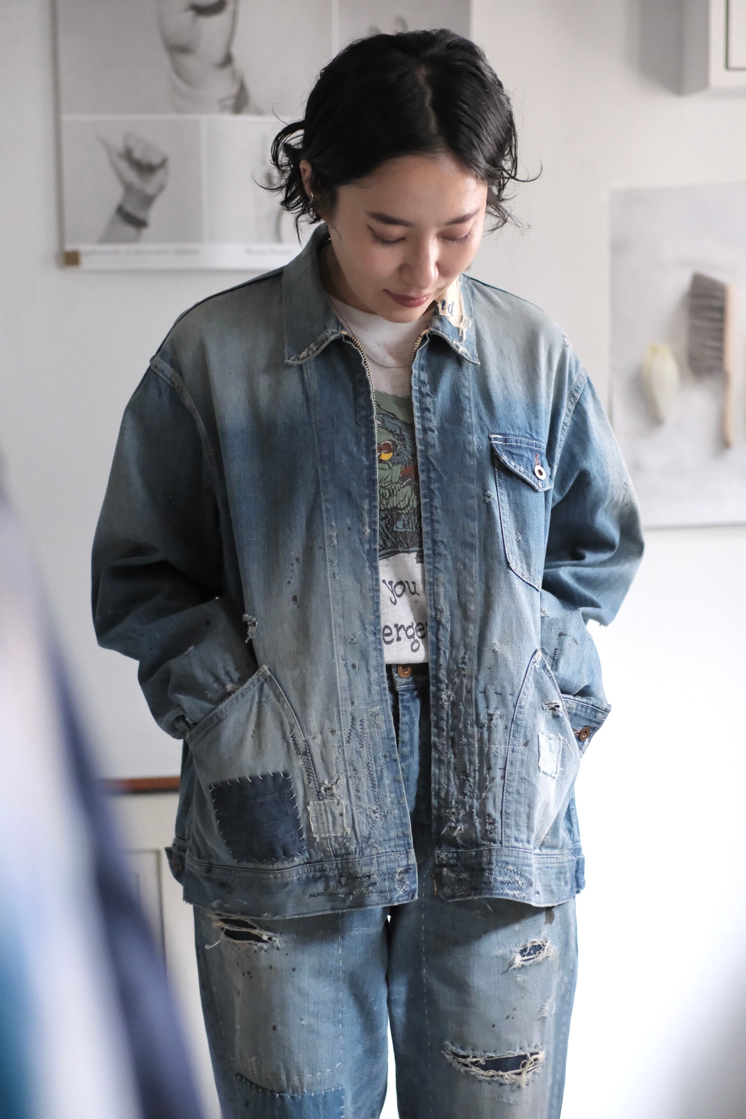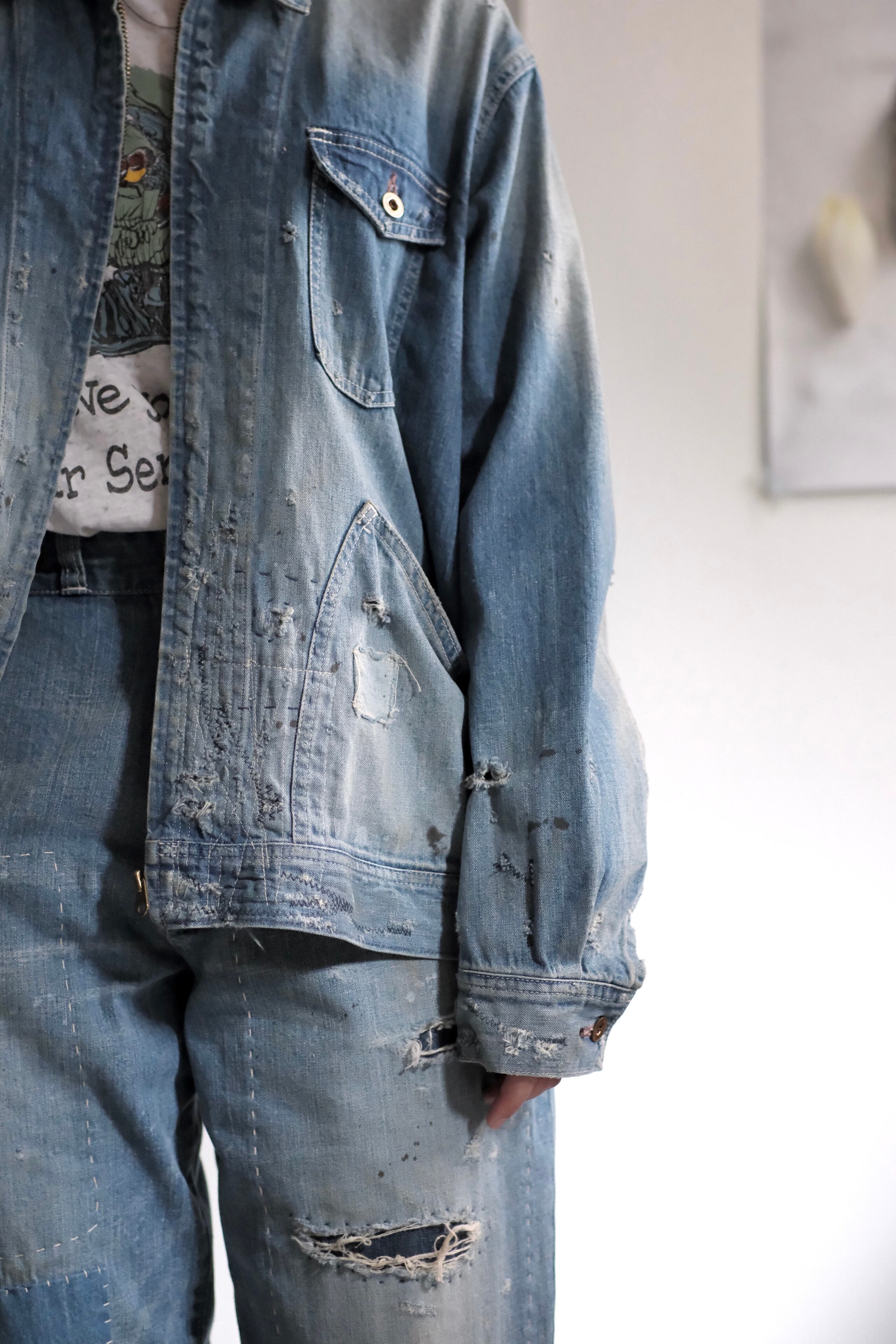 加工はかなりハードに着古したイメージのダメージUSED加工を施しました。