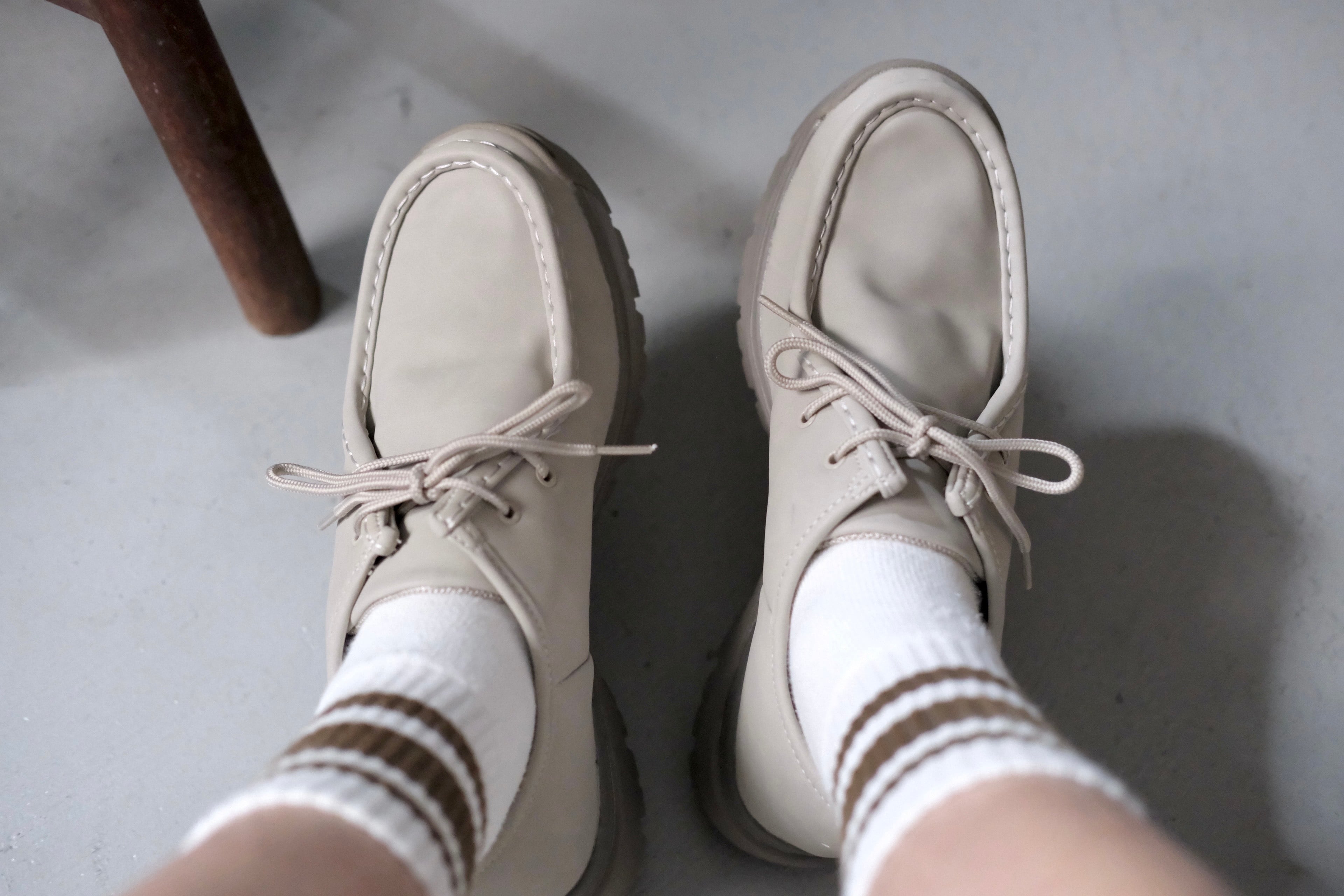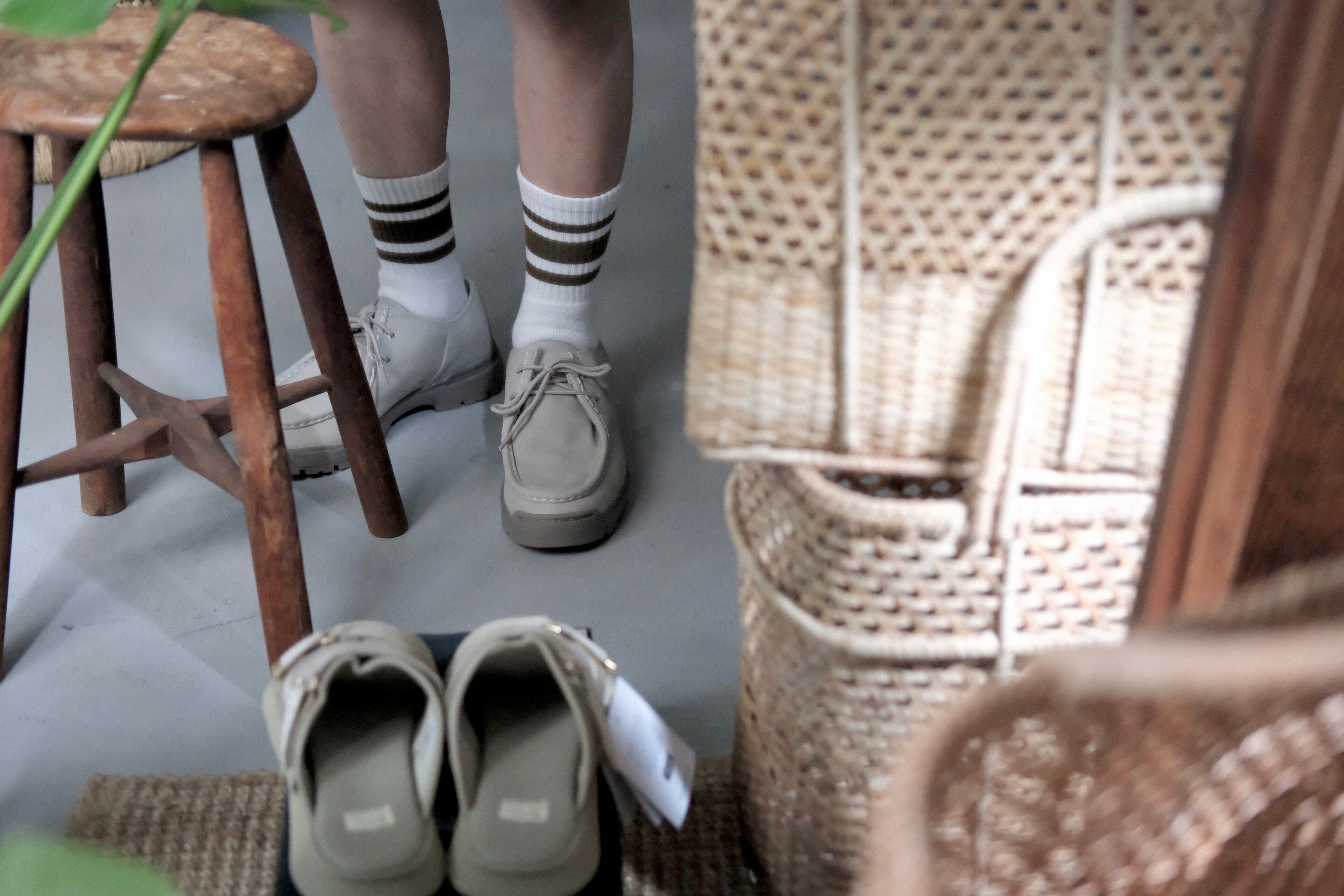 大振りなステッチワークのモカシンといったアクセントを持ちつつも、シックで落ち着きのあるチロリアンタイプ。