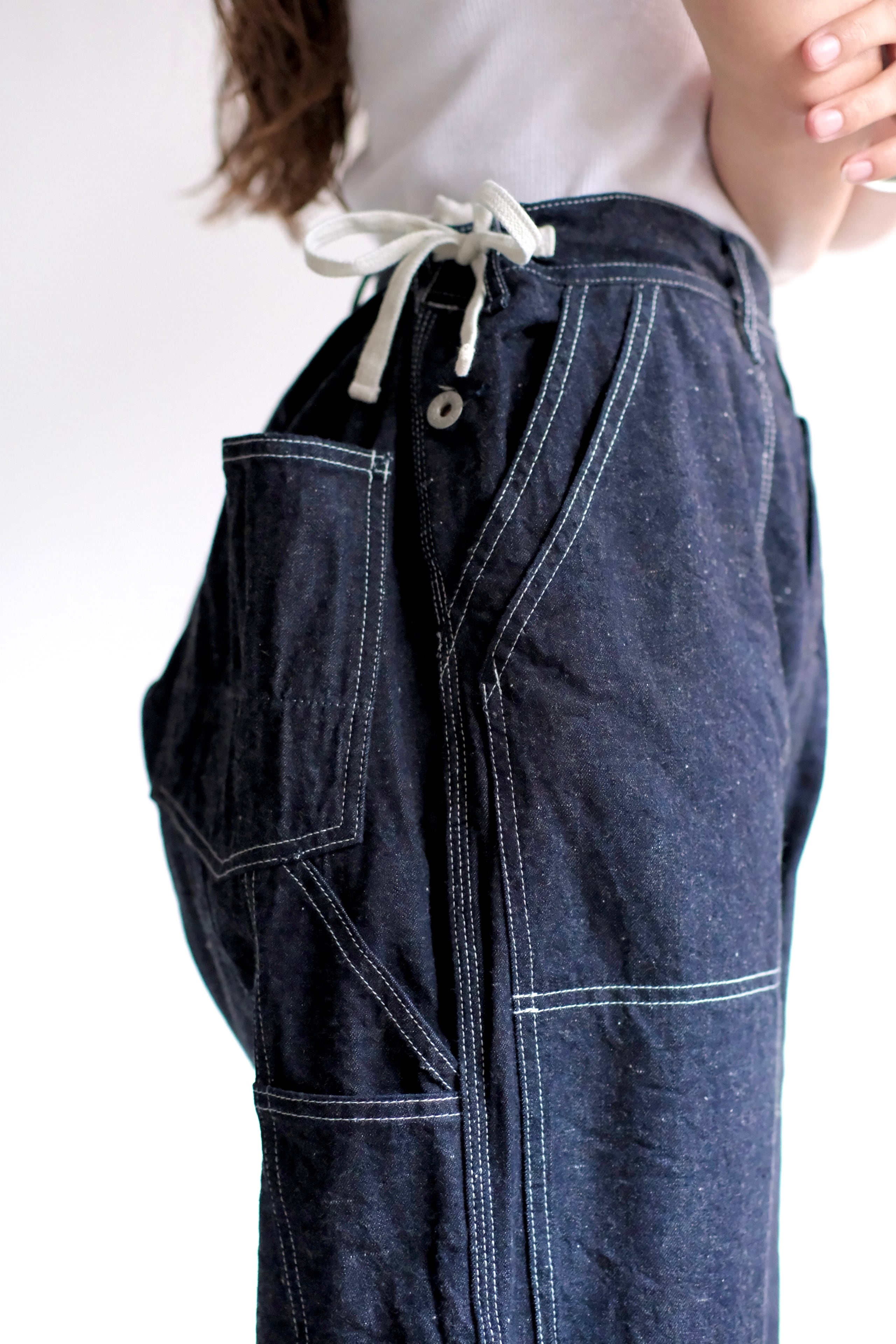 "Denim side open painter pants" "color indigo"