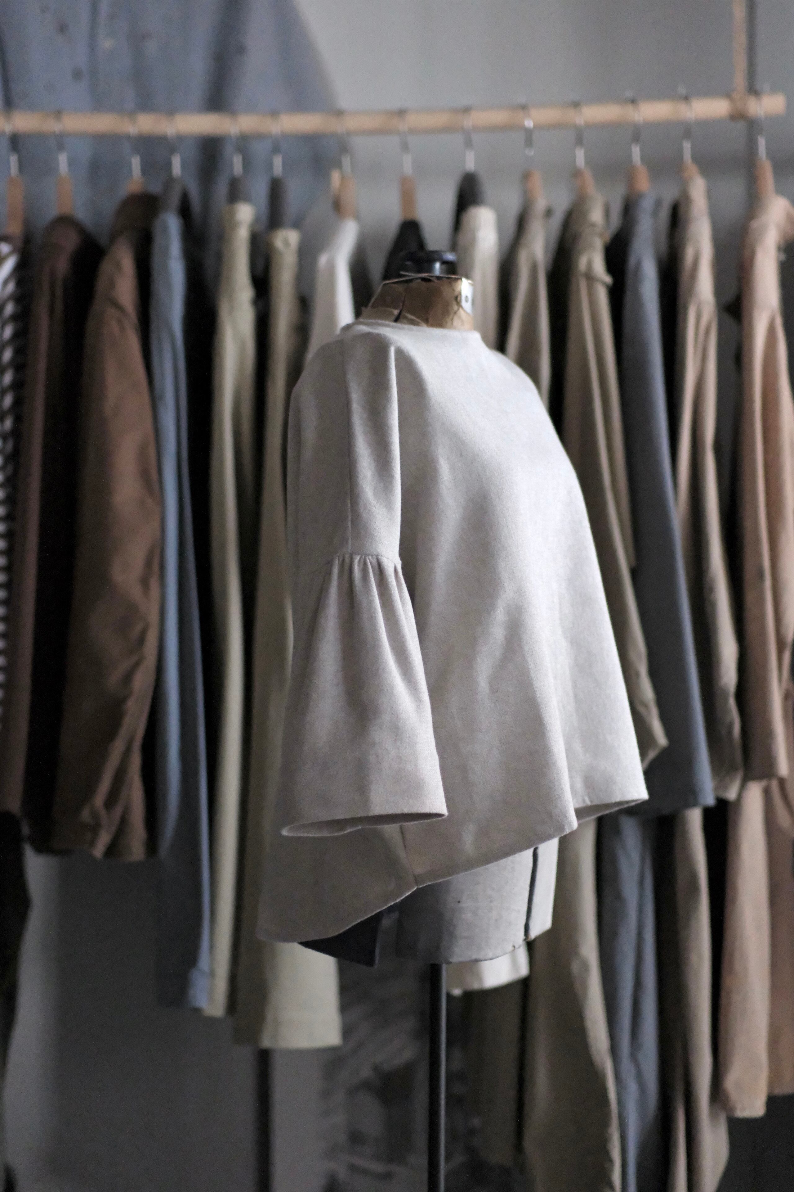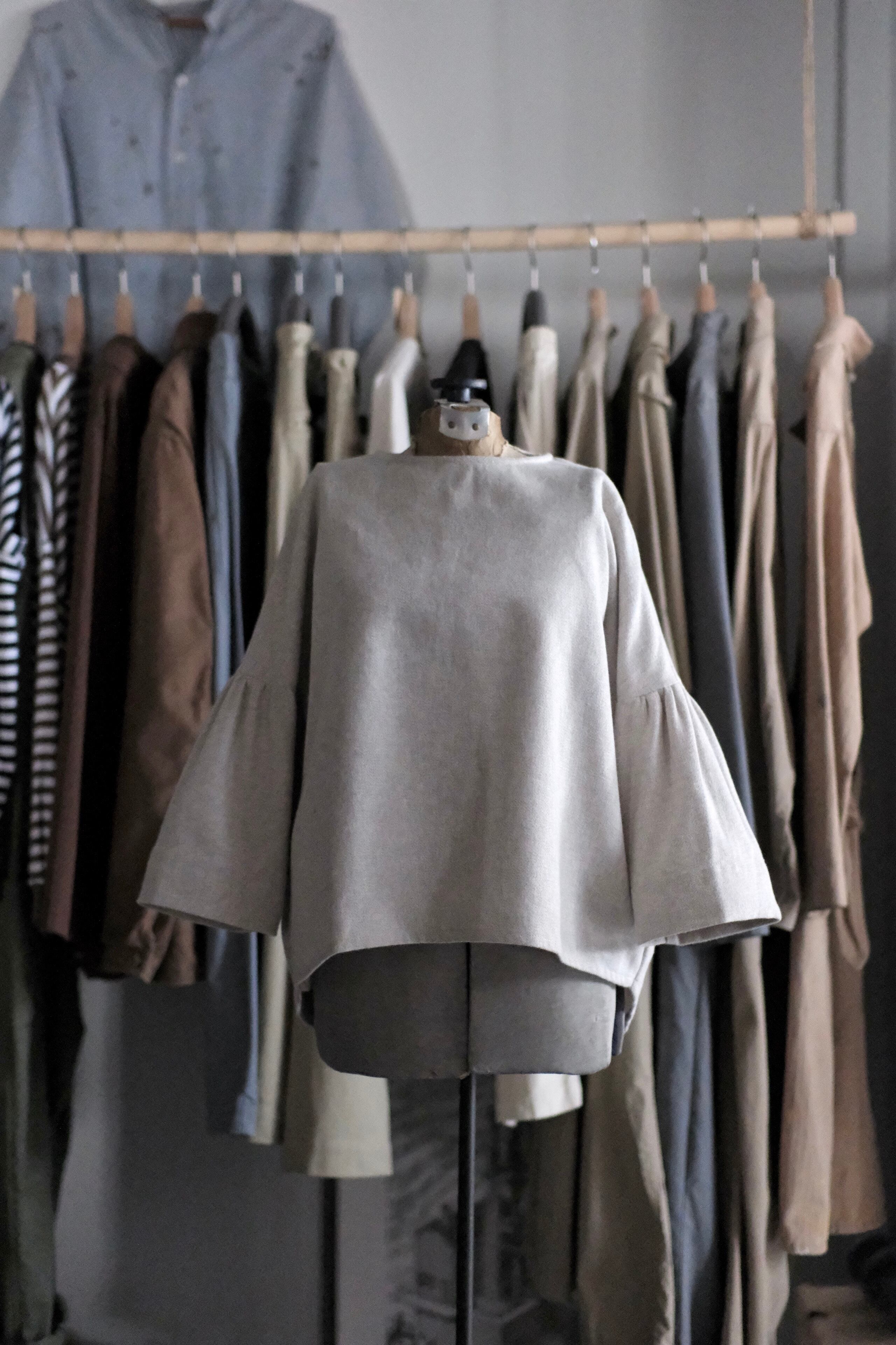 ギャザースリーブとシンプルでゆったりとしたシルエットが特徴です。