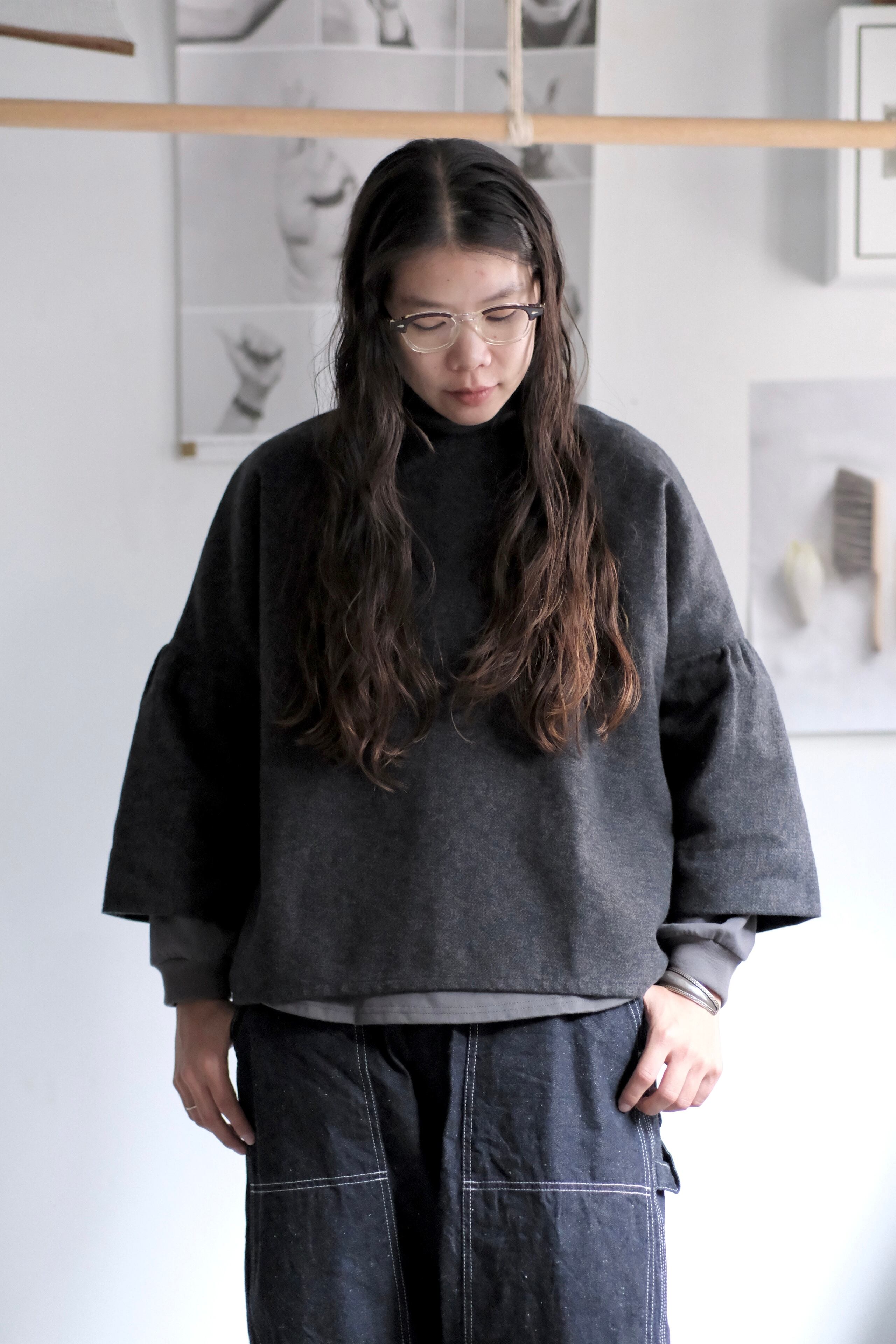 "sasanqua by trees" "TWEEDY COTTON GATHER SLEEVE PULLOVER"