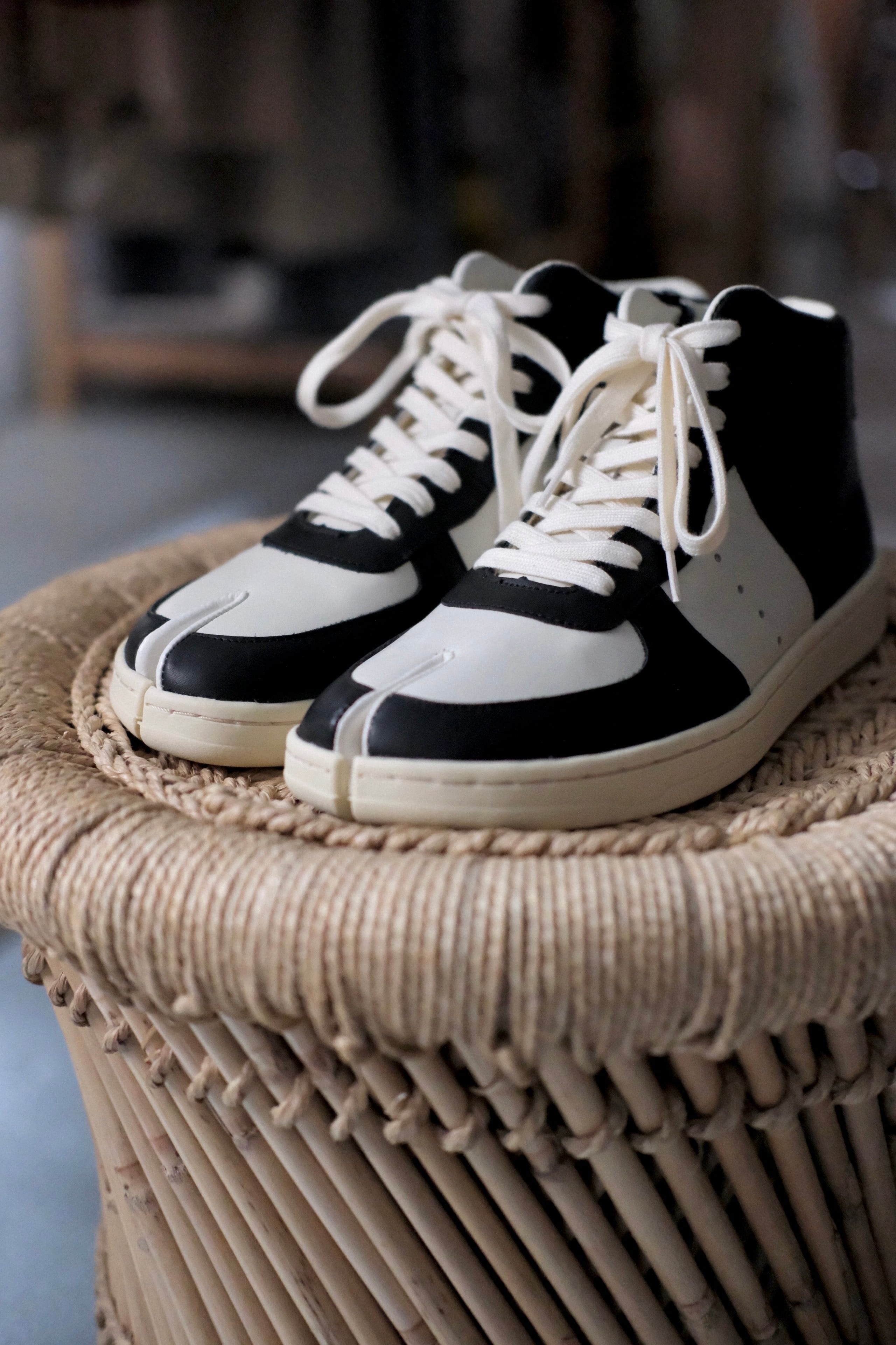 ミリタリースニーカーからインスパイアを受けてデザインされた足袋スニーカー。