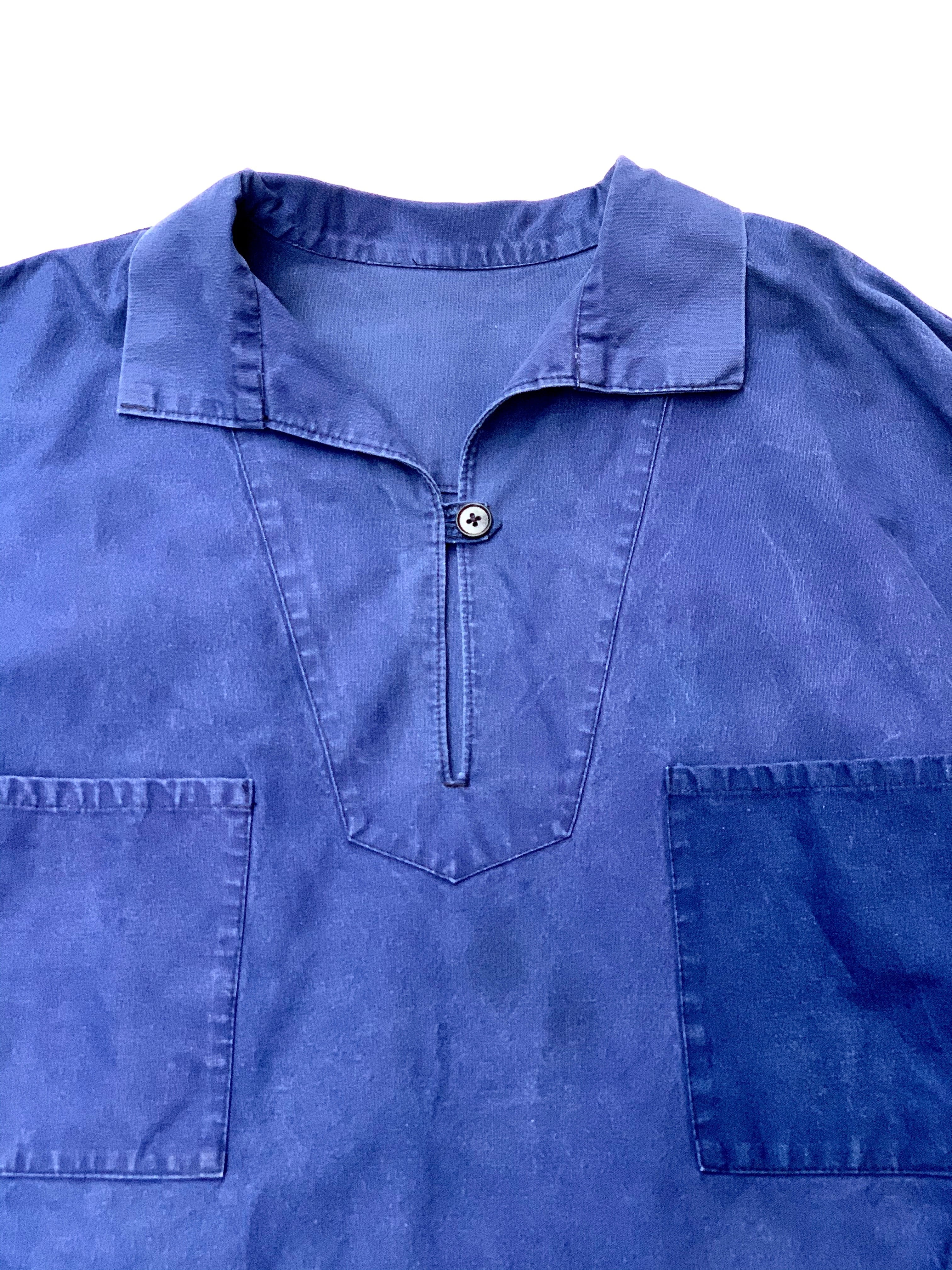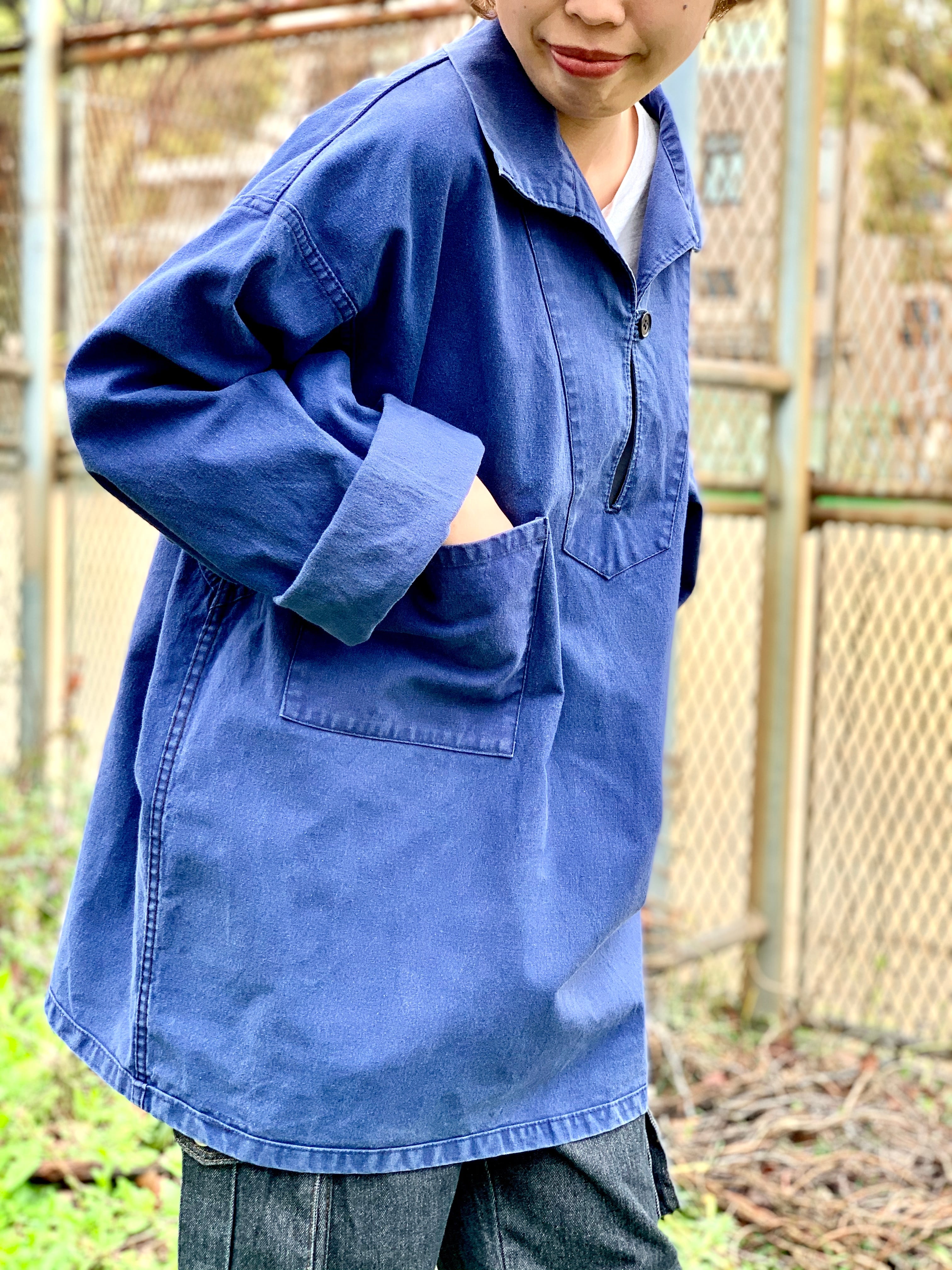 フランスのフィッシャーマンスモックは、大きく開いた胸元とセーラーカラーの様な広さのある襟が特徴的。