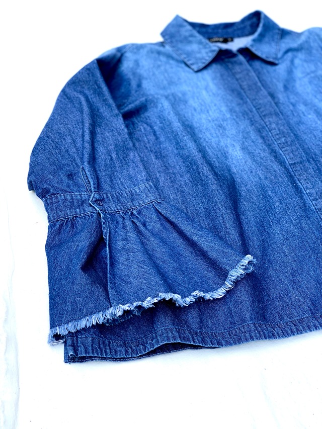 00’s-“LANE BRYANT” “l/s shirts super flare sleeve” “indigo blue”の御紹介です。