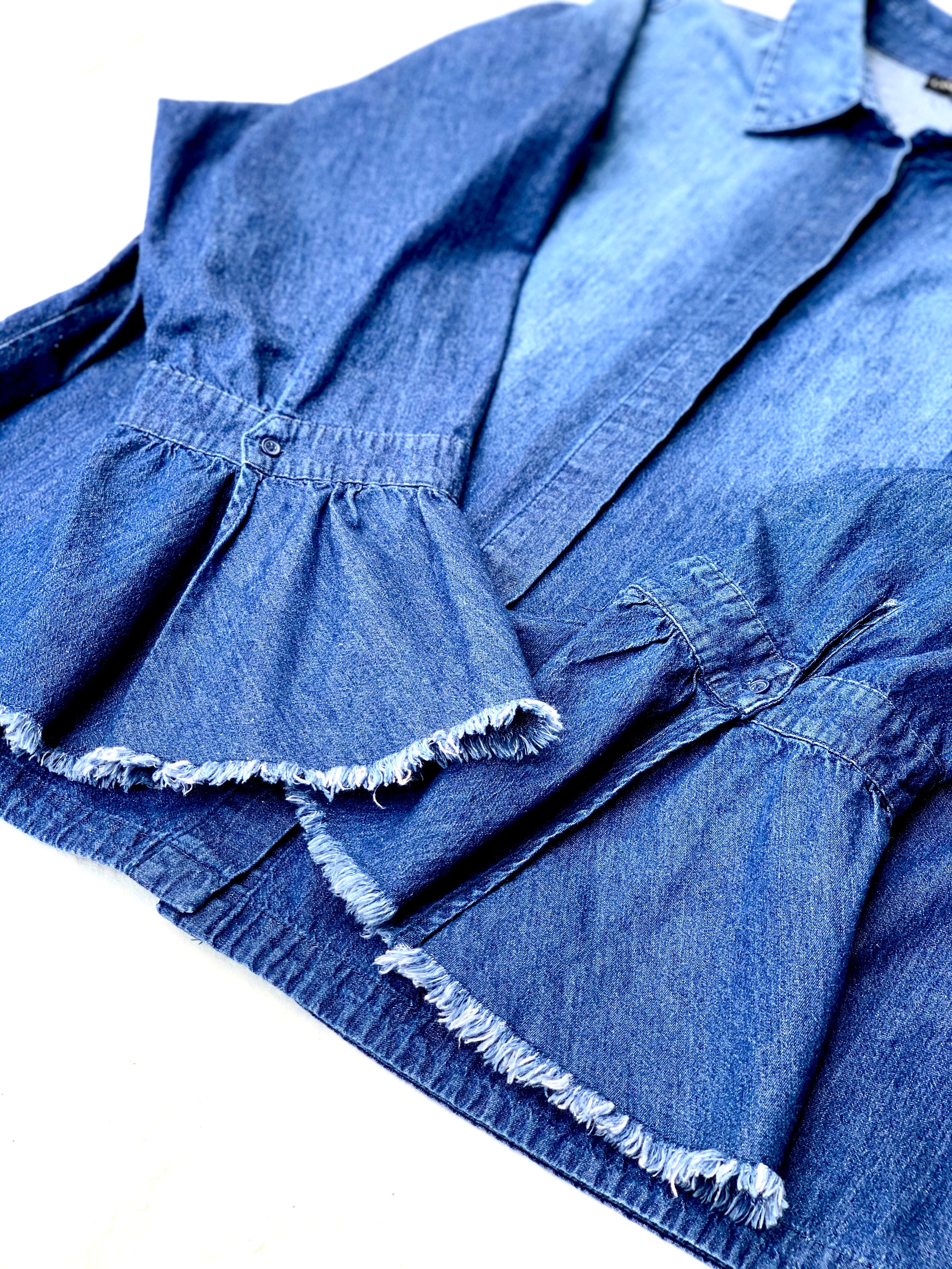 00’s-“LANE BRYANT” “l/s shirts super flare sleeve” “indigo blue”