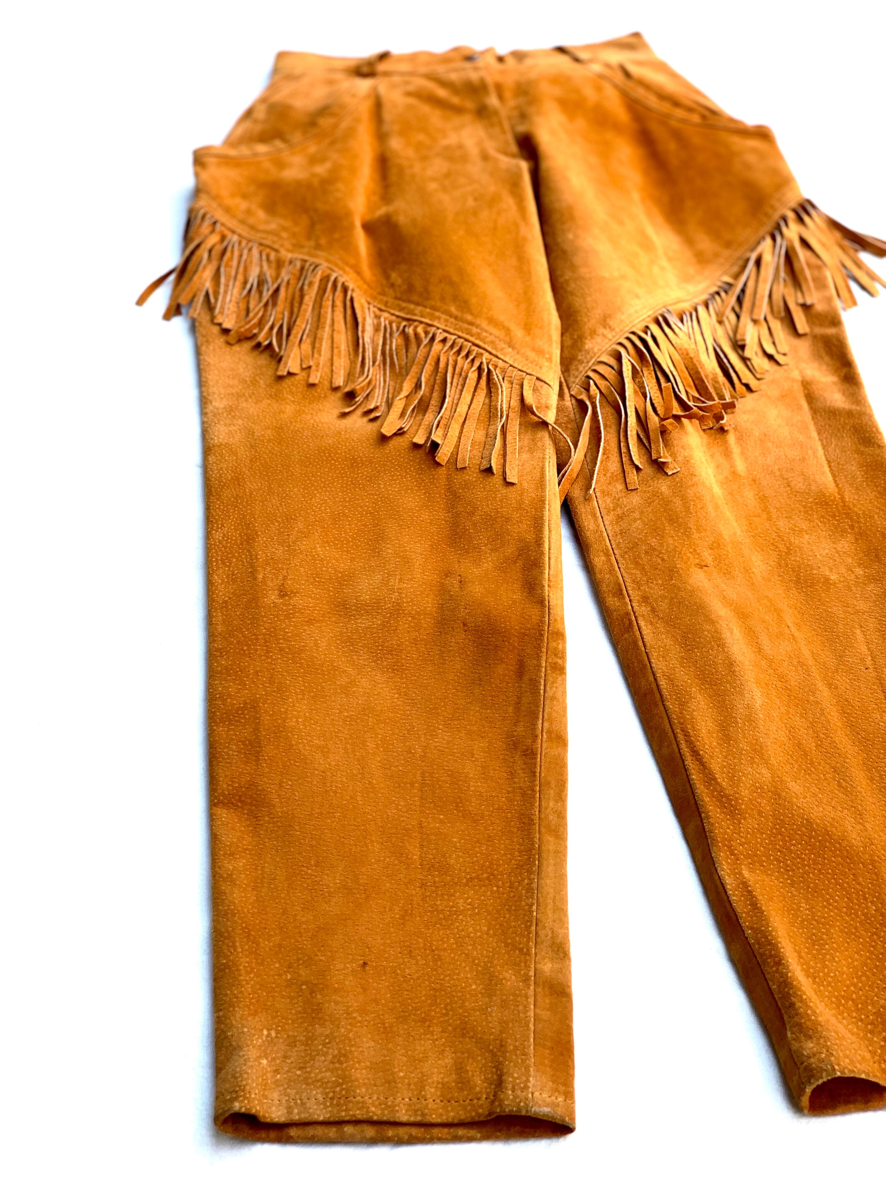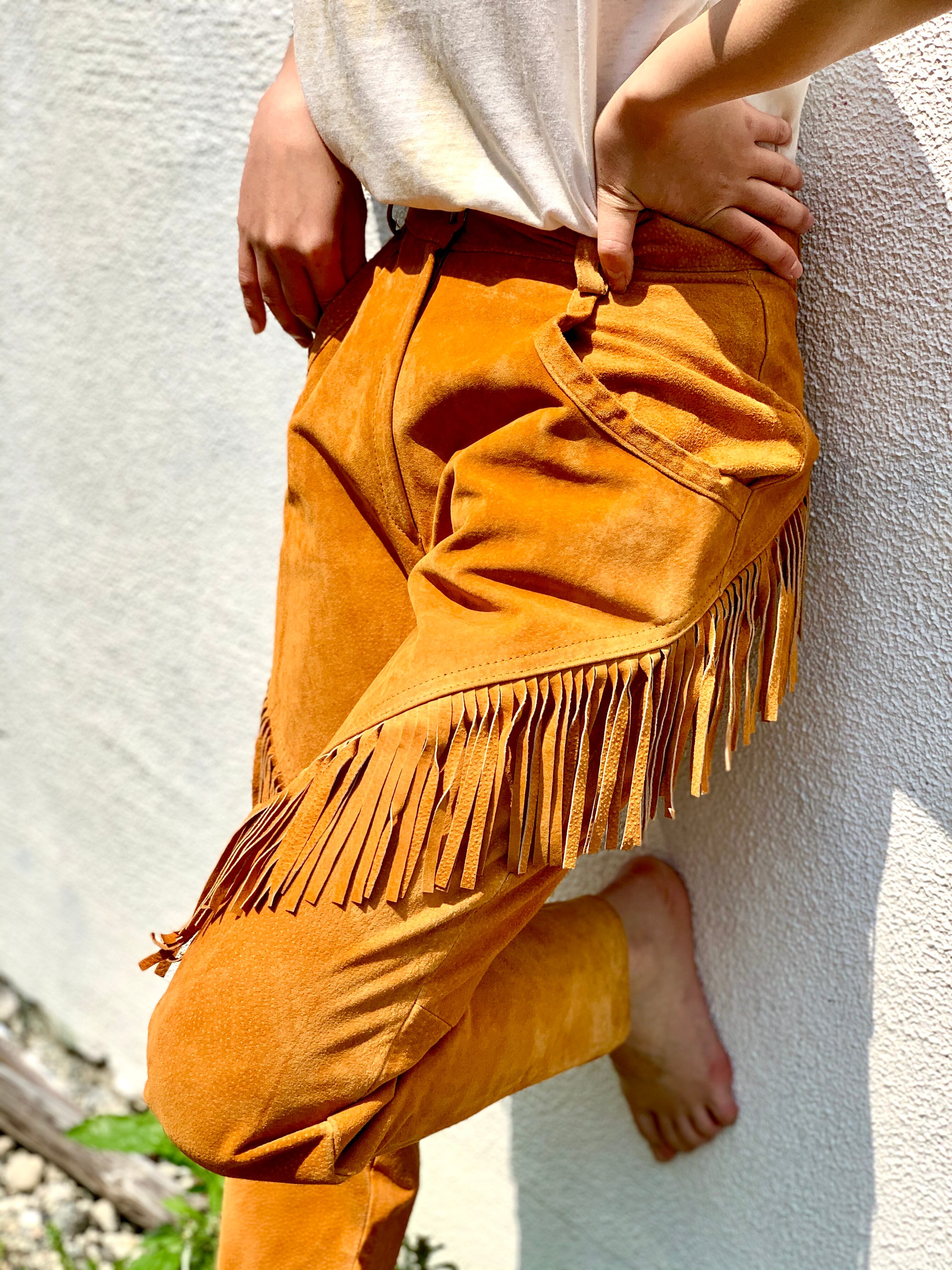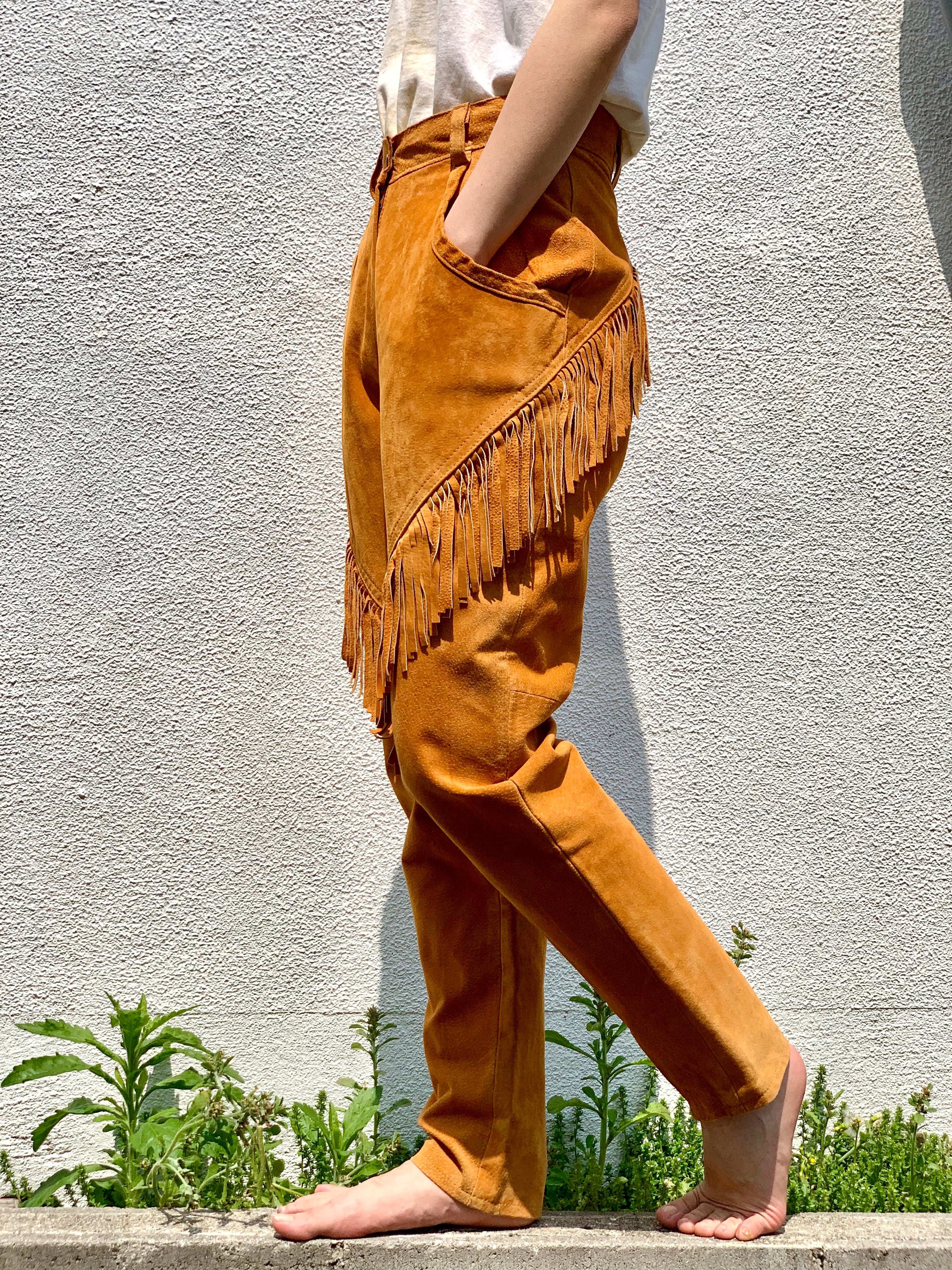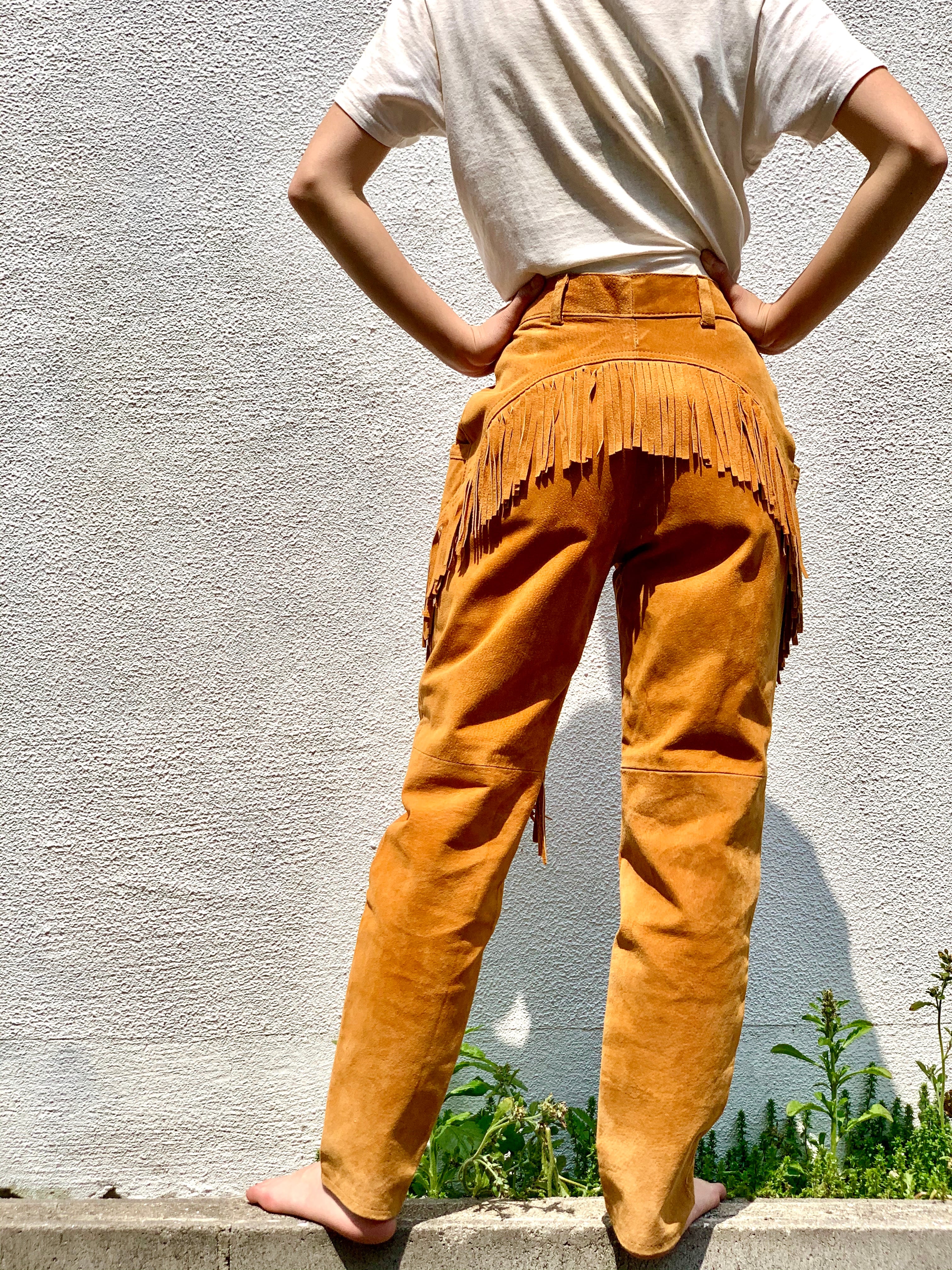 80’s−old “leather fringe pants” “outerwear by Phoenix made in USA ”