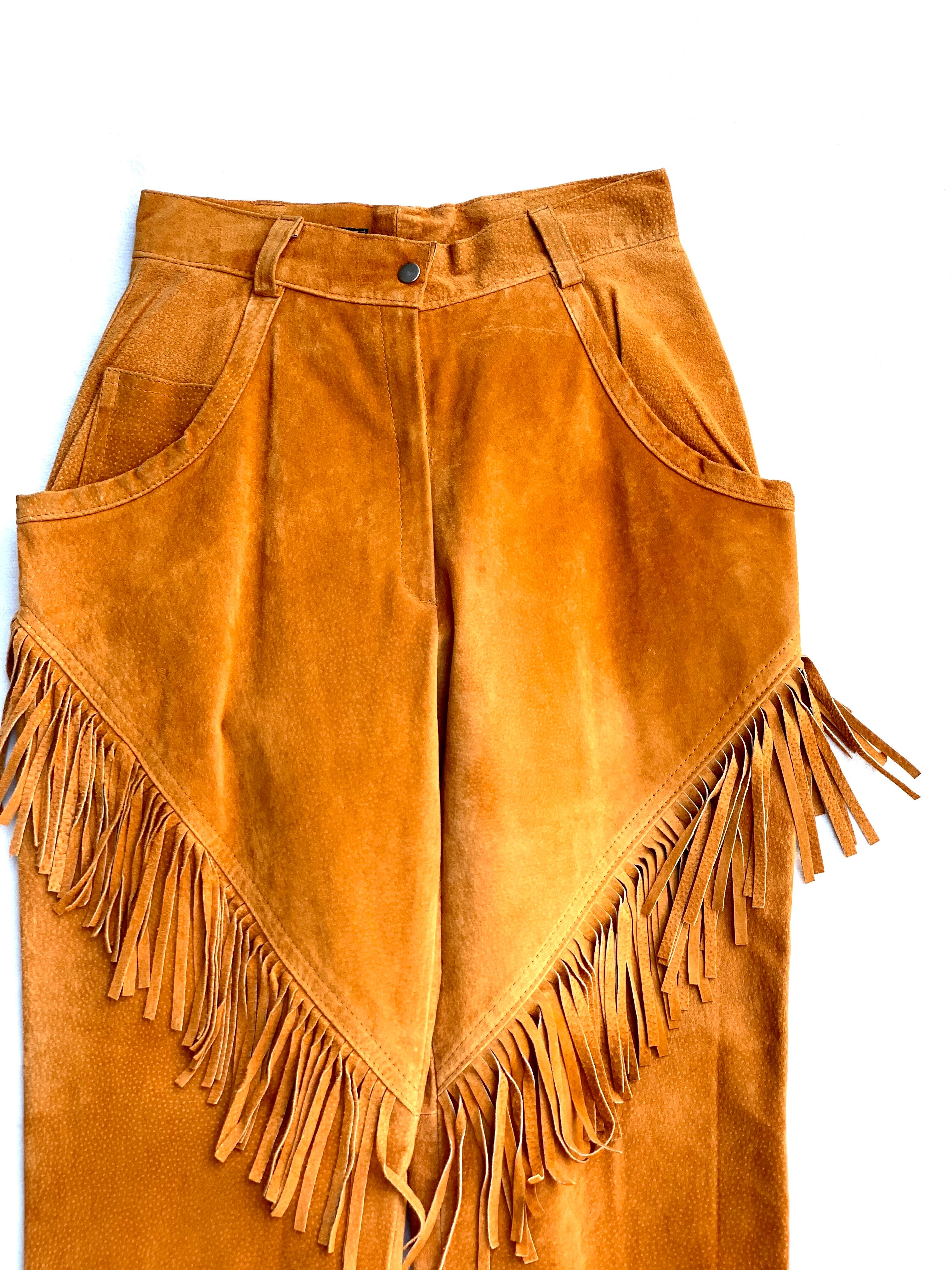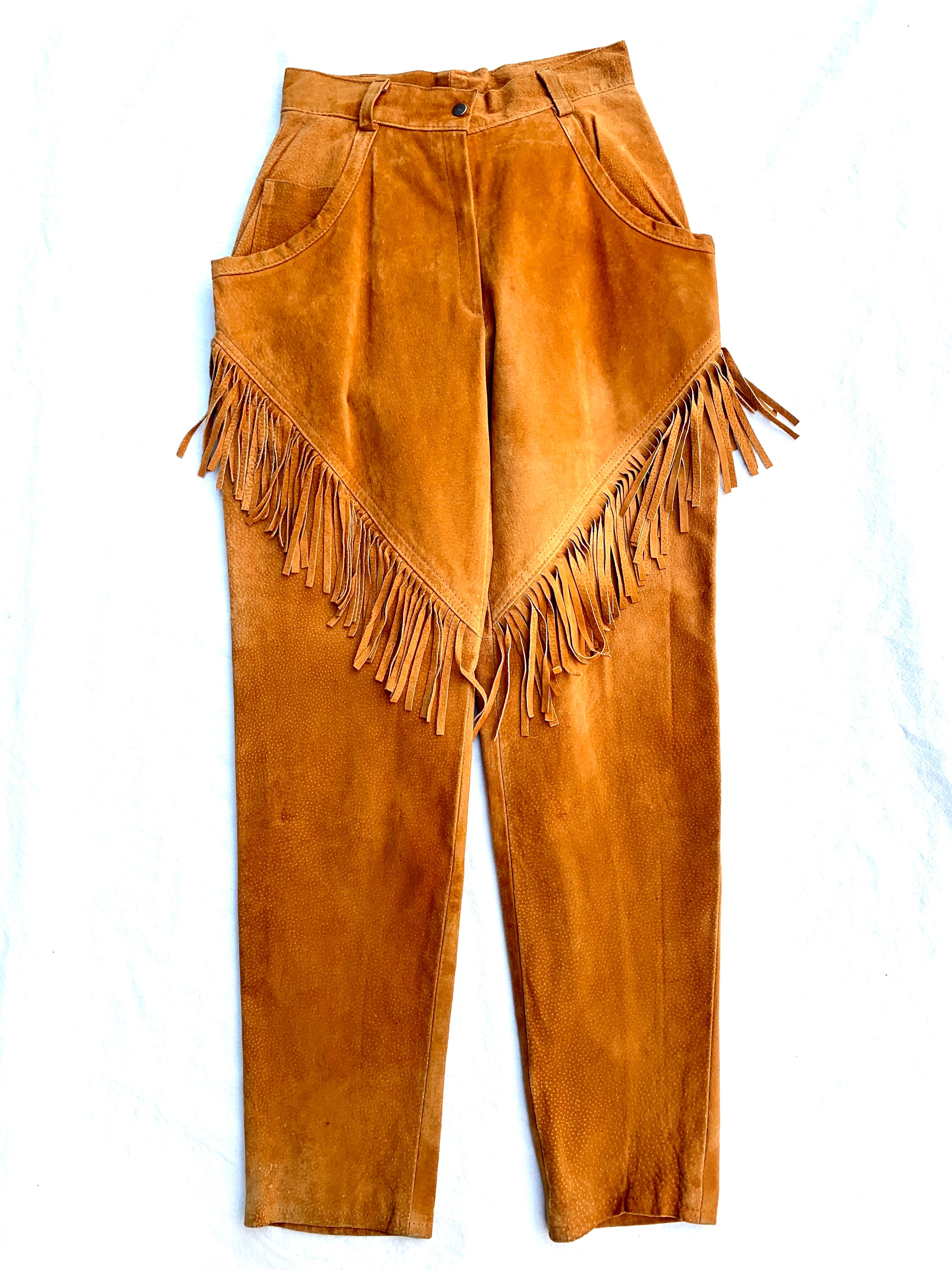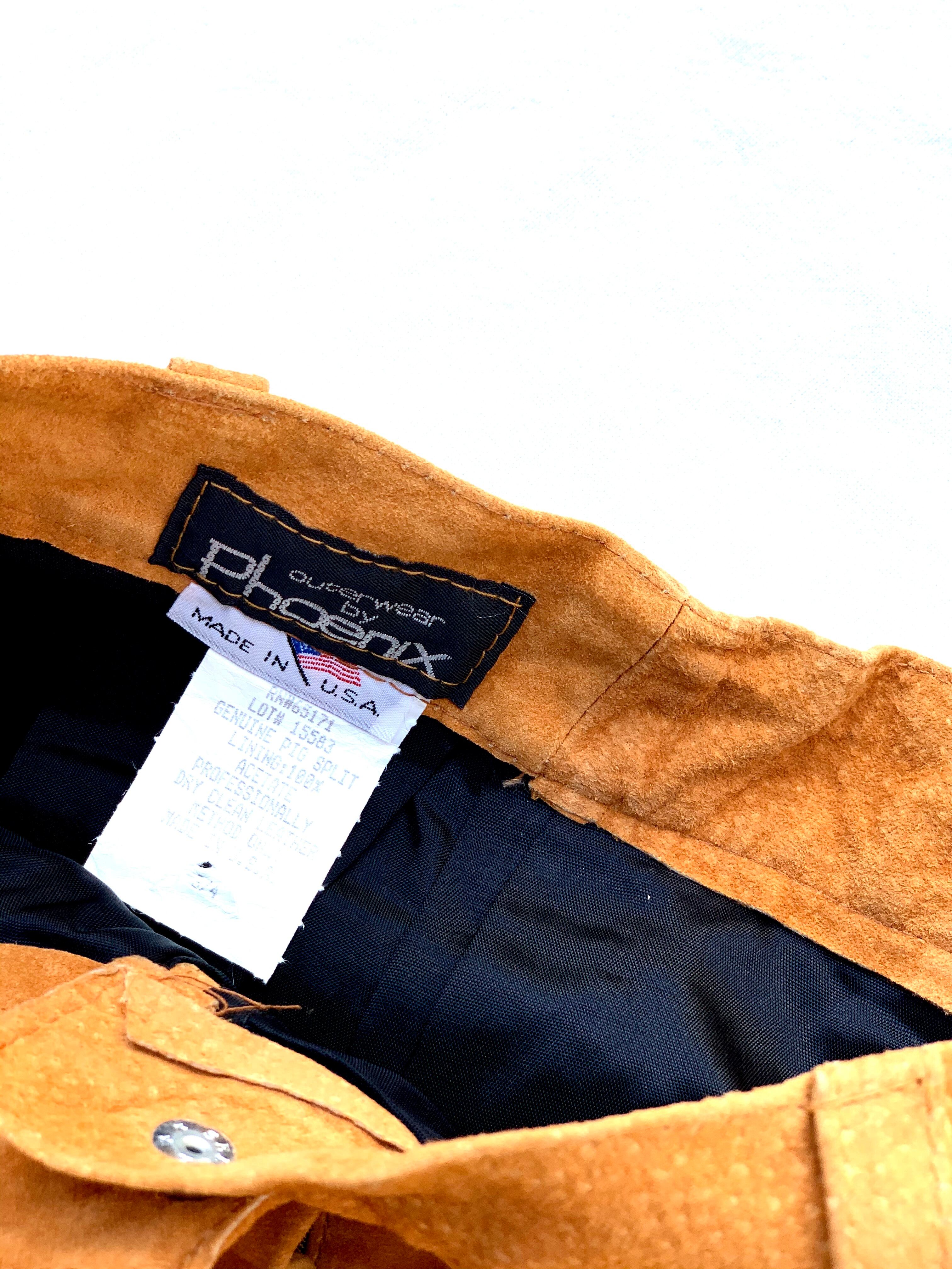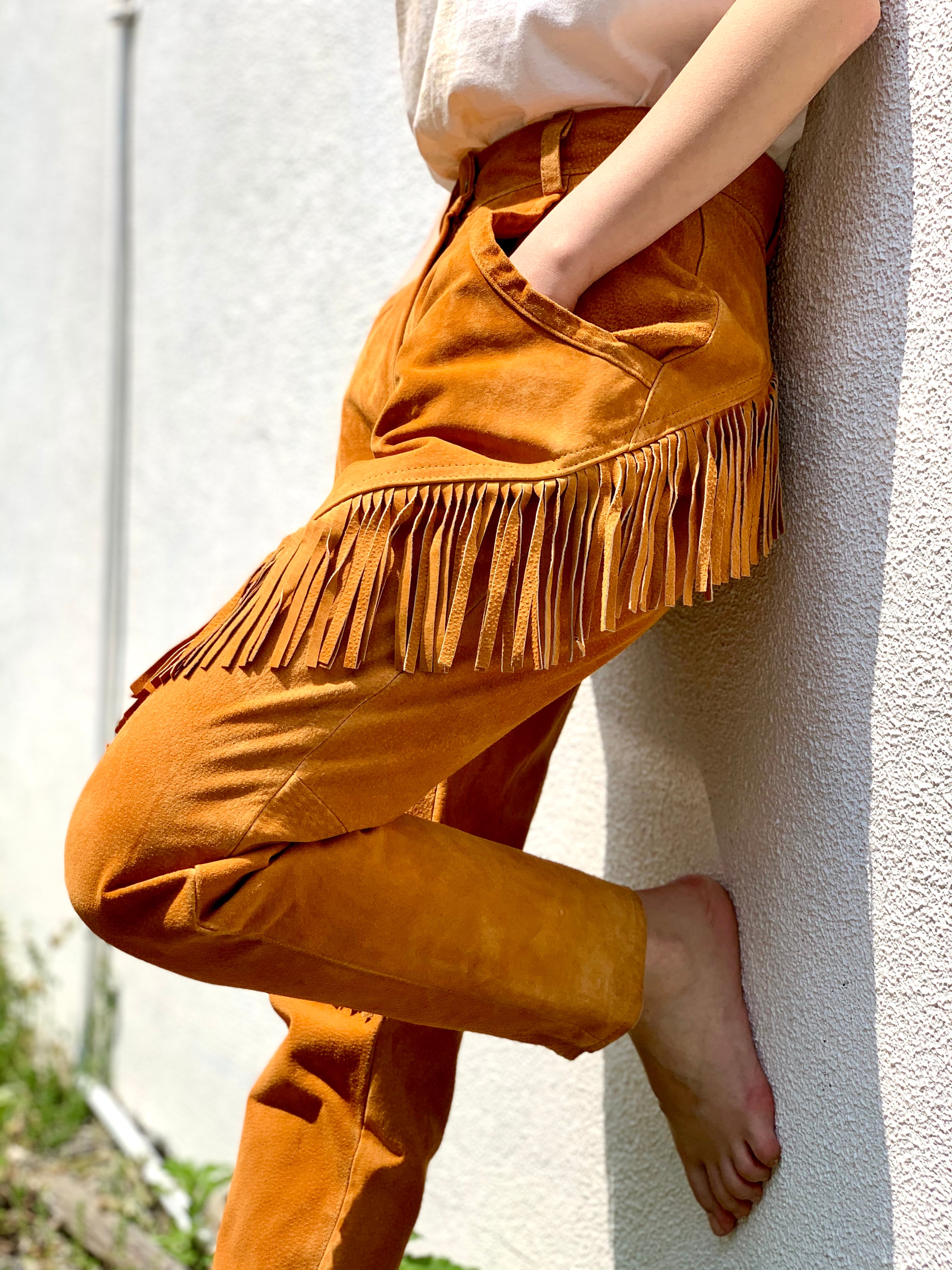 80’s−old “leather fringe pants” “outerwear by Phoenix made in USA ”
