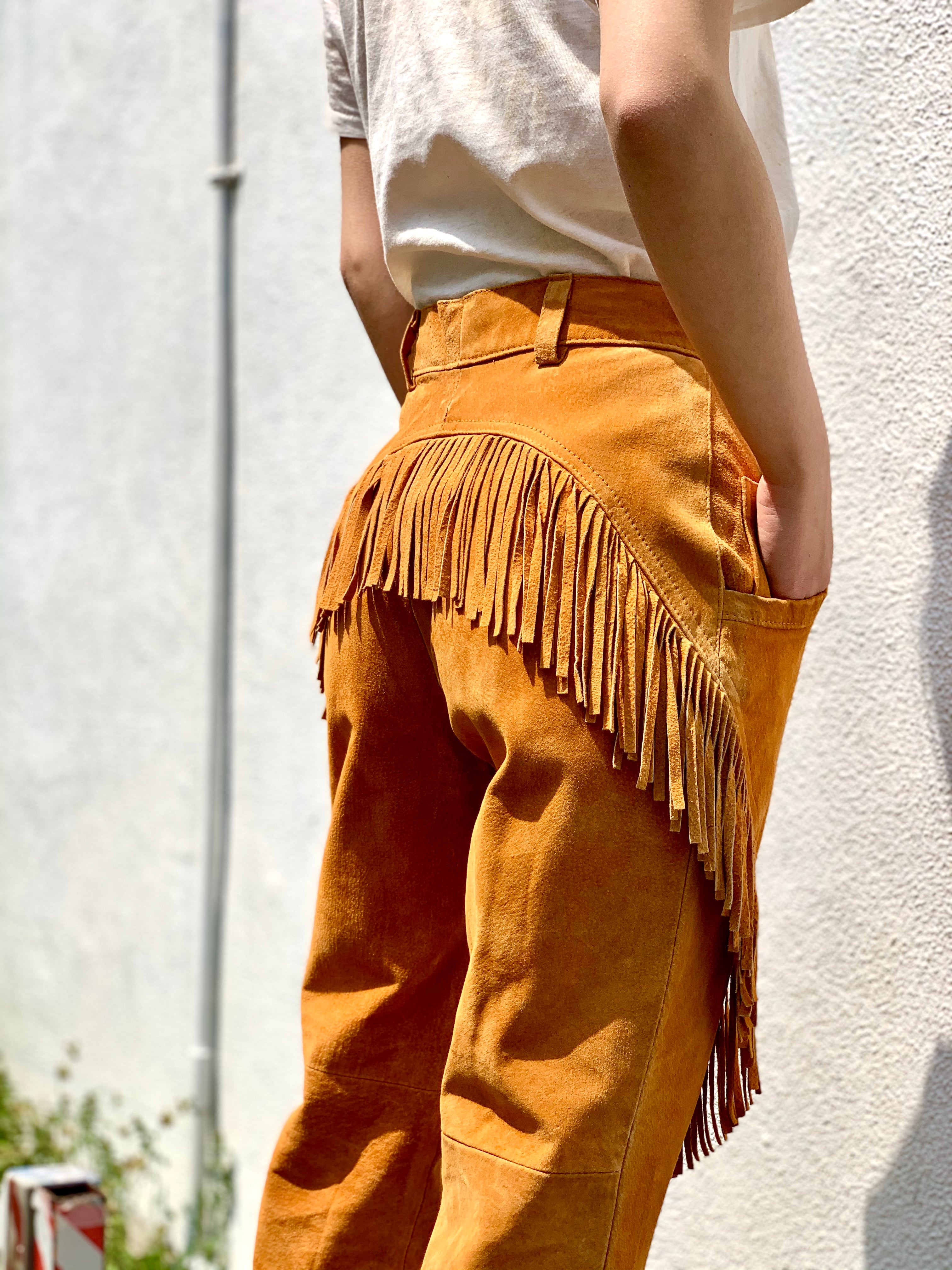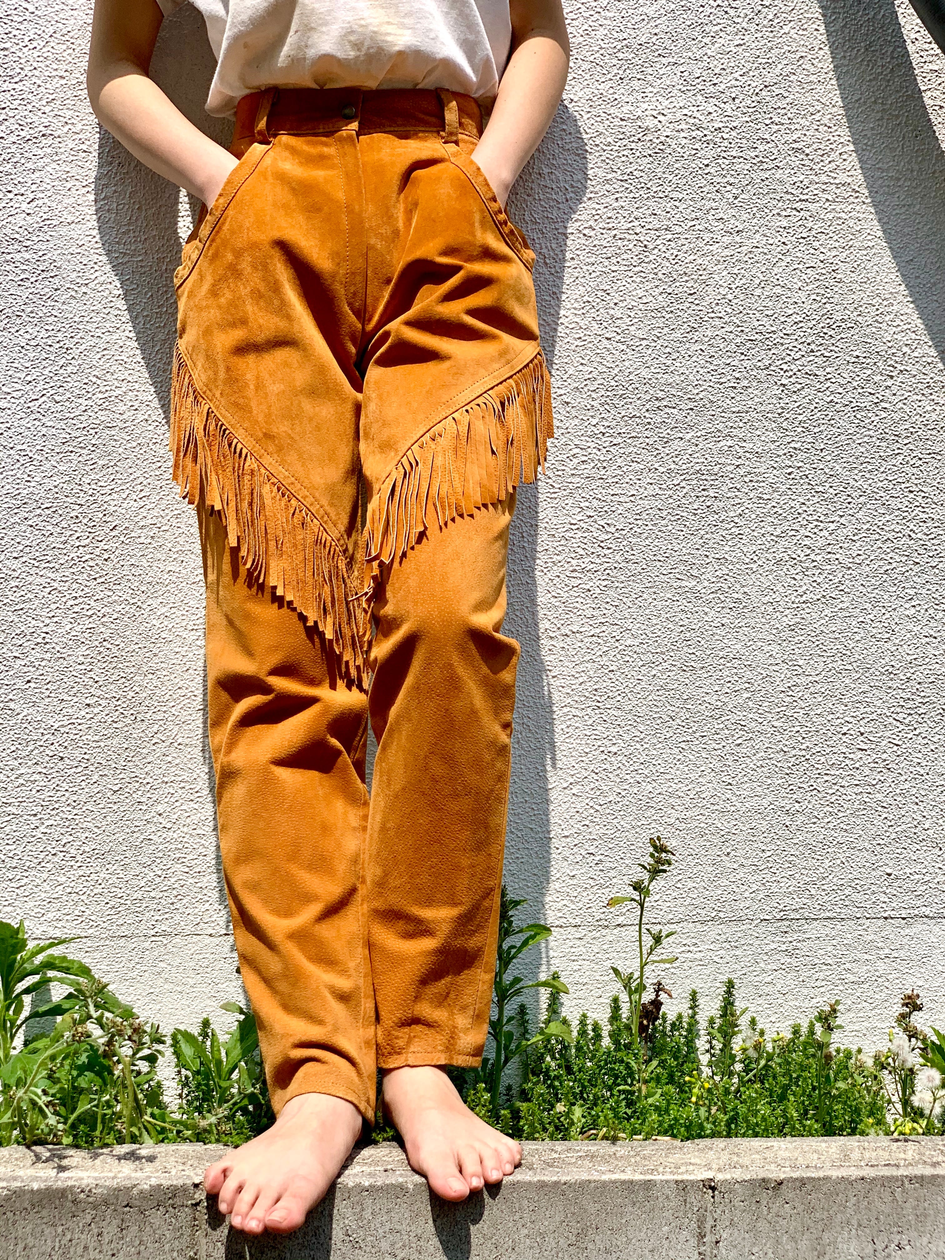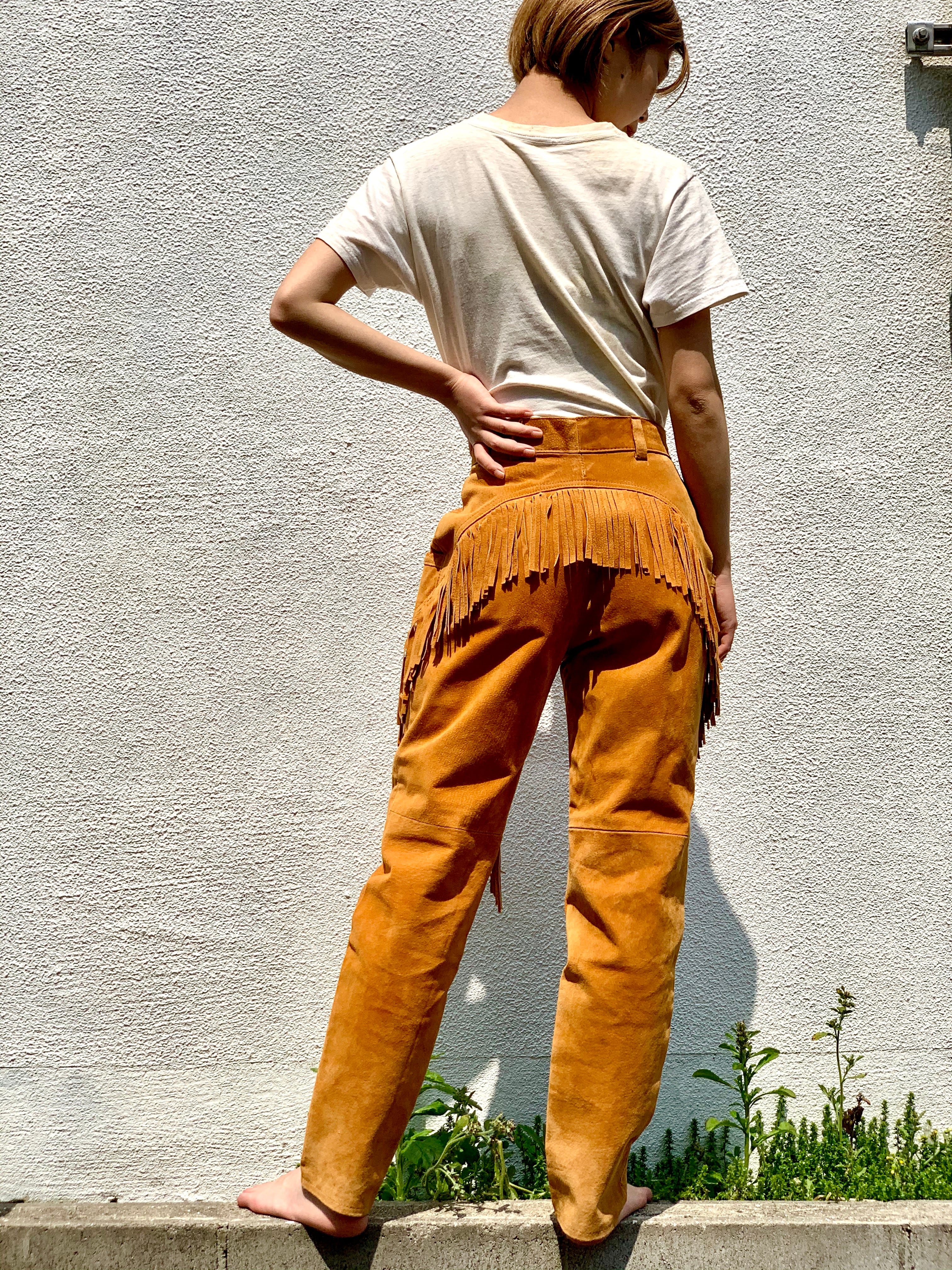 80’s−old “leather fringe pants” “outerwear by Phoenix made in USA ” の御紹介です。