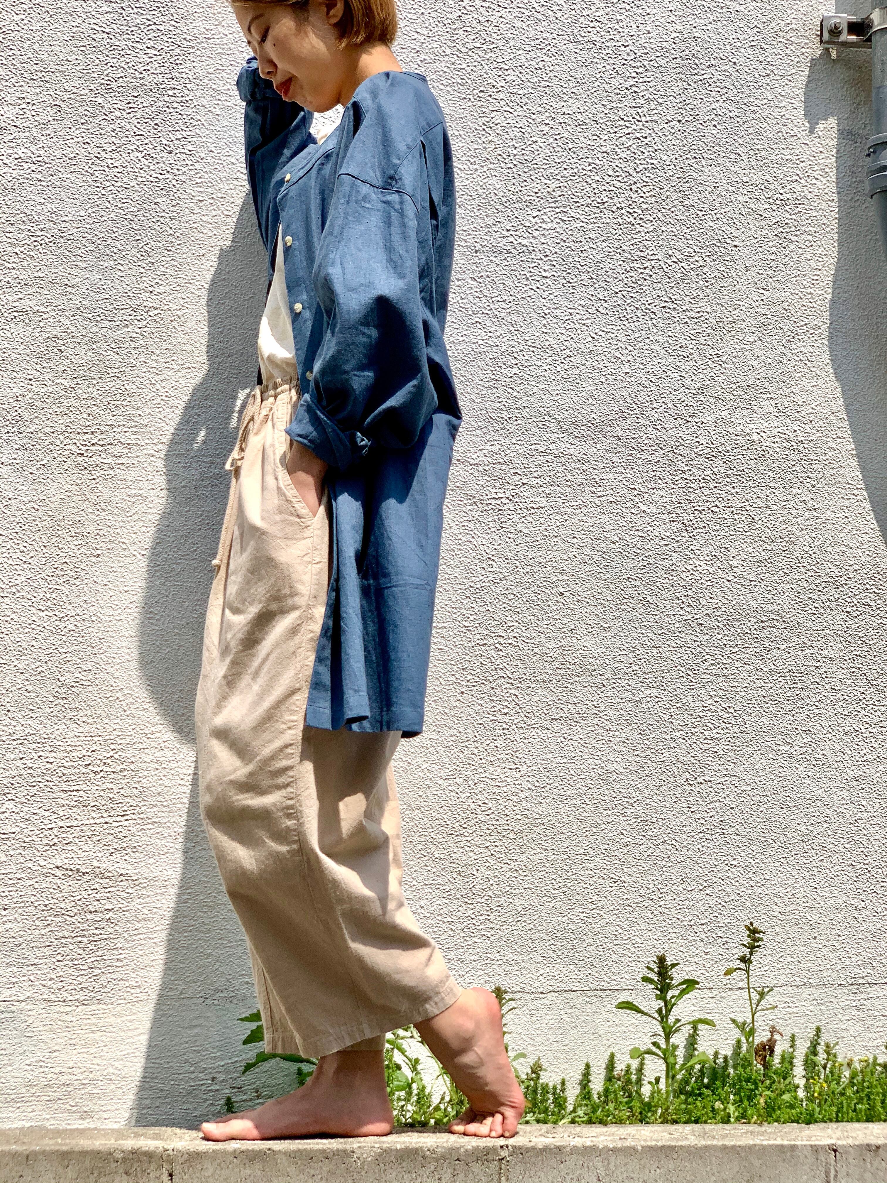 90’s−old “l/s stand collar shirts” “LINEN×COTTON” “sax blue” の御紹介です。