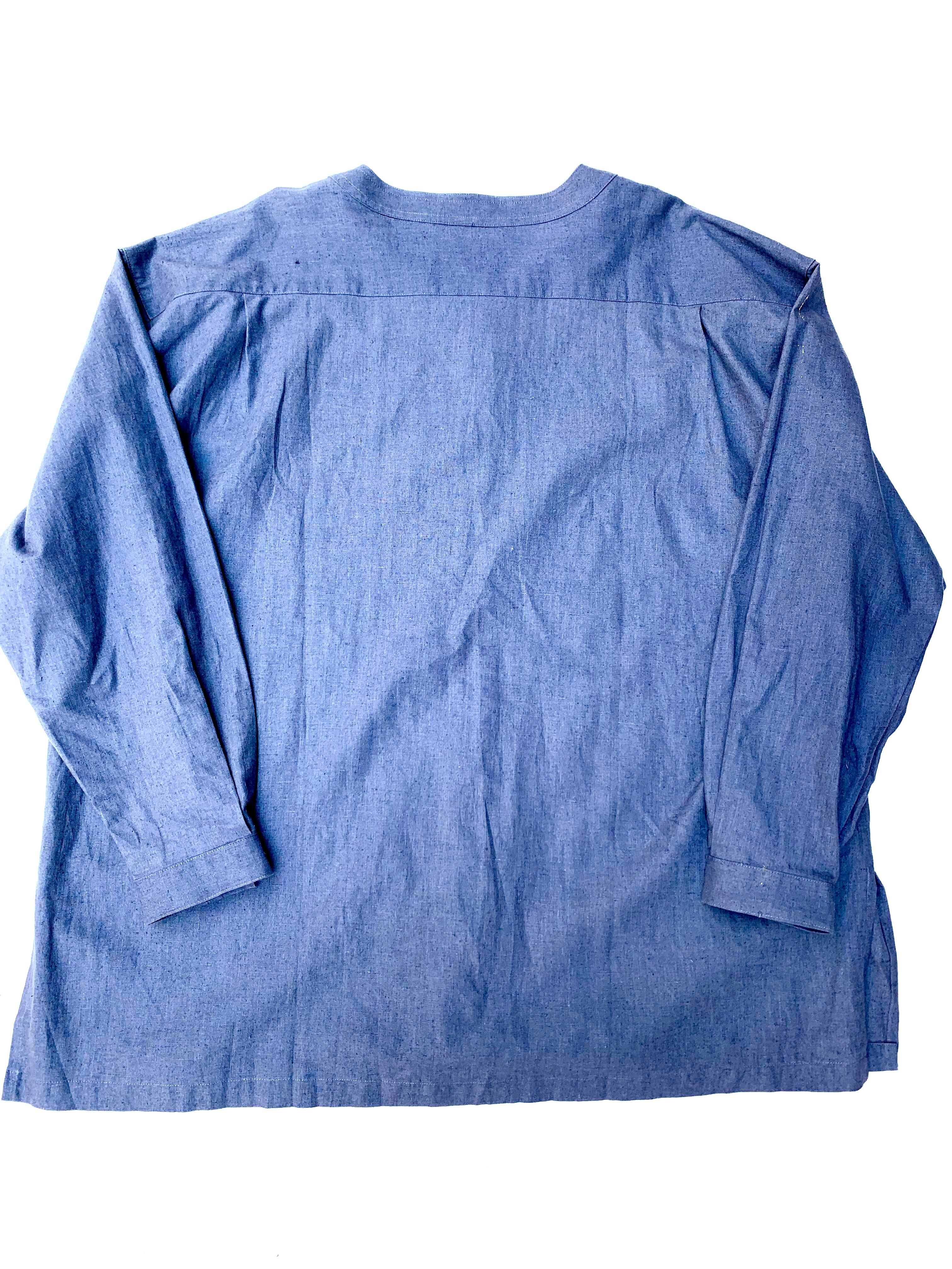 90’s−old “l/s stand collar shirts” “LINEN×COTTON” “sax blue”