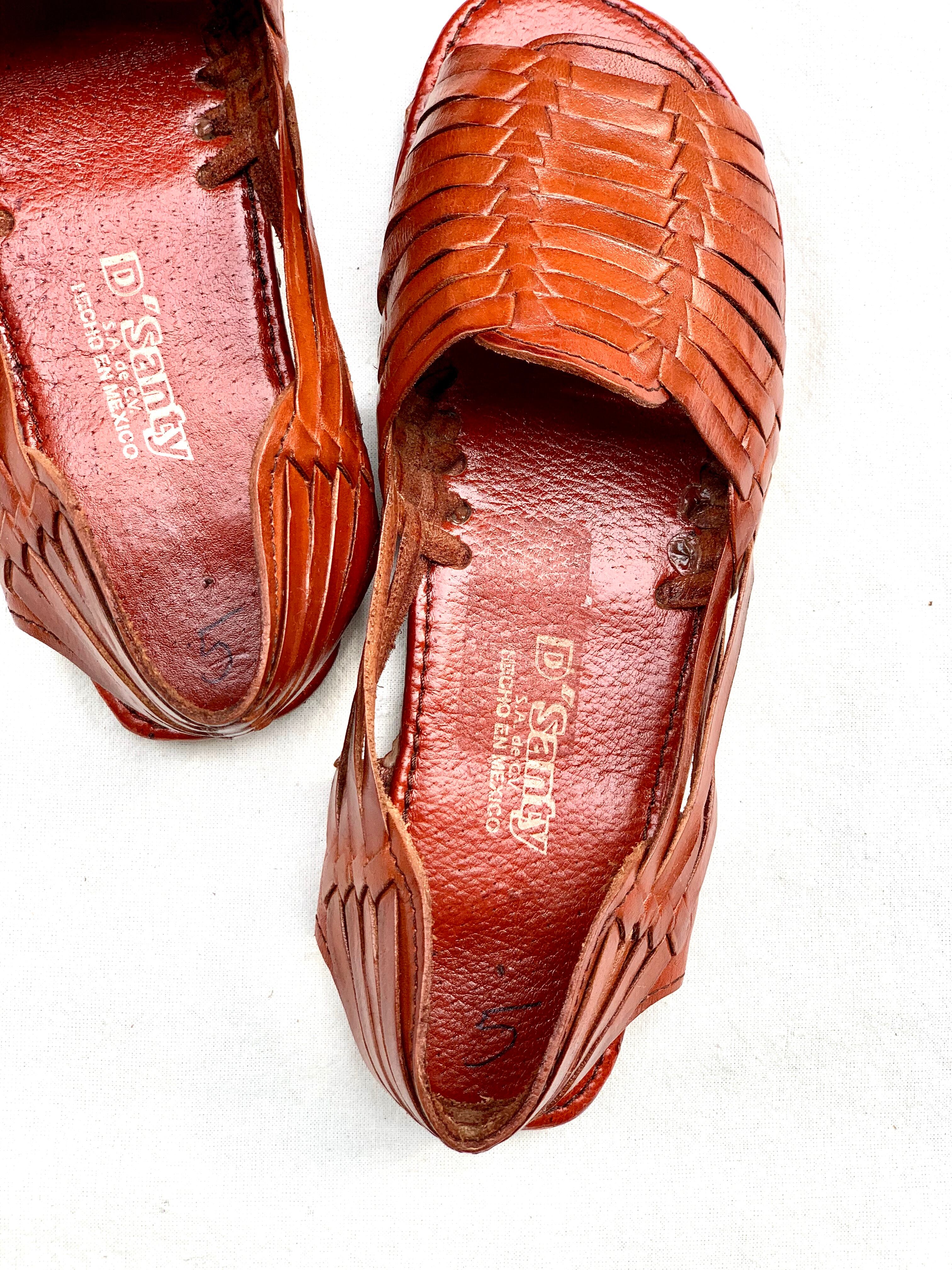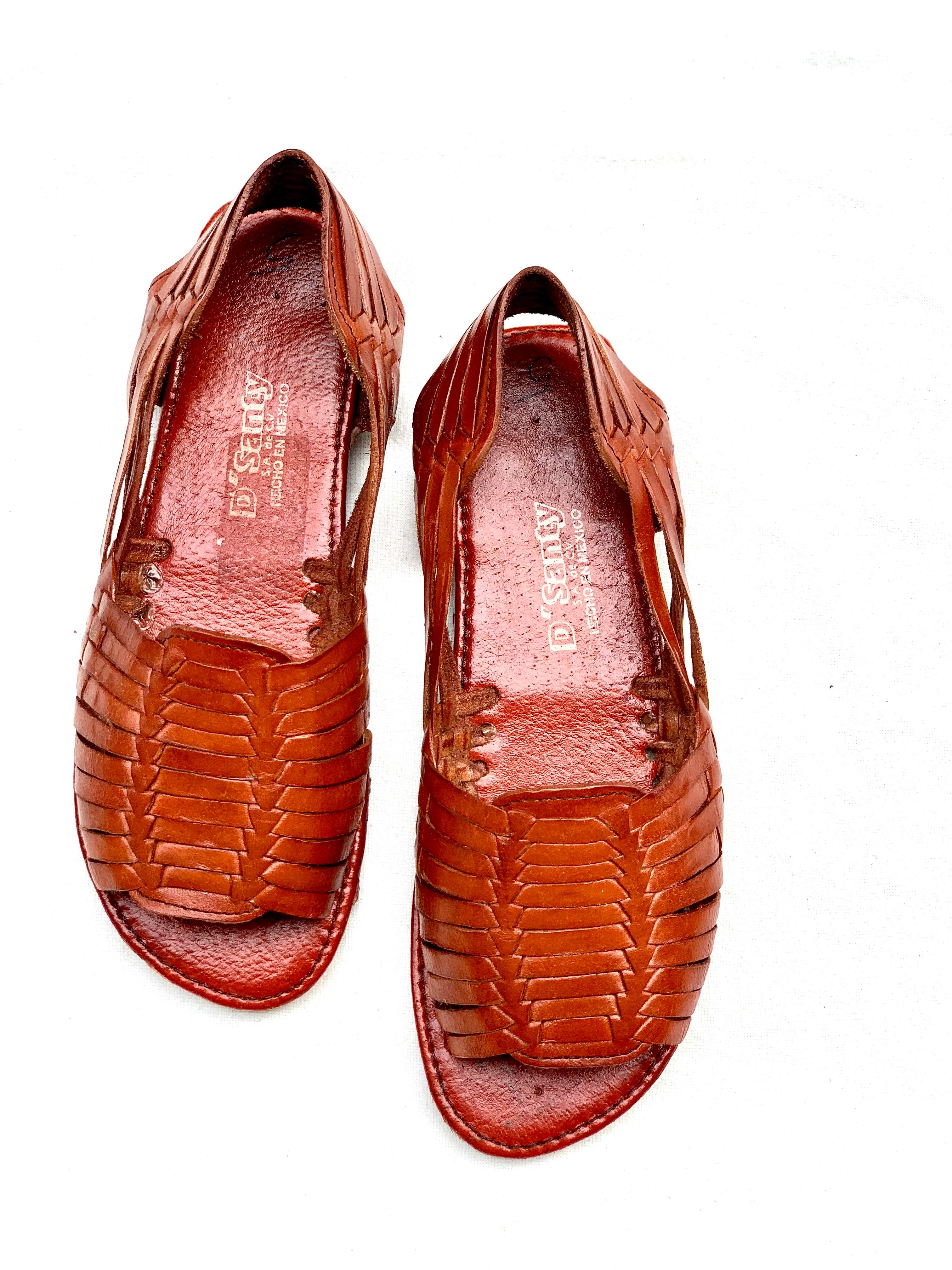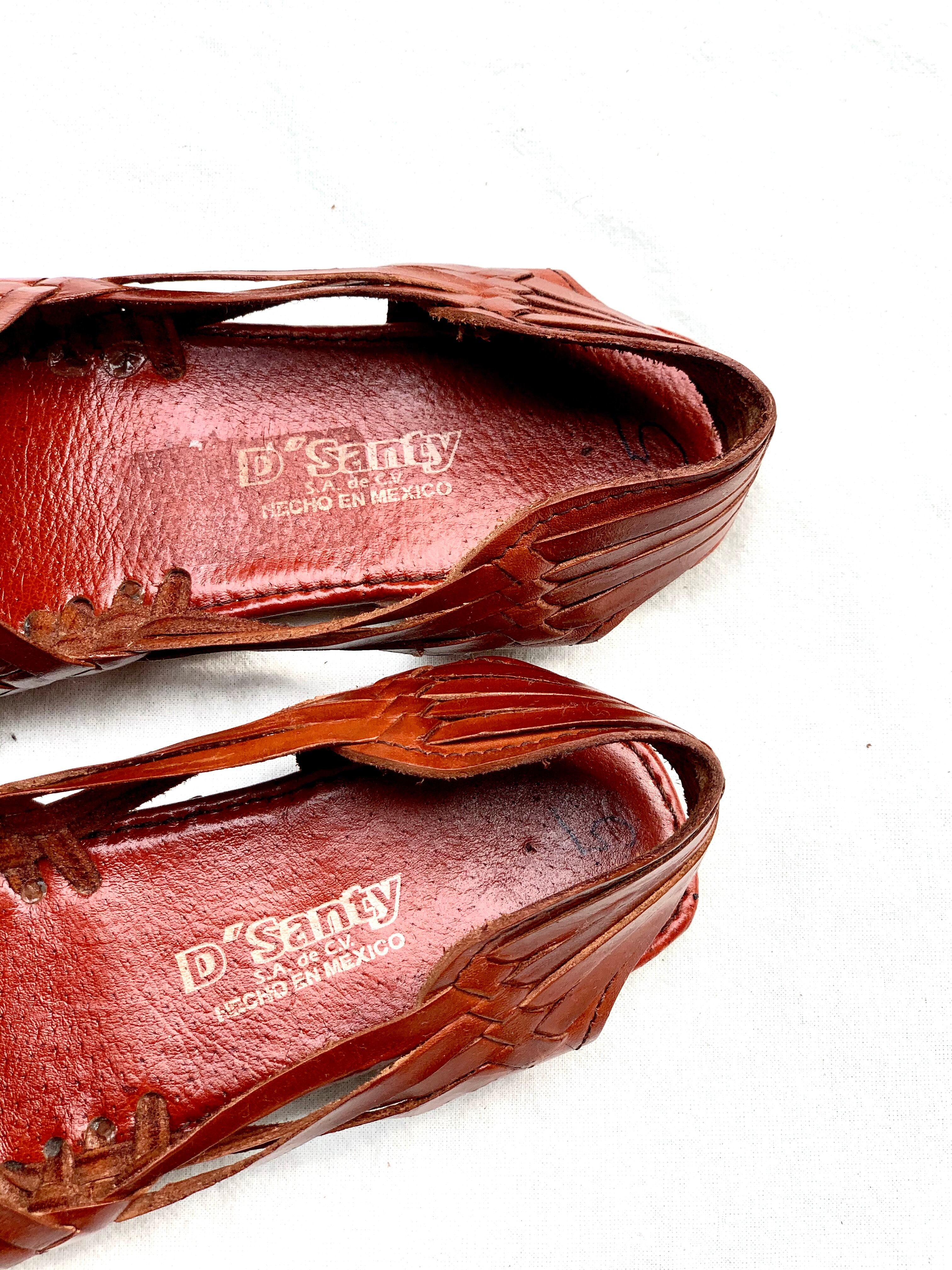 old “leather flat sandal” “Red brown” “D’Santy” made in MEXICO