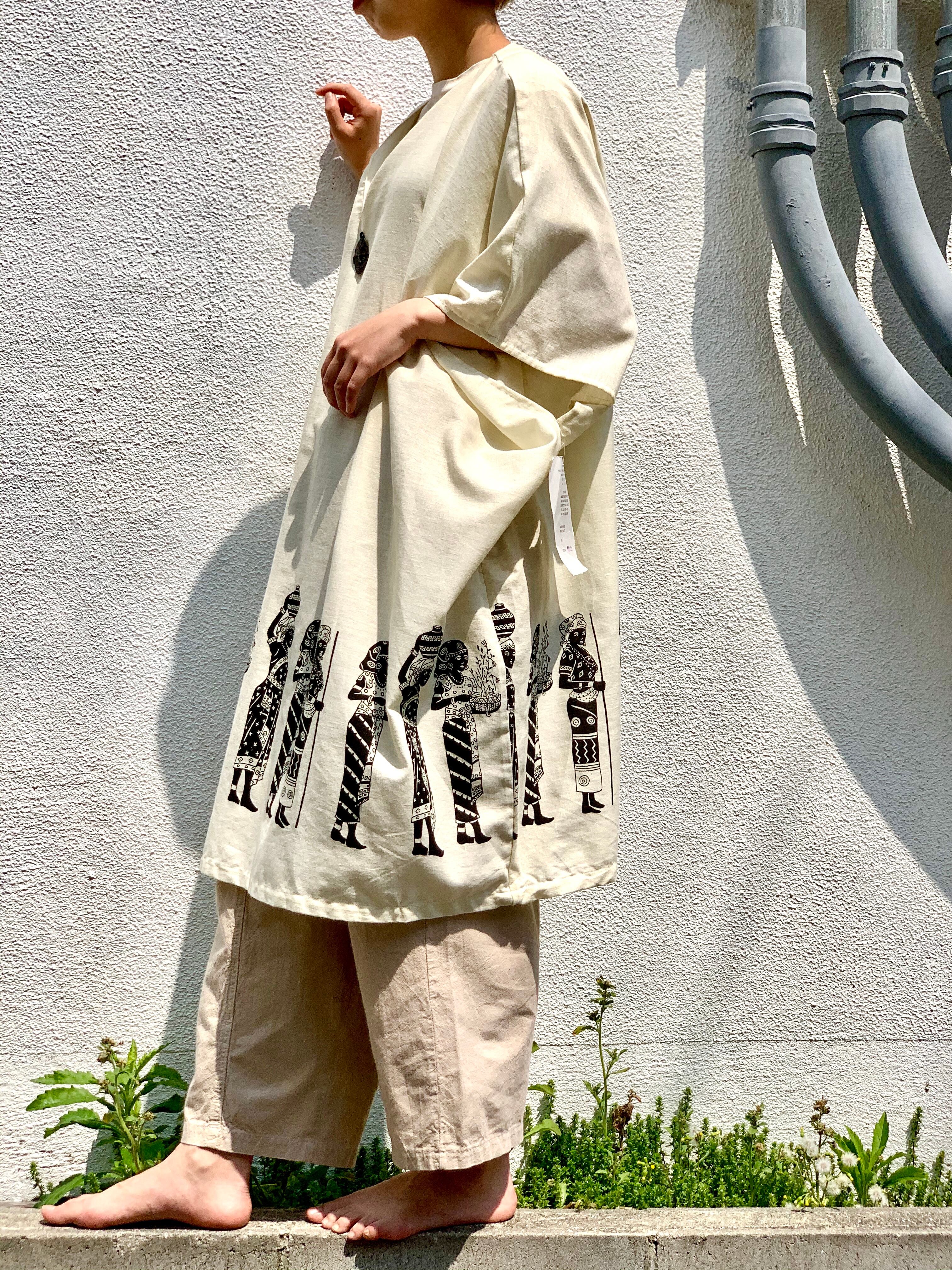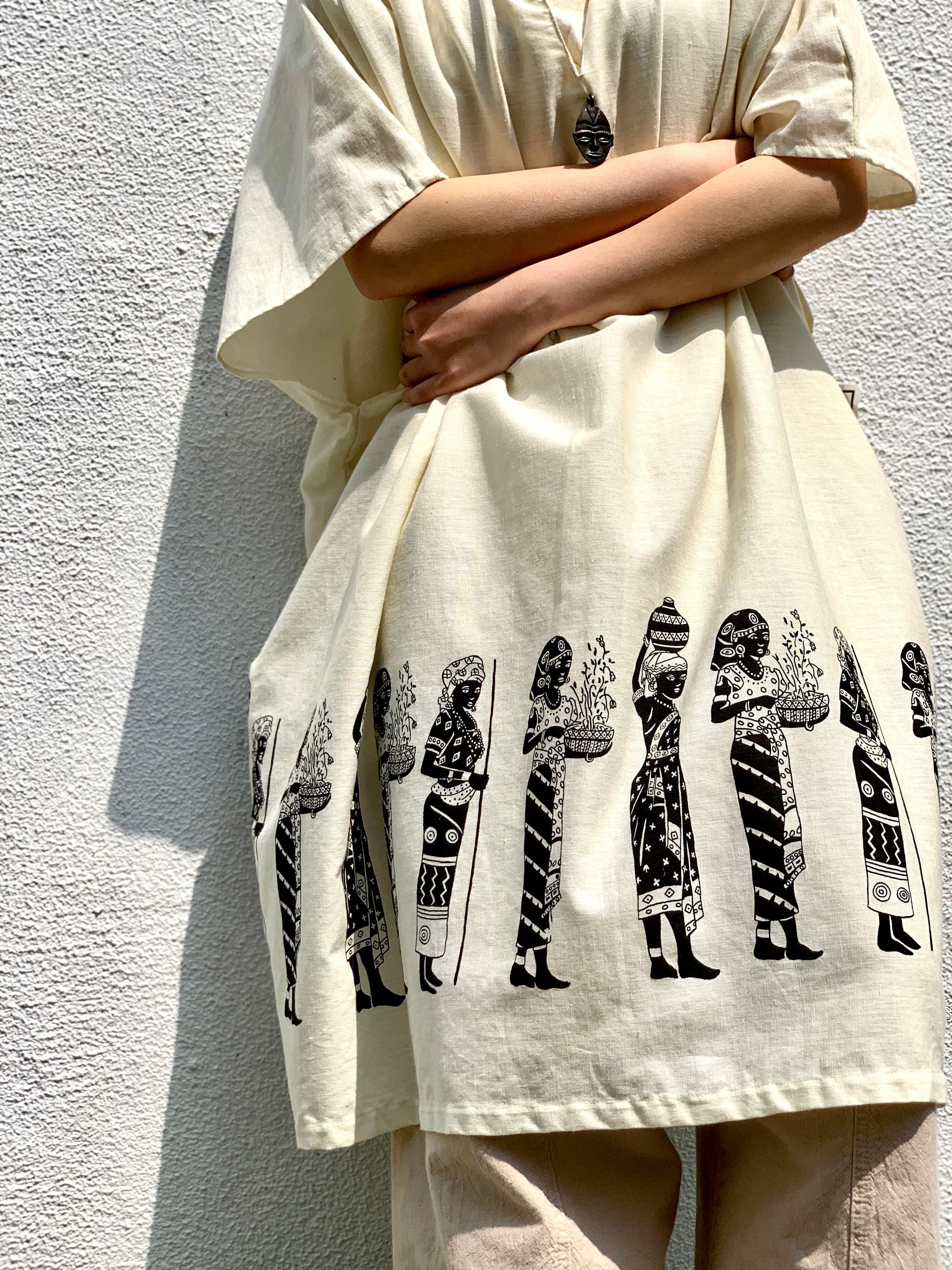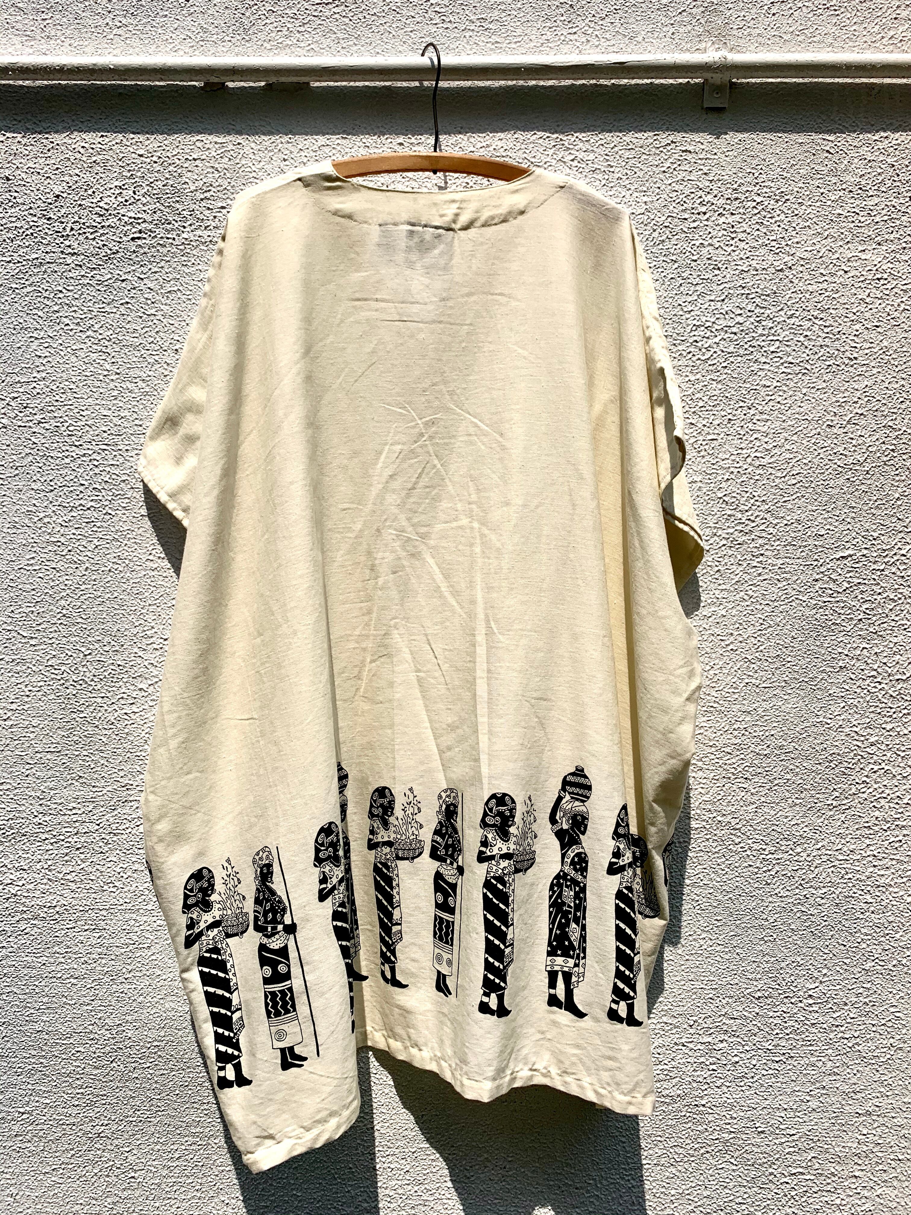 90’s−old “l/s design pullover shirts” “poncho” “NUBIANQUEEN” made in India “d.stock”