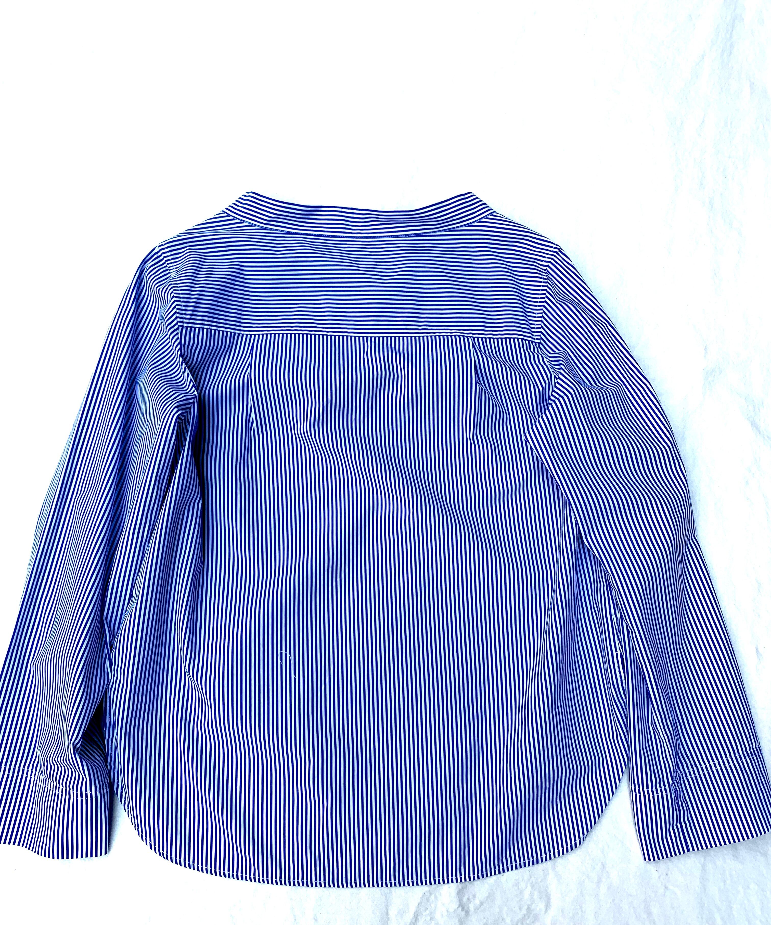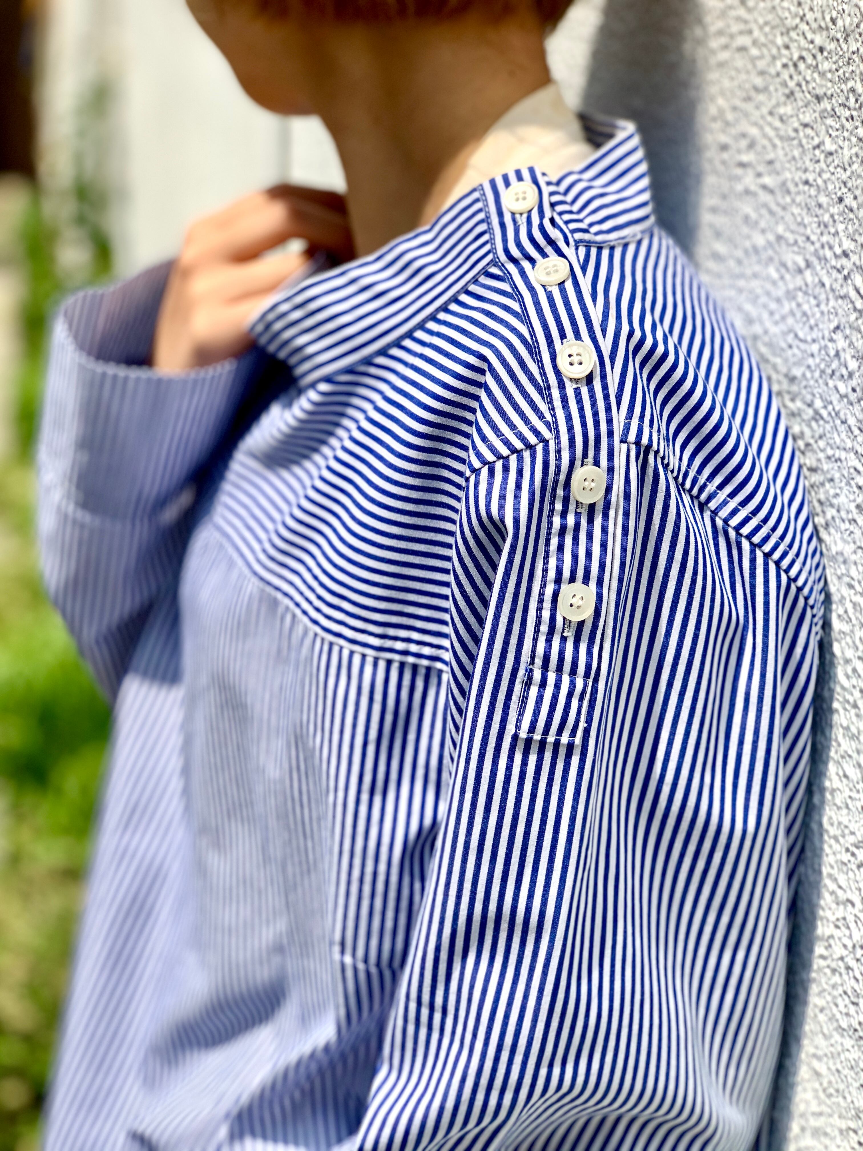 ストライプとボーダーの切り替えが目を惹くこちらのシャツ。