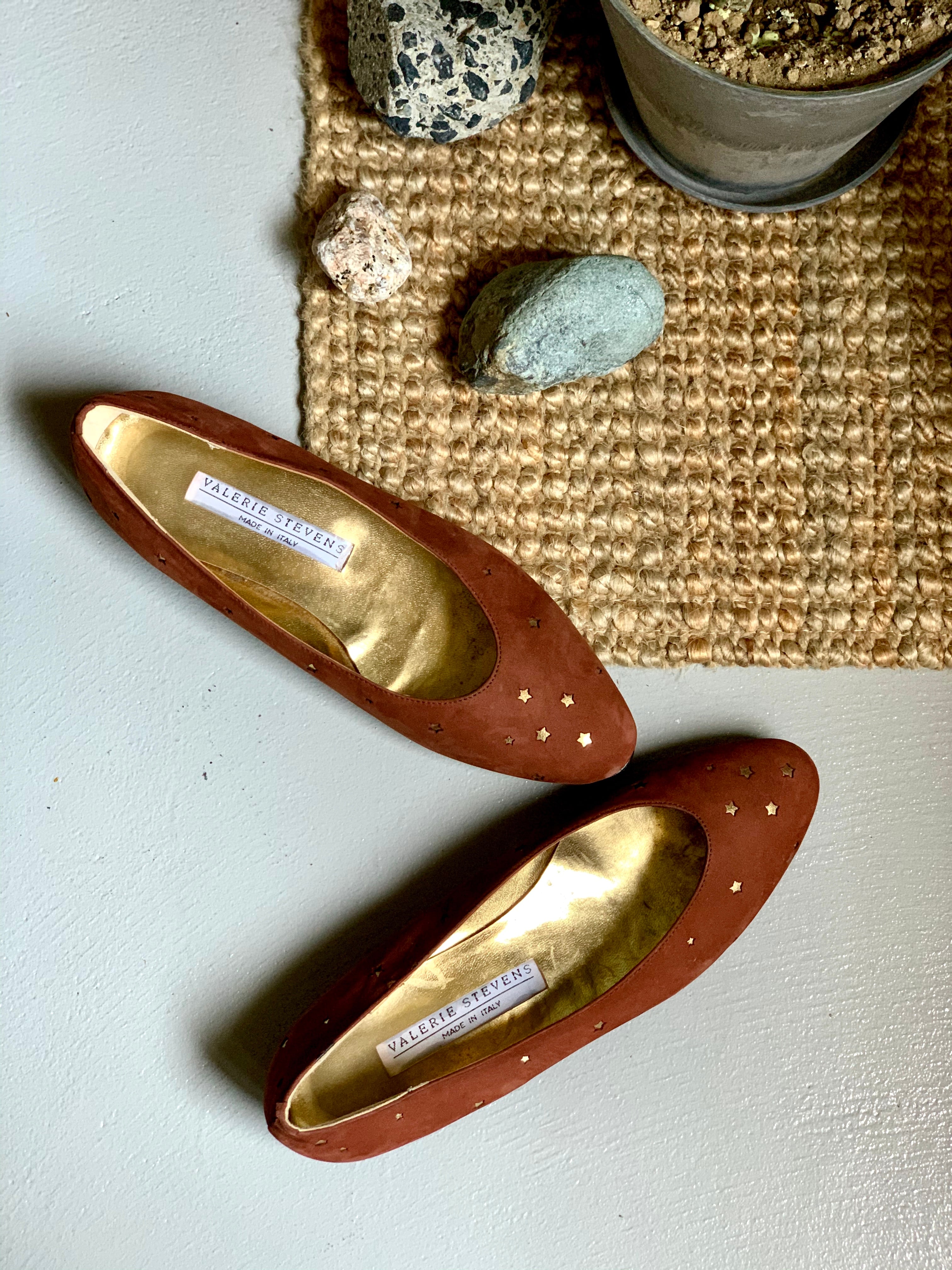 00’s− “suede leather pumps” “gold star” “VALERIE STEVENS” made in ITALY