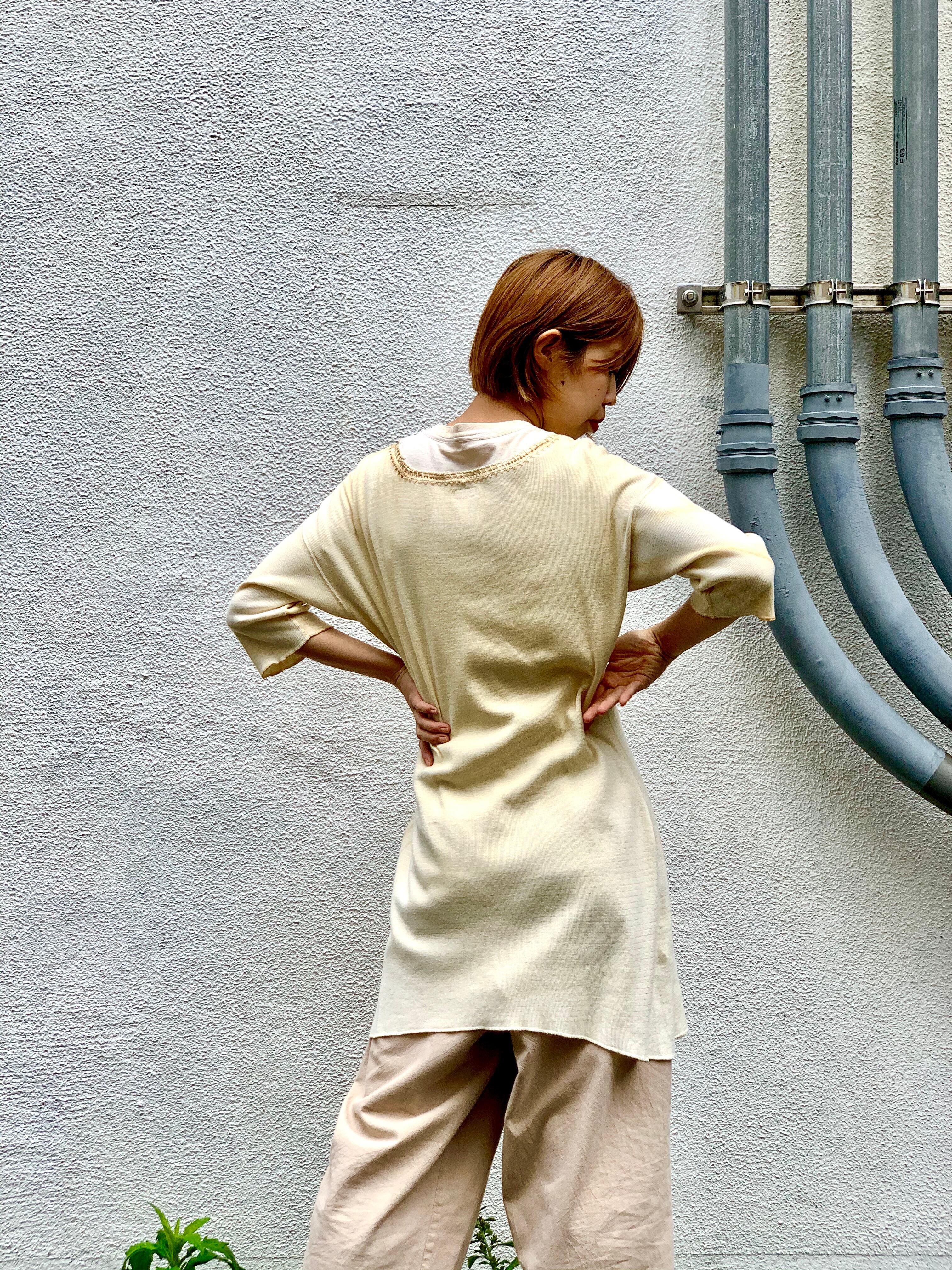 秋冬にはニットなんかとレイヤードしてお楽しみ下さい。