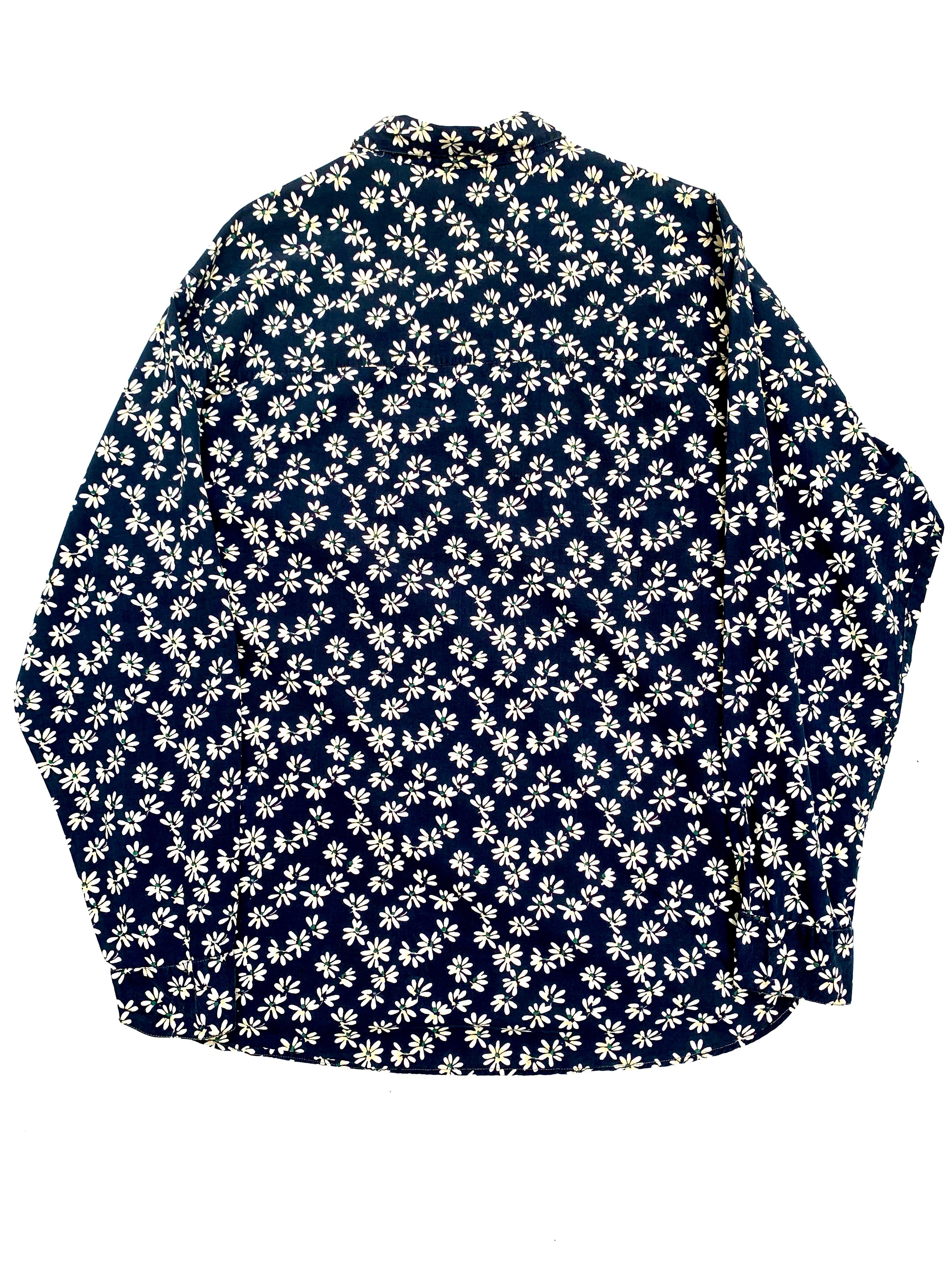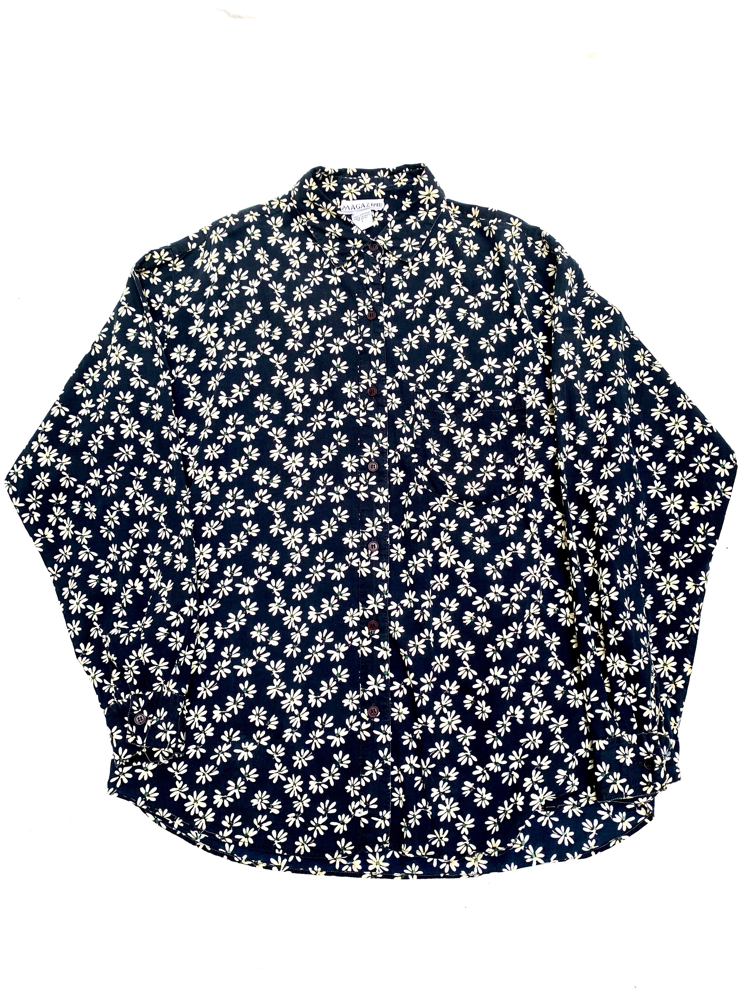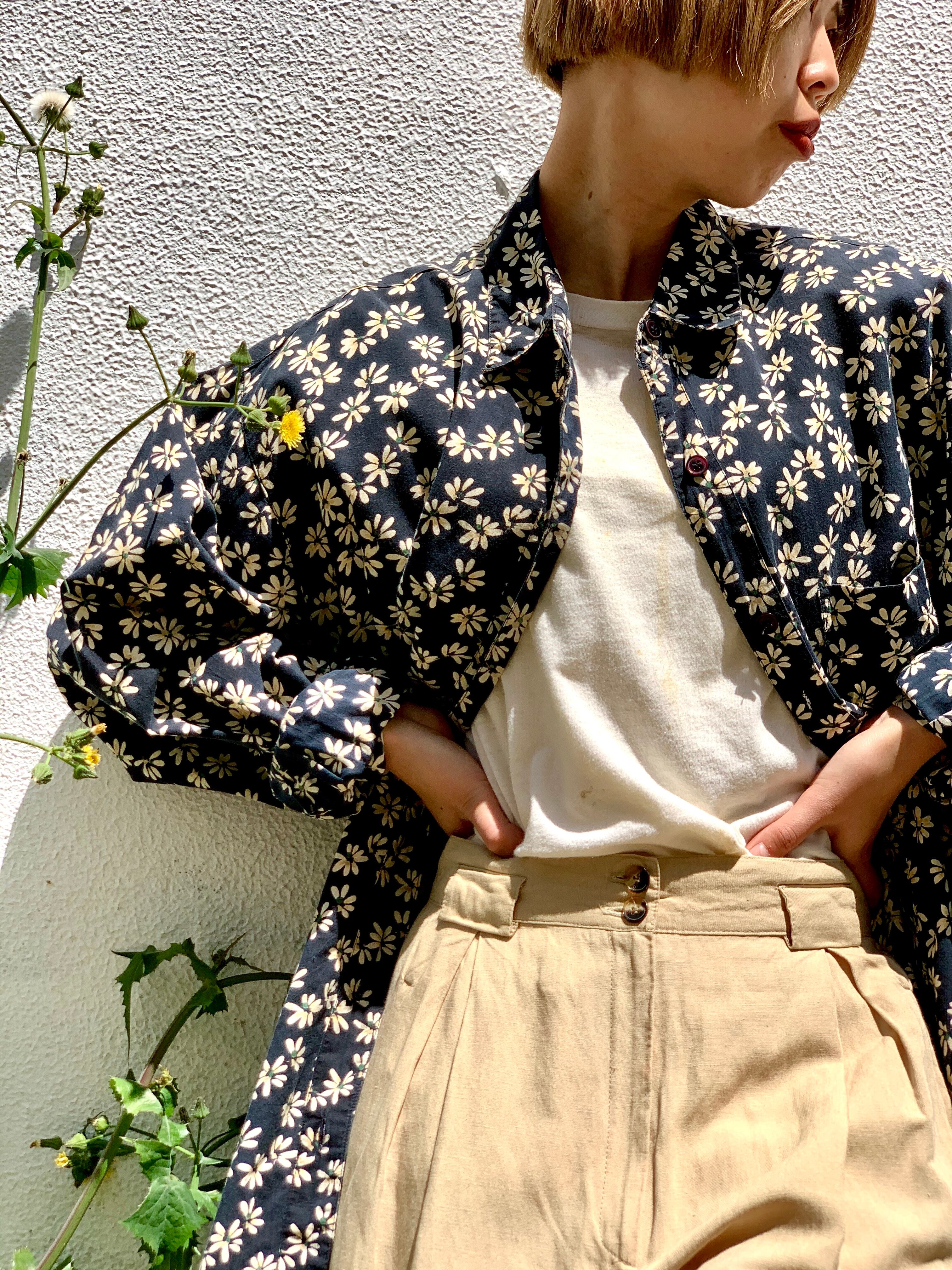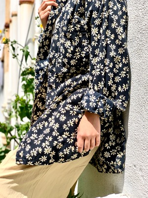 フェード感のあるネイビーのボディーに、マーガレットの総柄が映える逸品。