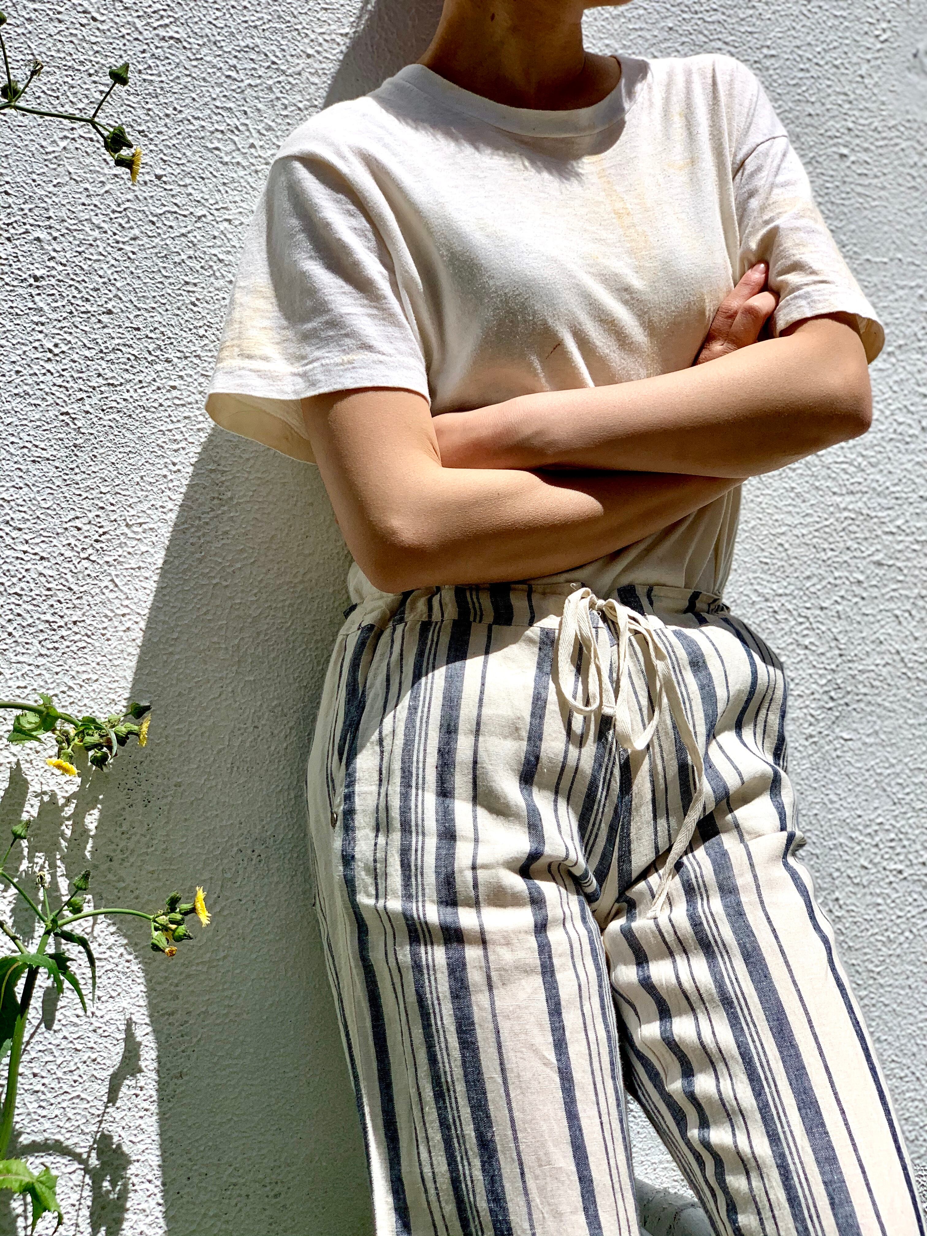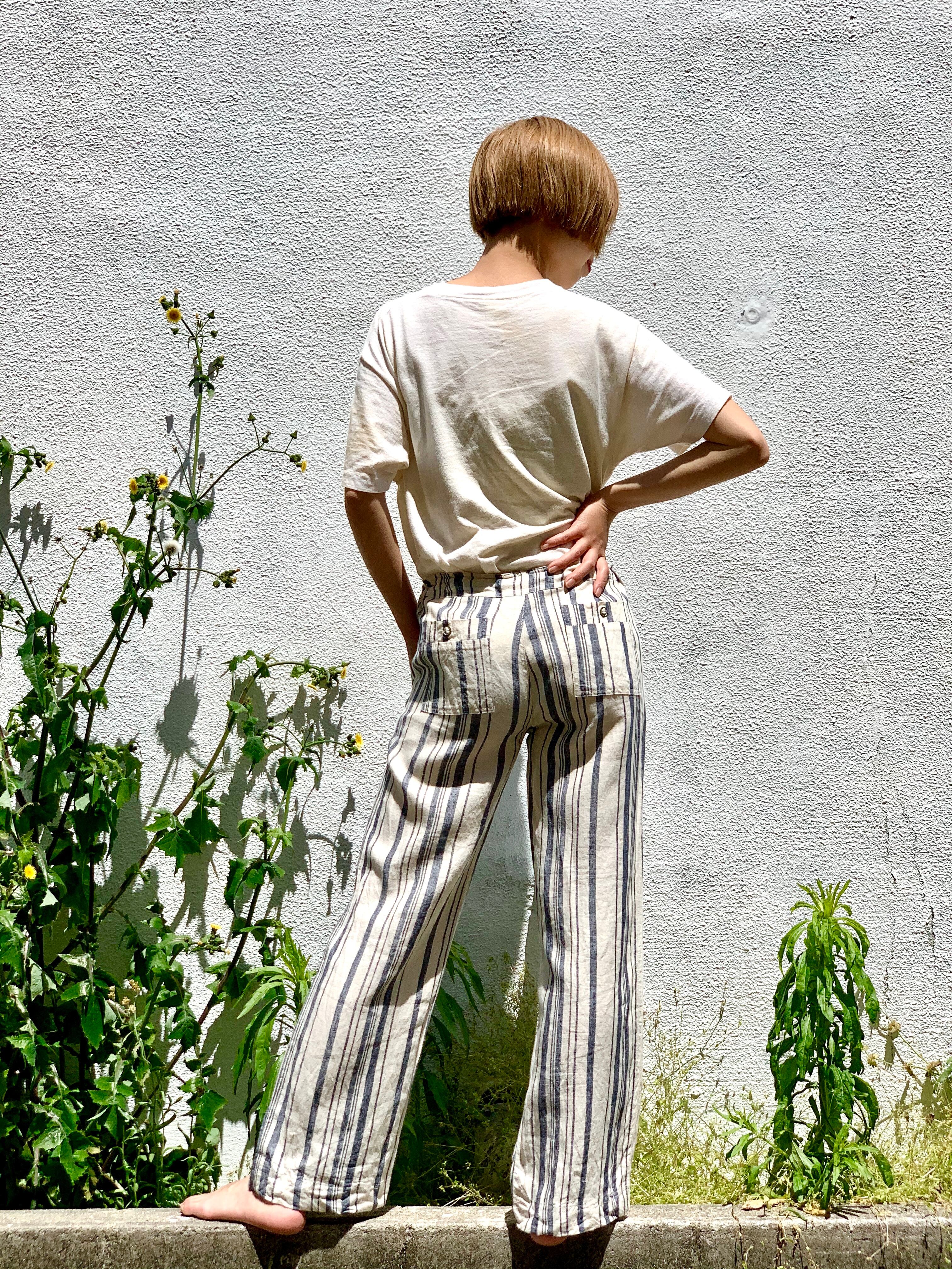 “easy pants” “ Michael Stars” “LINEN 100%” “white×sax-blue”の御紹介です。