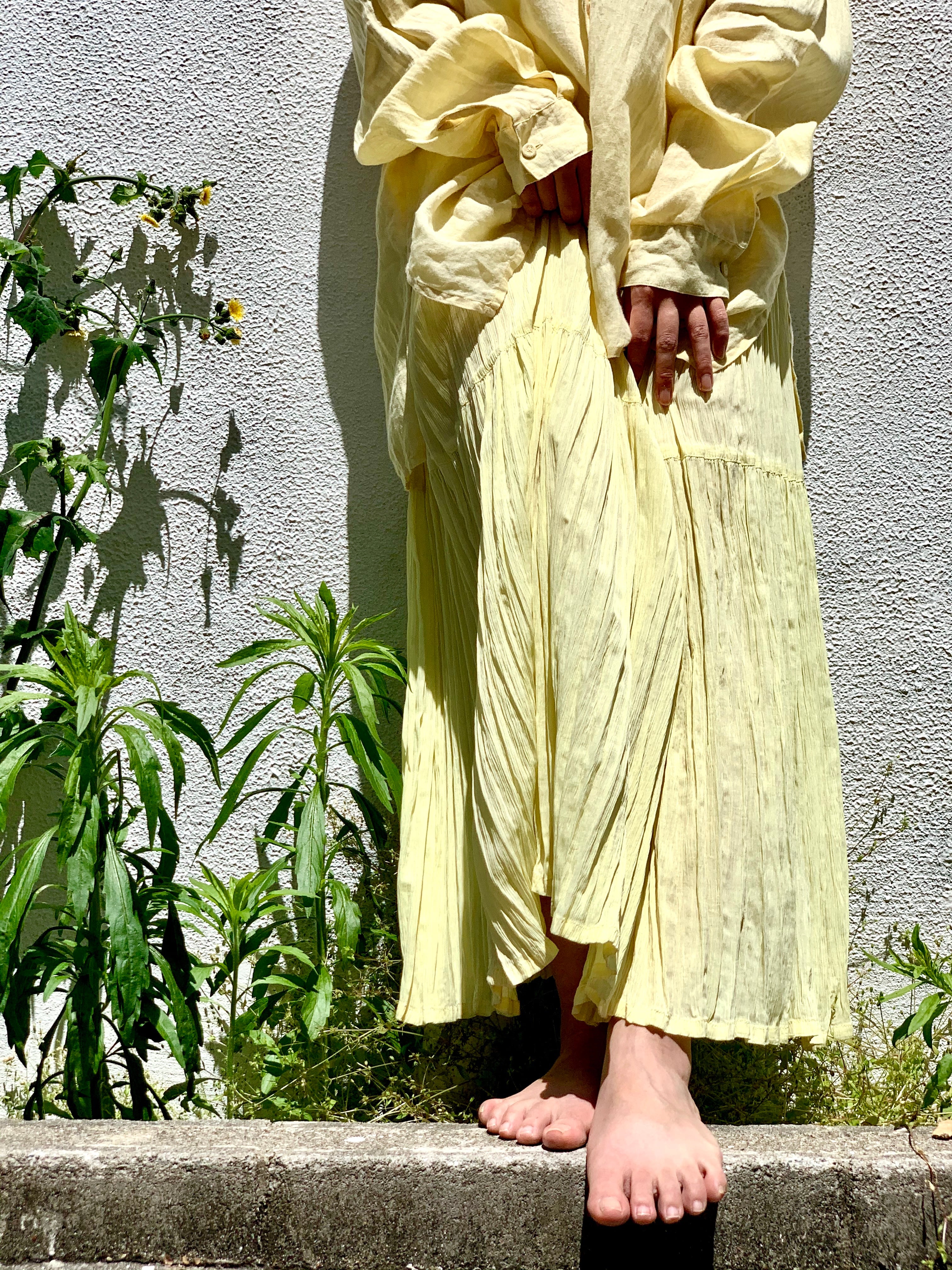 パステルイエローが涼しい印象のこちらのスカート。