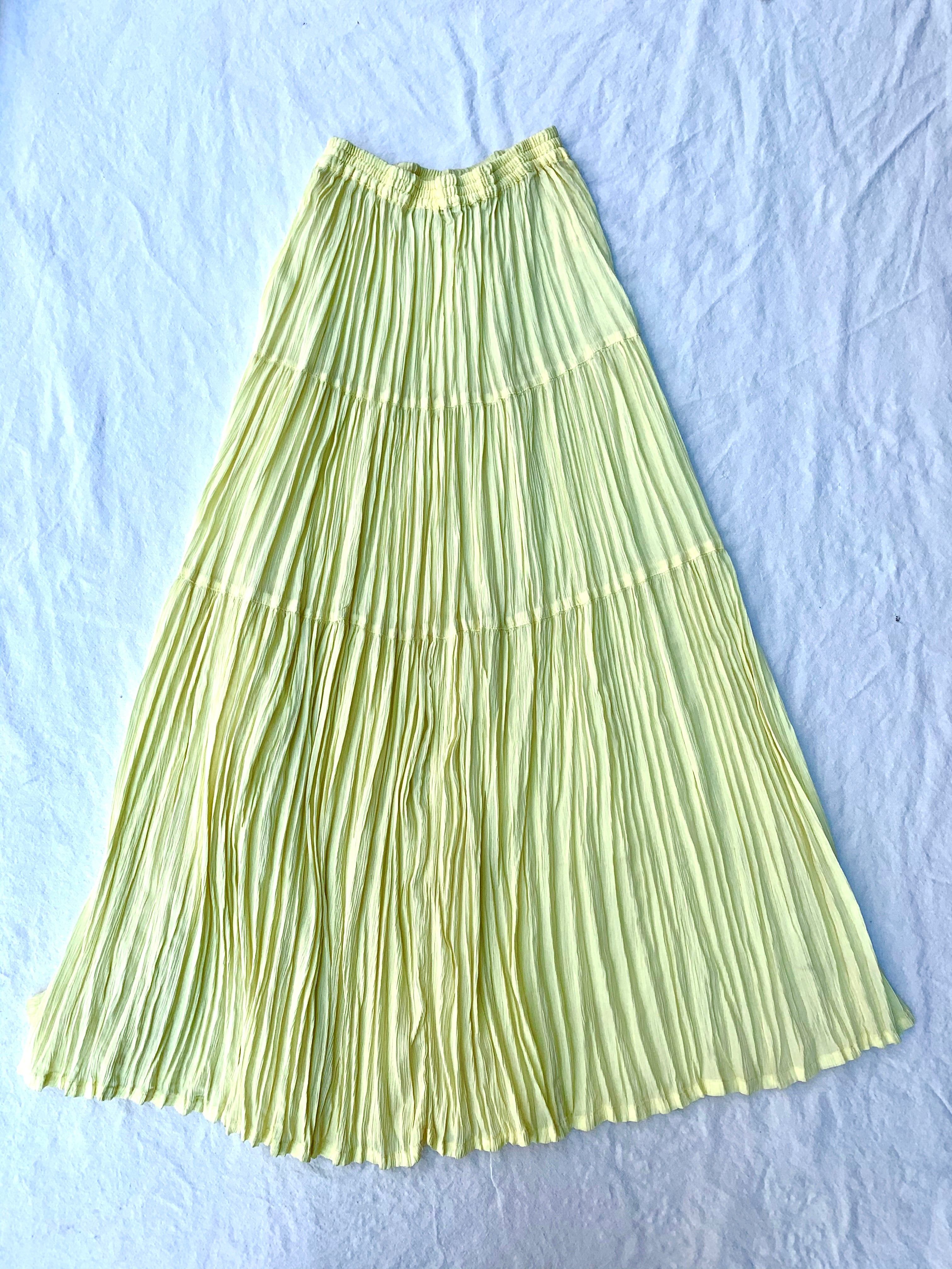 90’s−“Tiered skirt” “yellow” “polyester 100%” made in INDIA