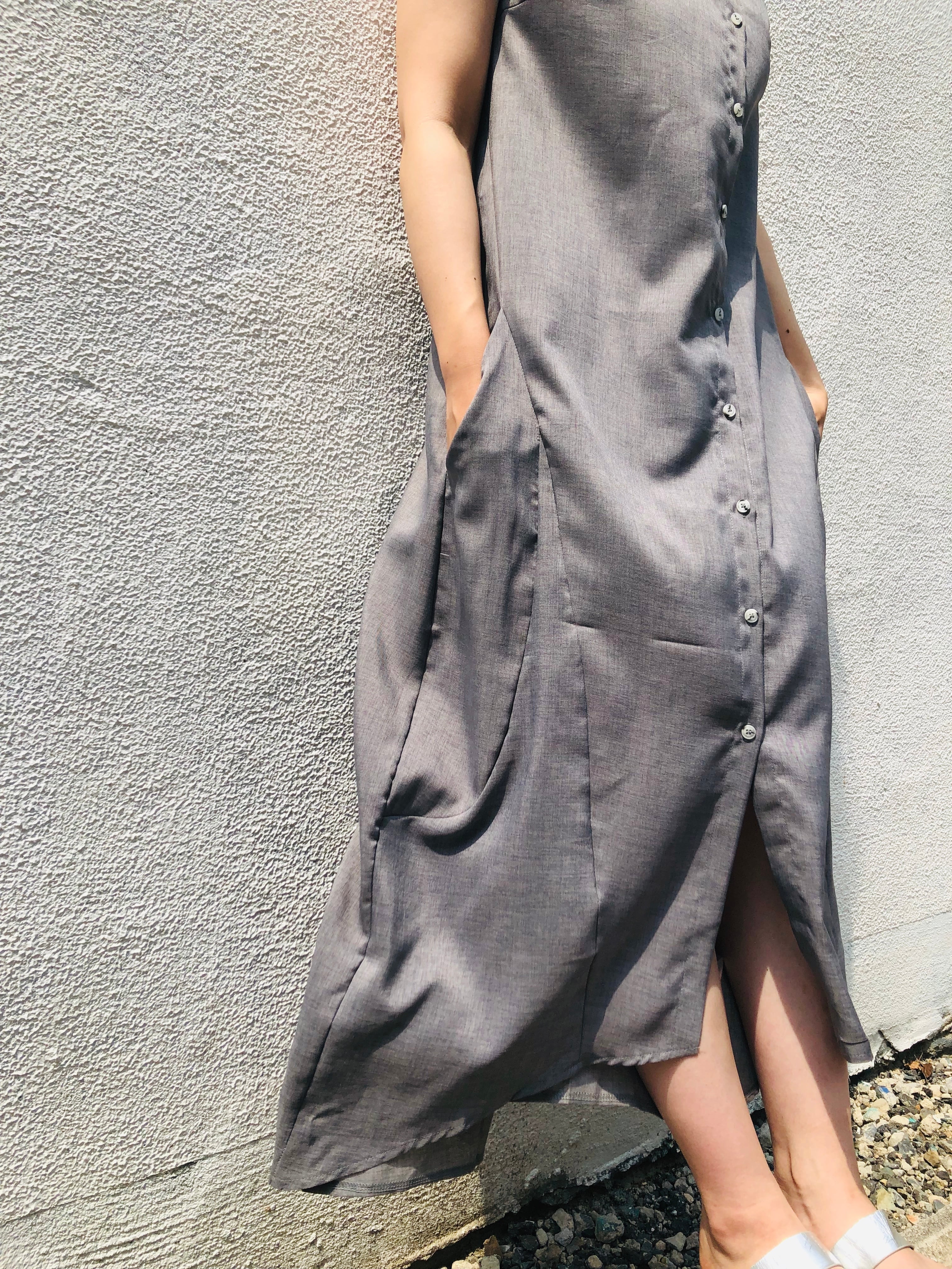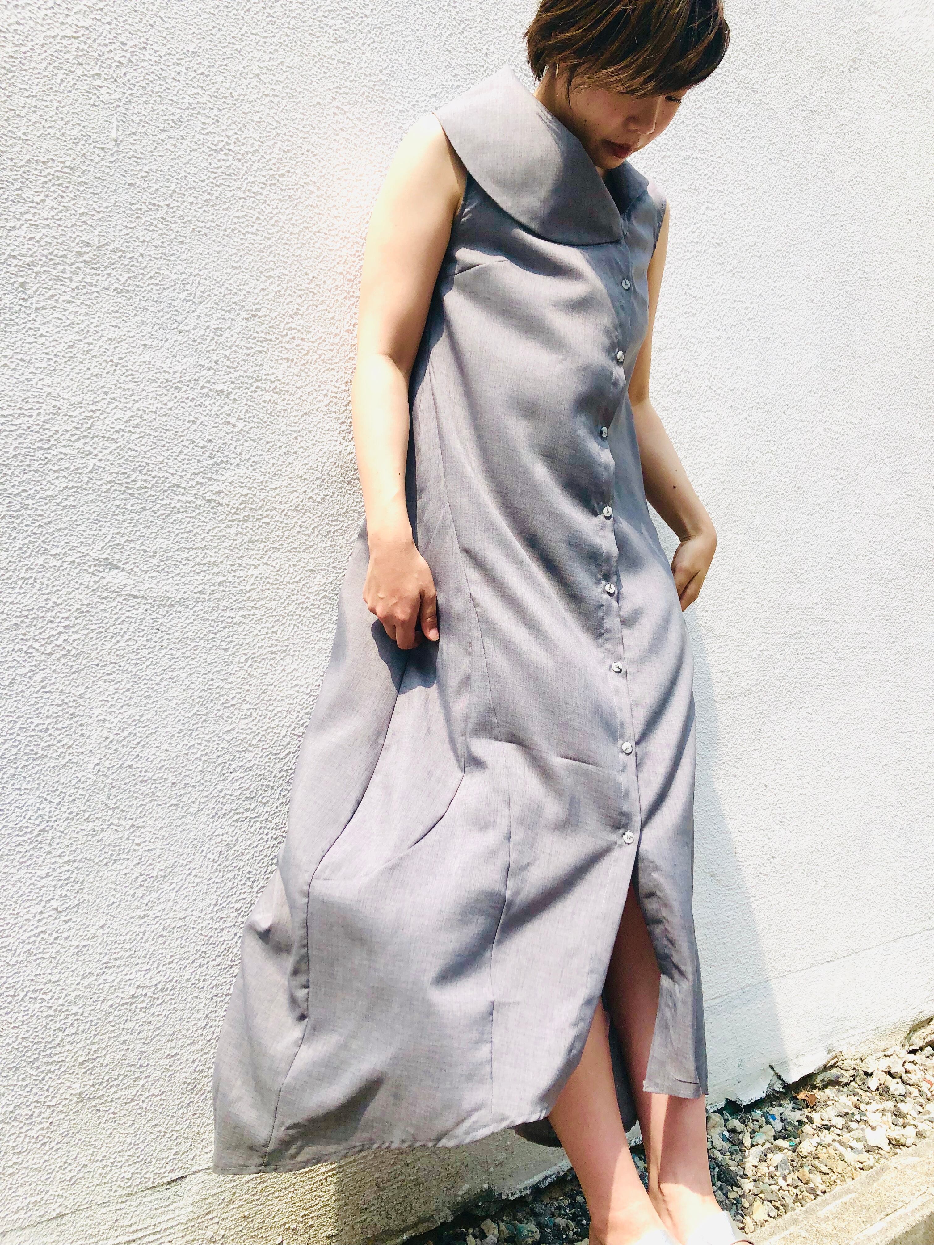 襟元から裾に掛けてのディティールが特徴的なワンピース。