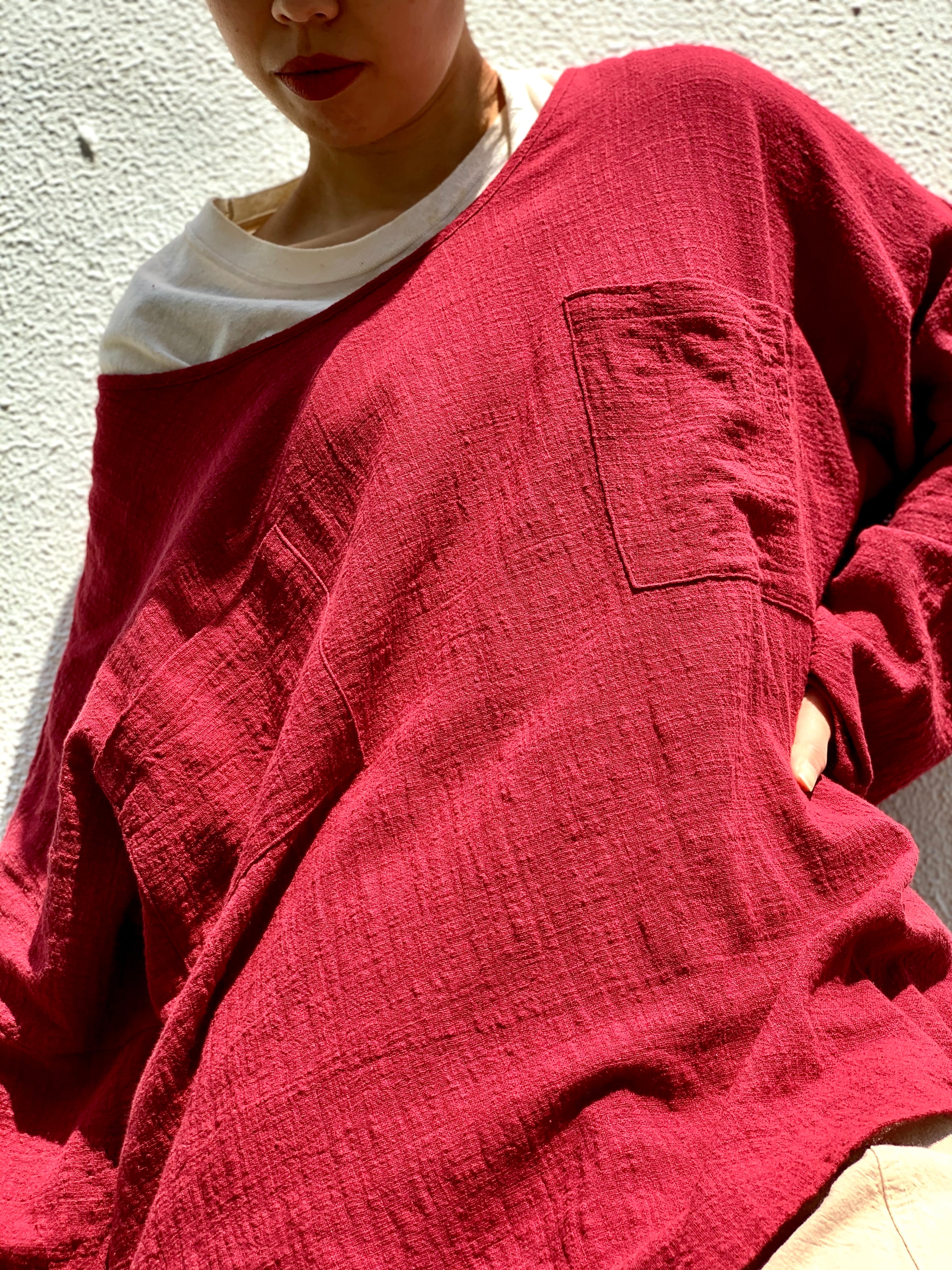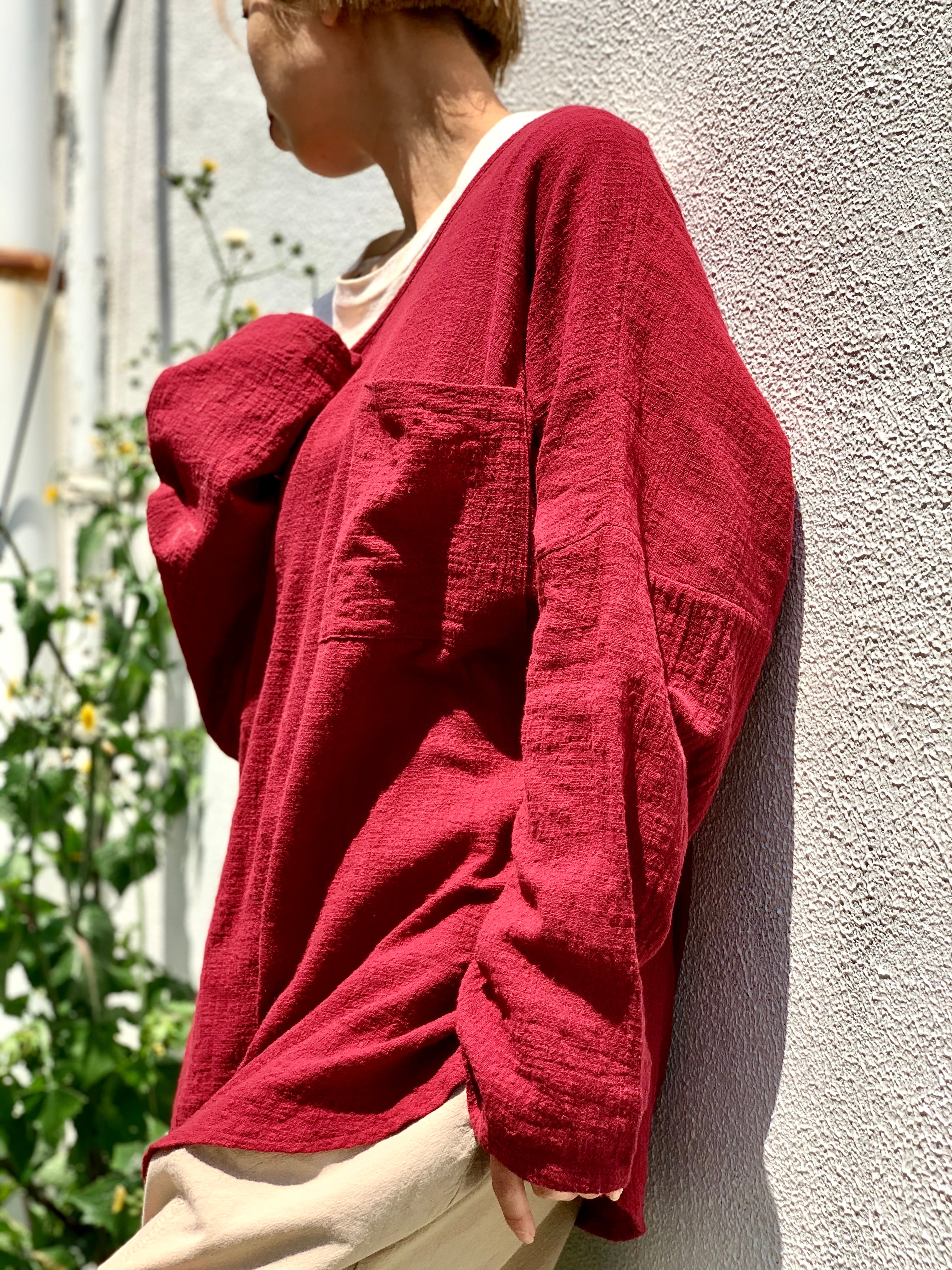 コットン100%でリネンに近い素材感なので着心地良いです。