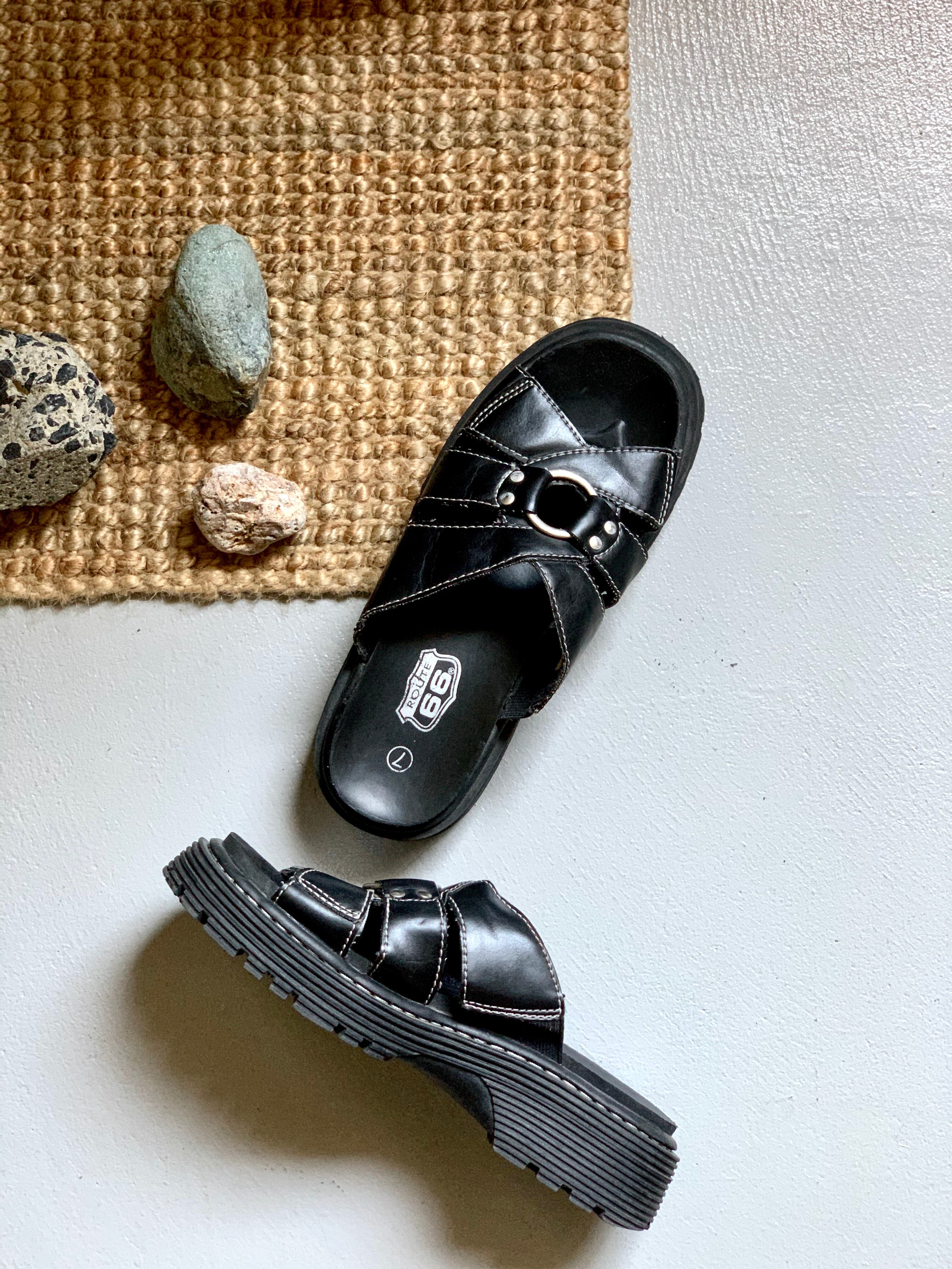 “design platform sandal” “black” “ROUTE66”の御紹介です。