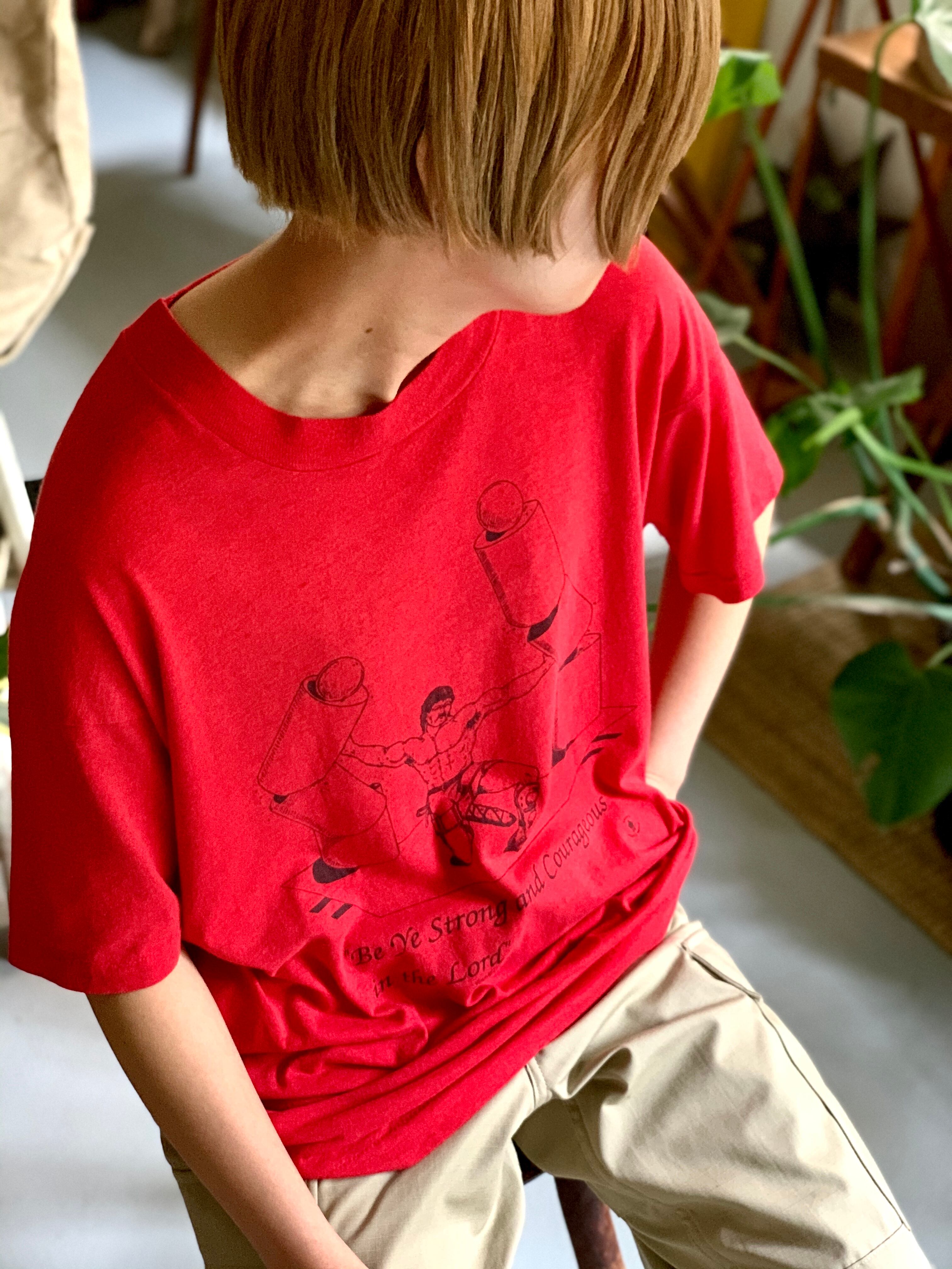 80’s−old “s/s print t−sh” “Be ye strong and courageous in the lord”