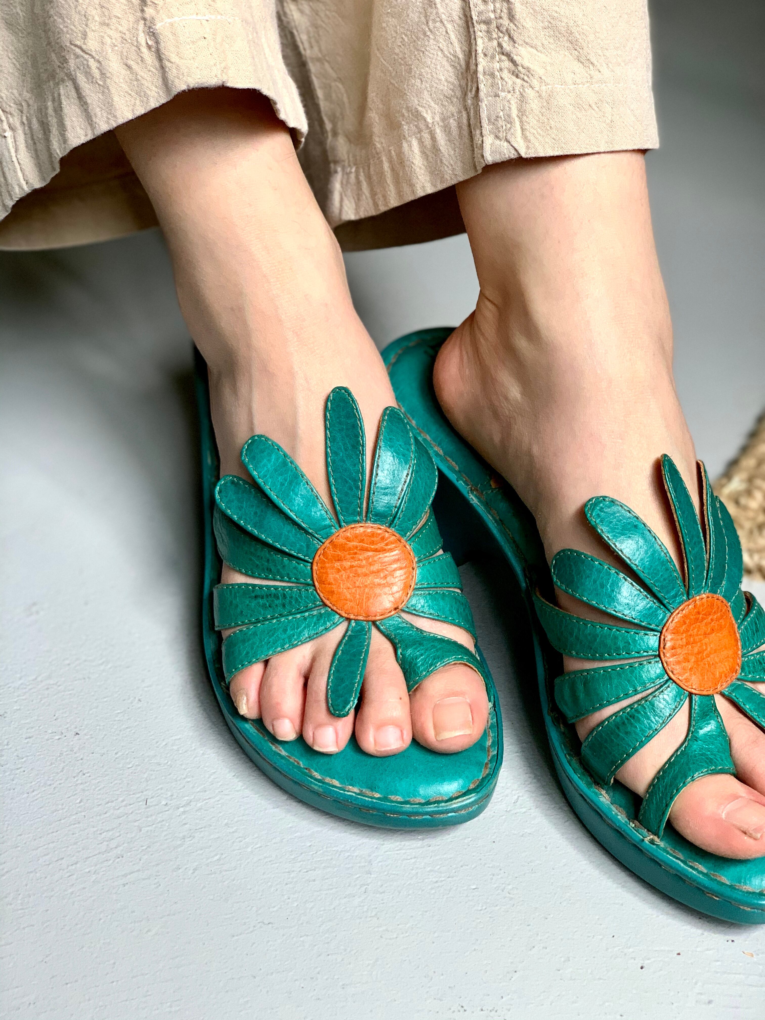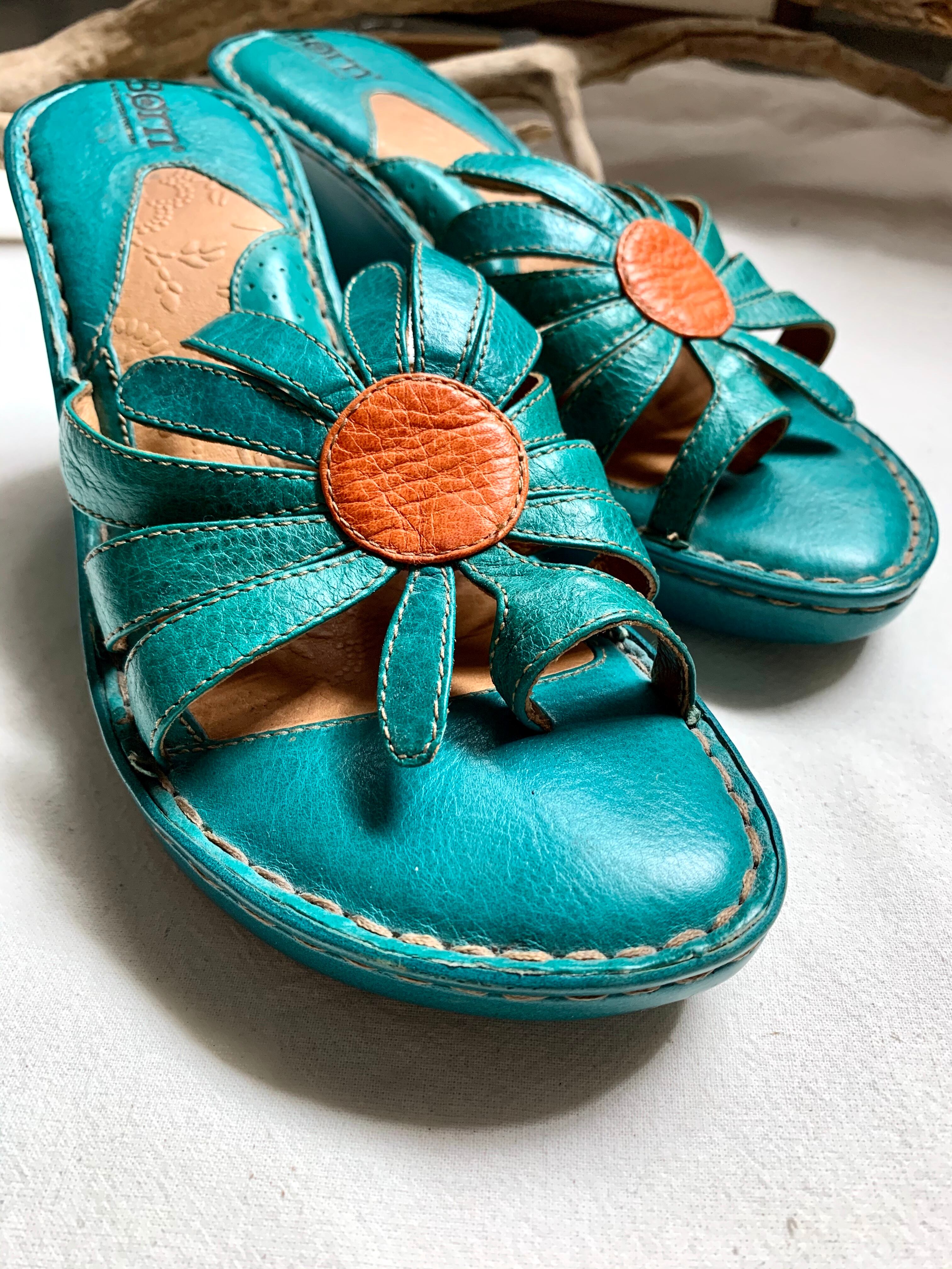 “flower leather heel sandal” “Born”