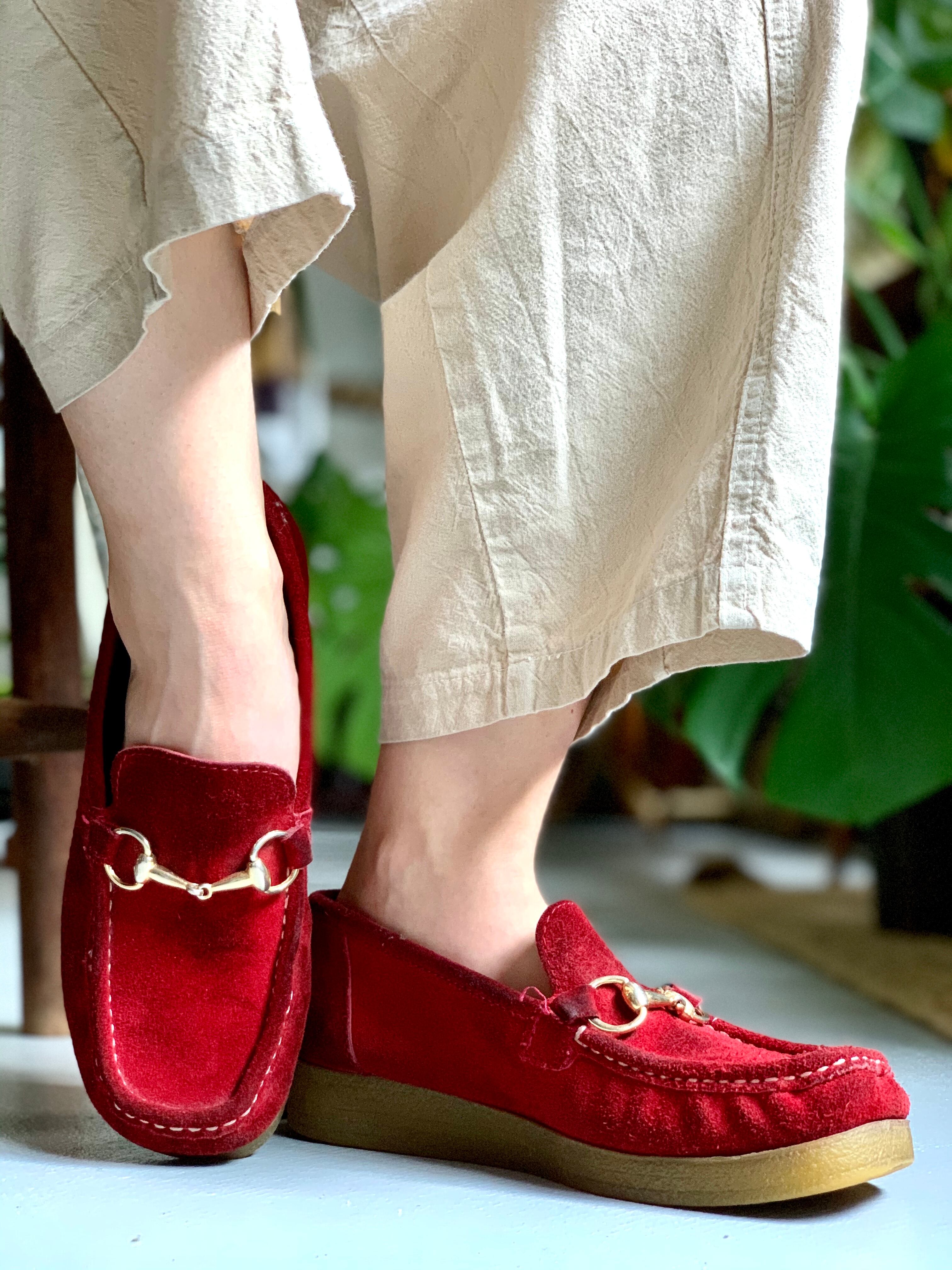 “suede leather shoes” “wine red”