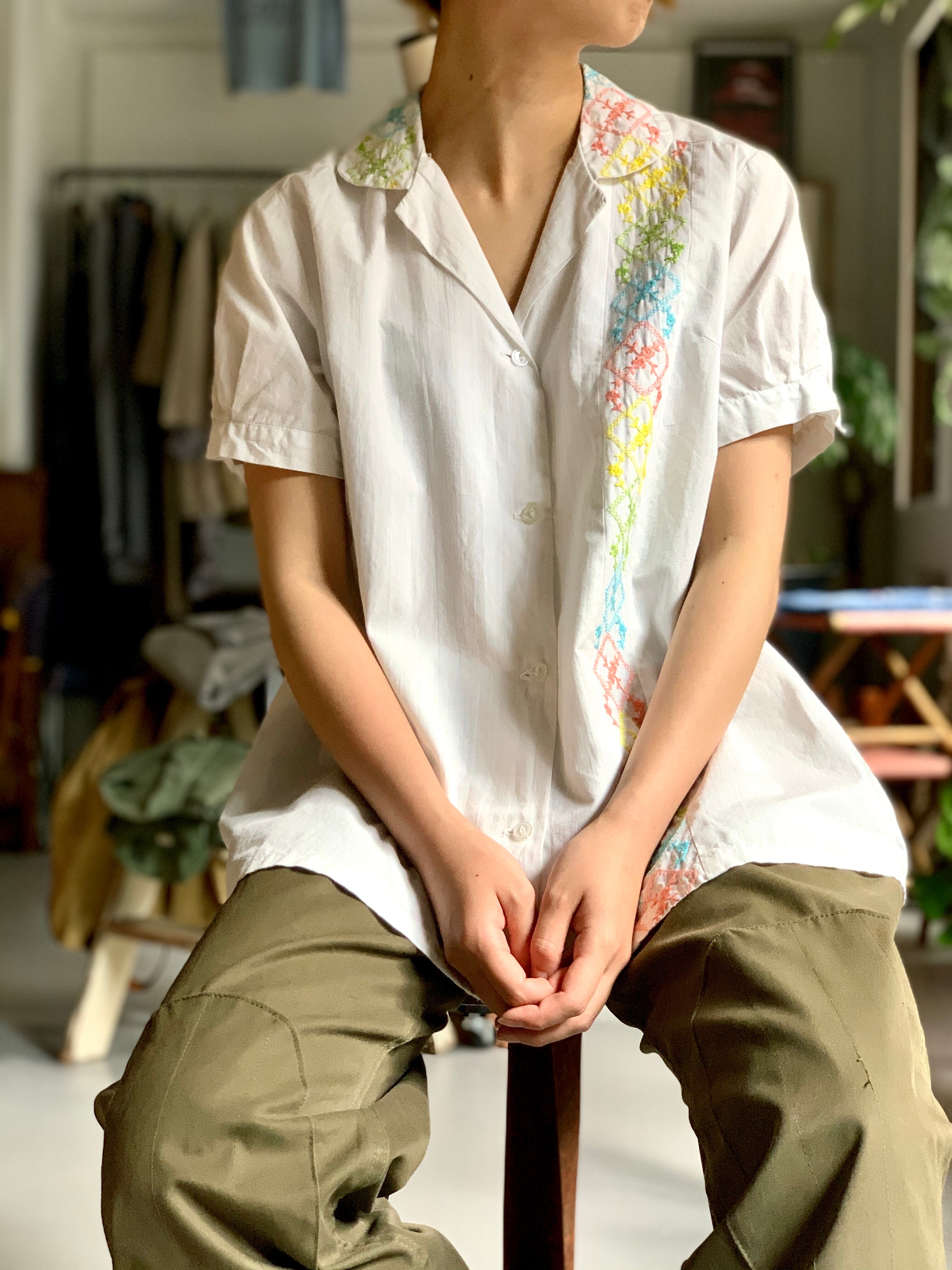 70’s vintage “s/s embroidery shirt”