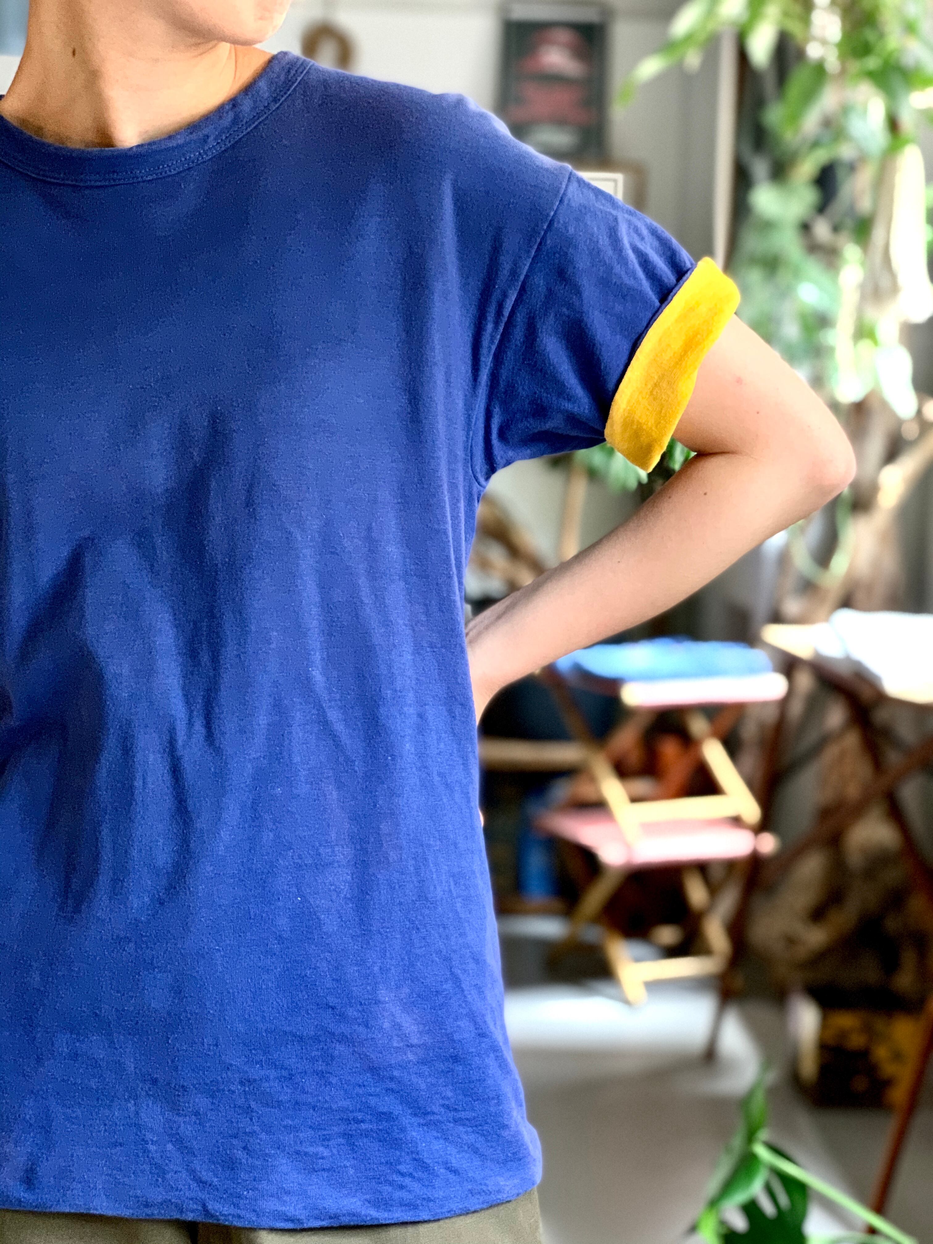 Tシャツのボディが二重になっており、表と裏の生地の色が違う事からダブルフェイスとも呼ばれているリバーシブルTシャツ。
