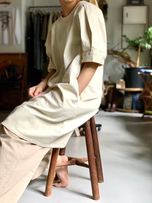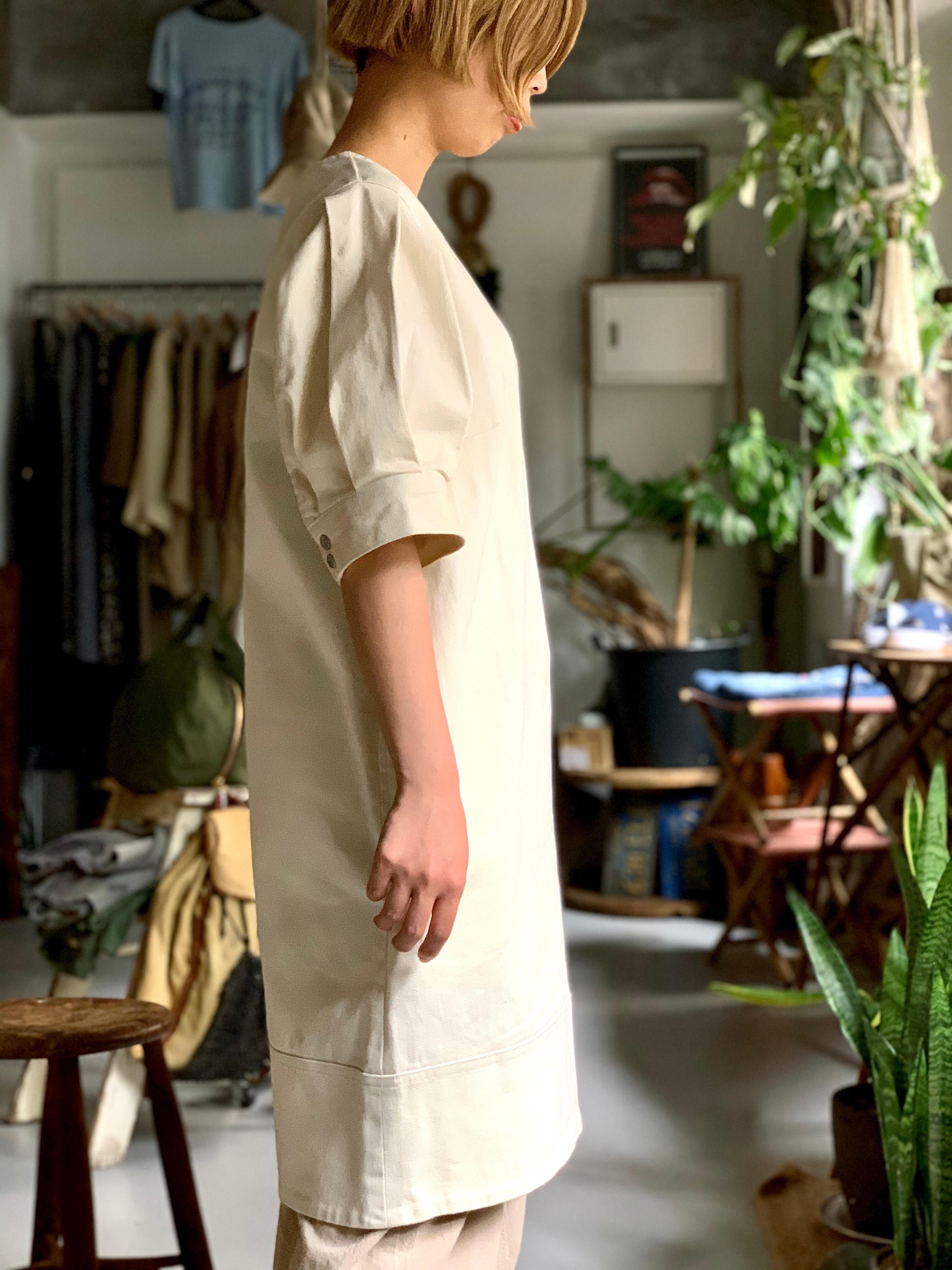 無地でオフホワイトとシンプルですが、袖や裾等ディティールがしっかりとしているのでモードな雰囲気があります。