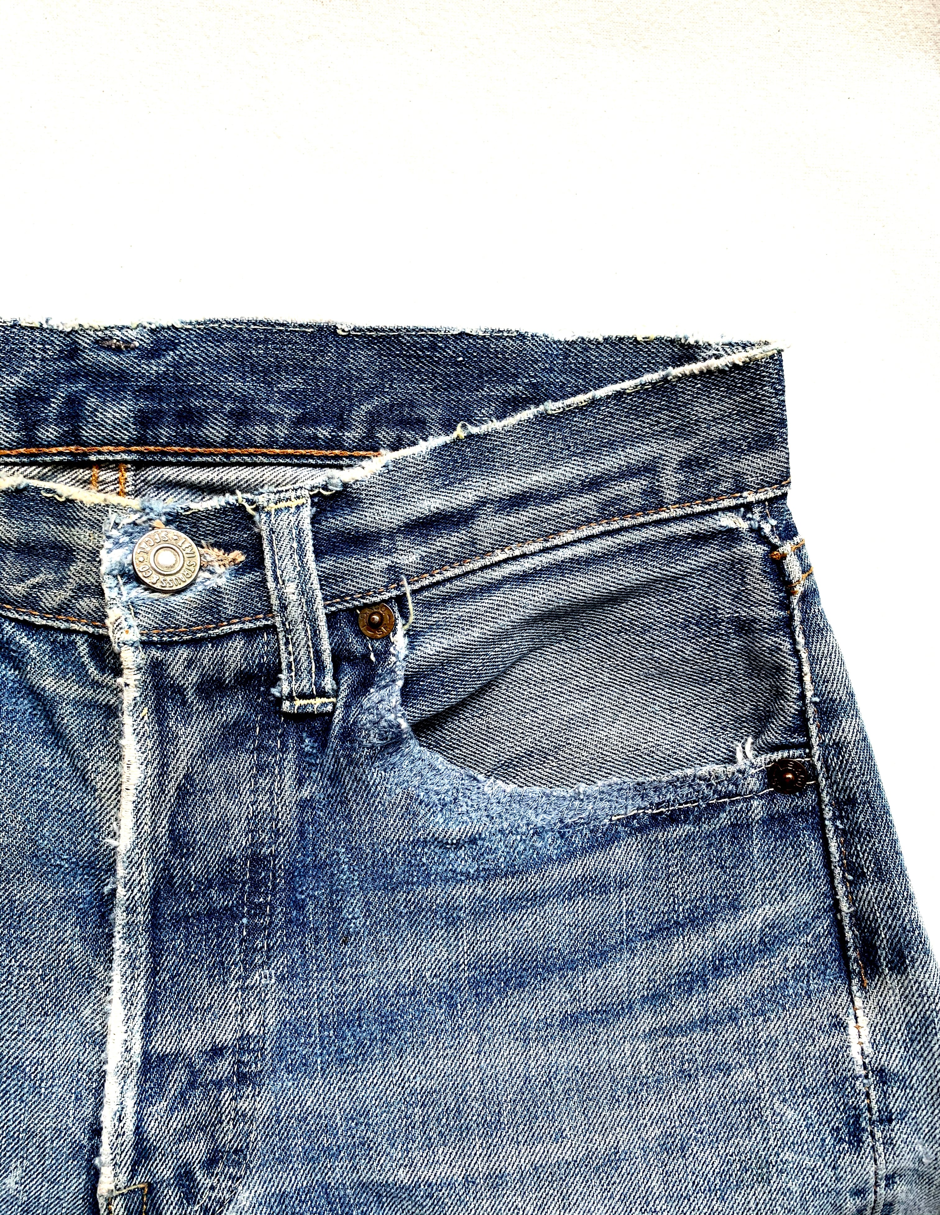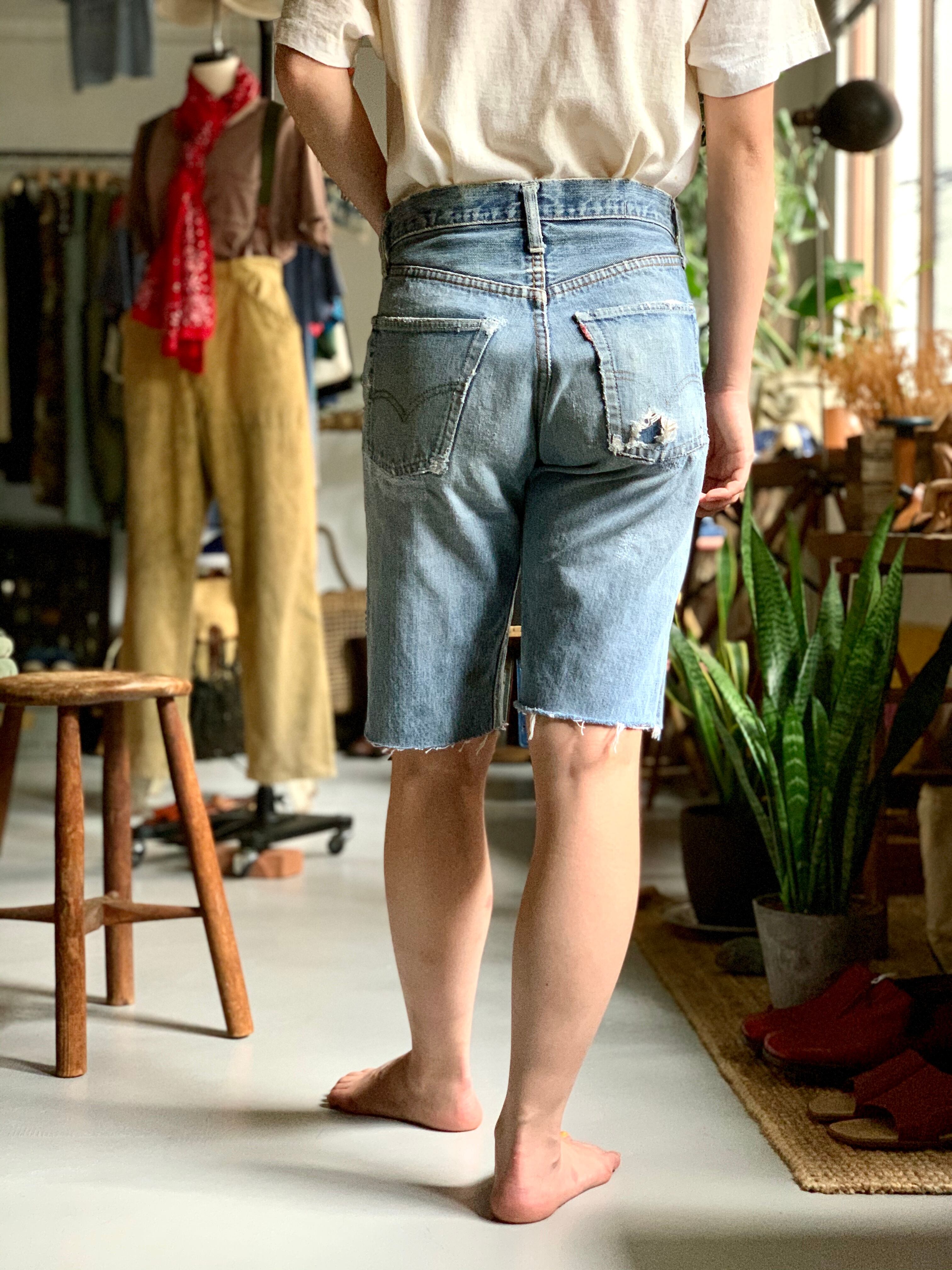 60’s vintage “Levis 501 66 Big E” “type model” “denim cut off shorts”