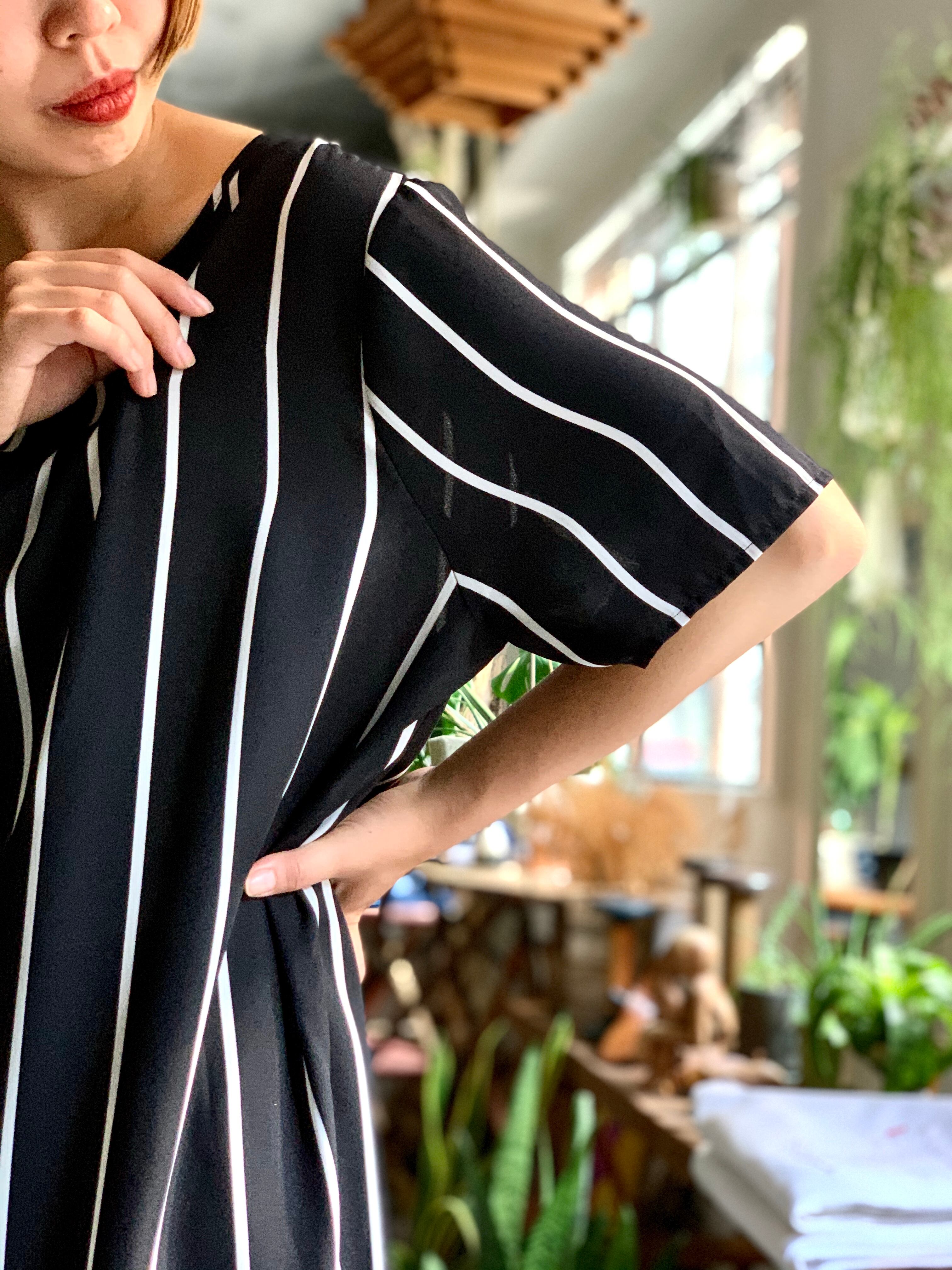 “s/s pencil stripe one piece” “design see-through” “100% polyester”の御紹介です。