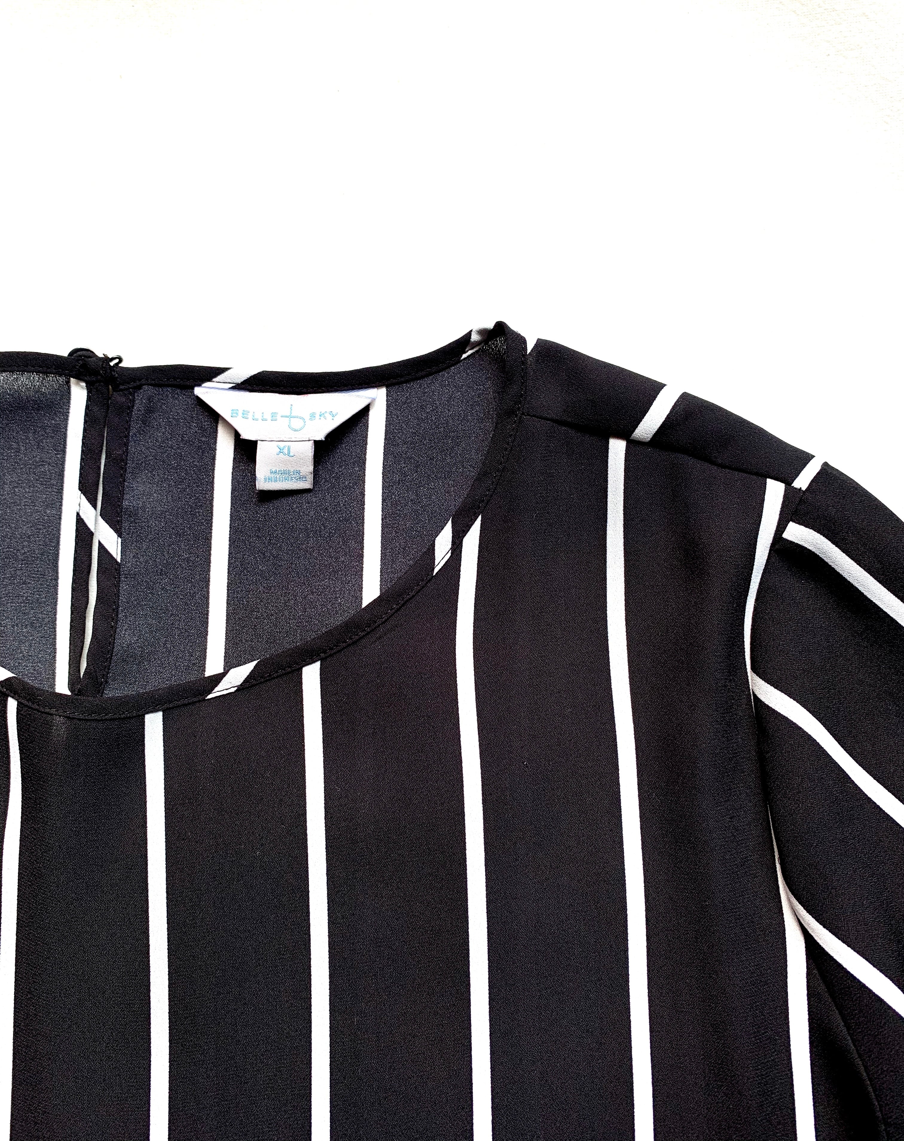 “s/s pencil stripe one piece” “design see-through” “100% polyester”