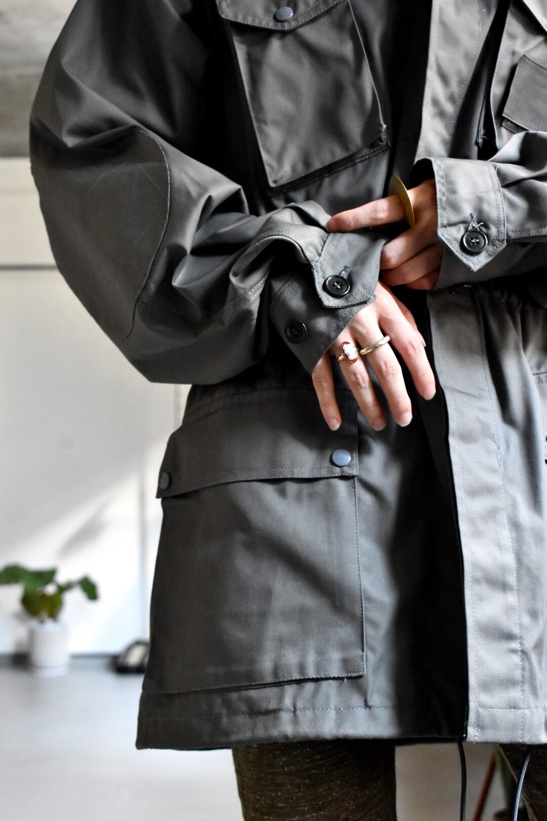 フロントポケットは斜め、裾にドローコードが配置され絞り上げてシルエットの変化も楽しめます。