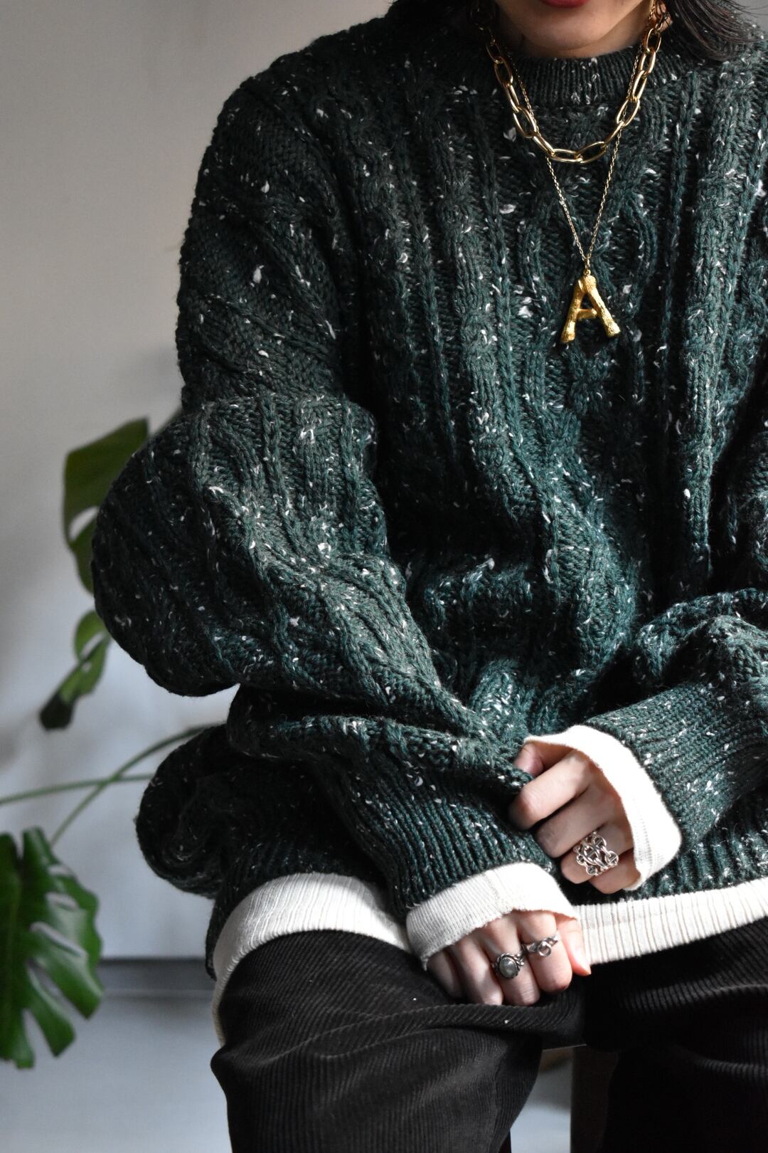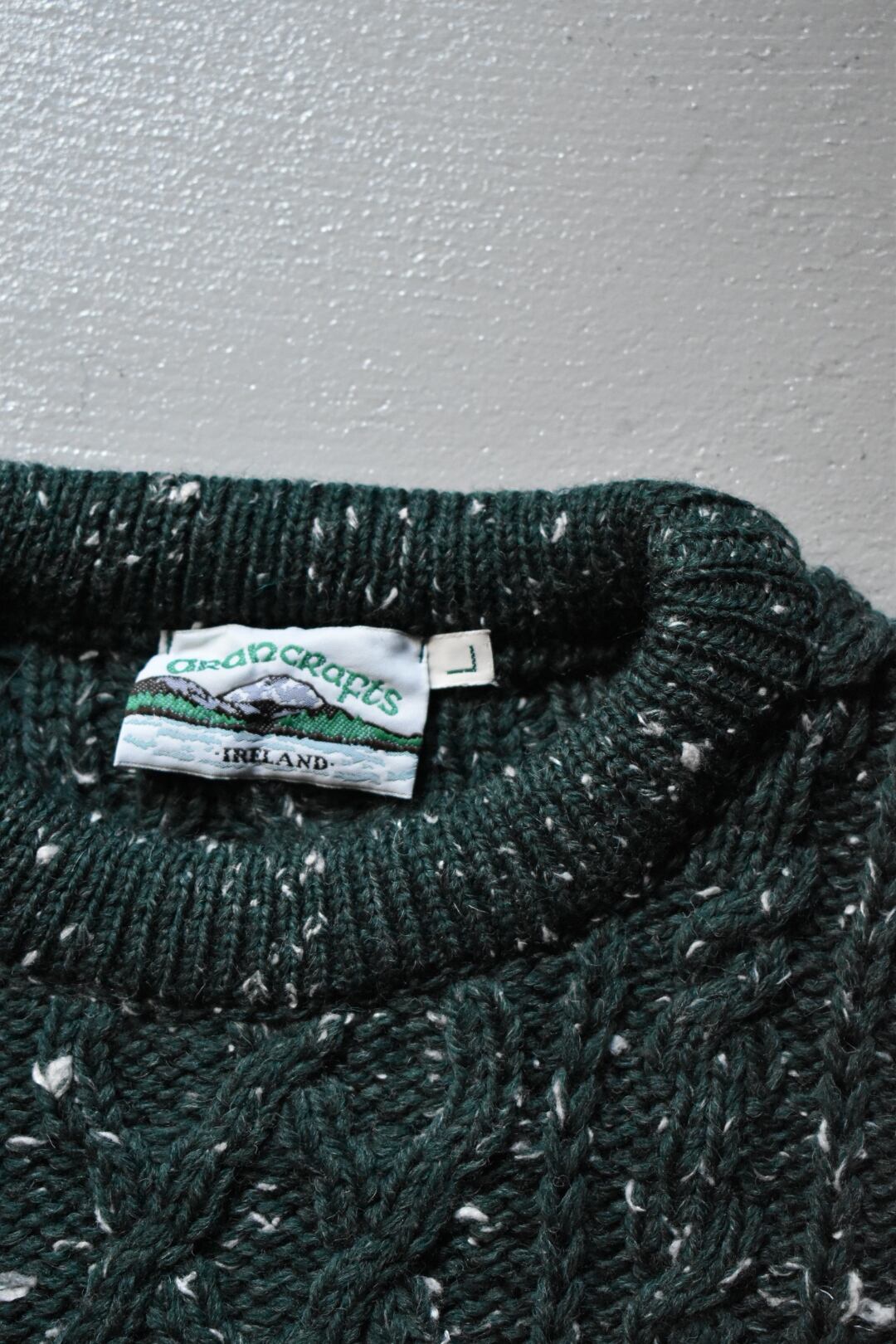 90‘s “fisherman knit sweater“ color green made in Irelandのご紹介となります。
