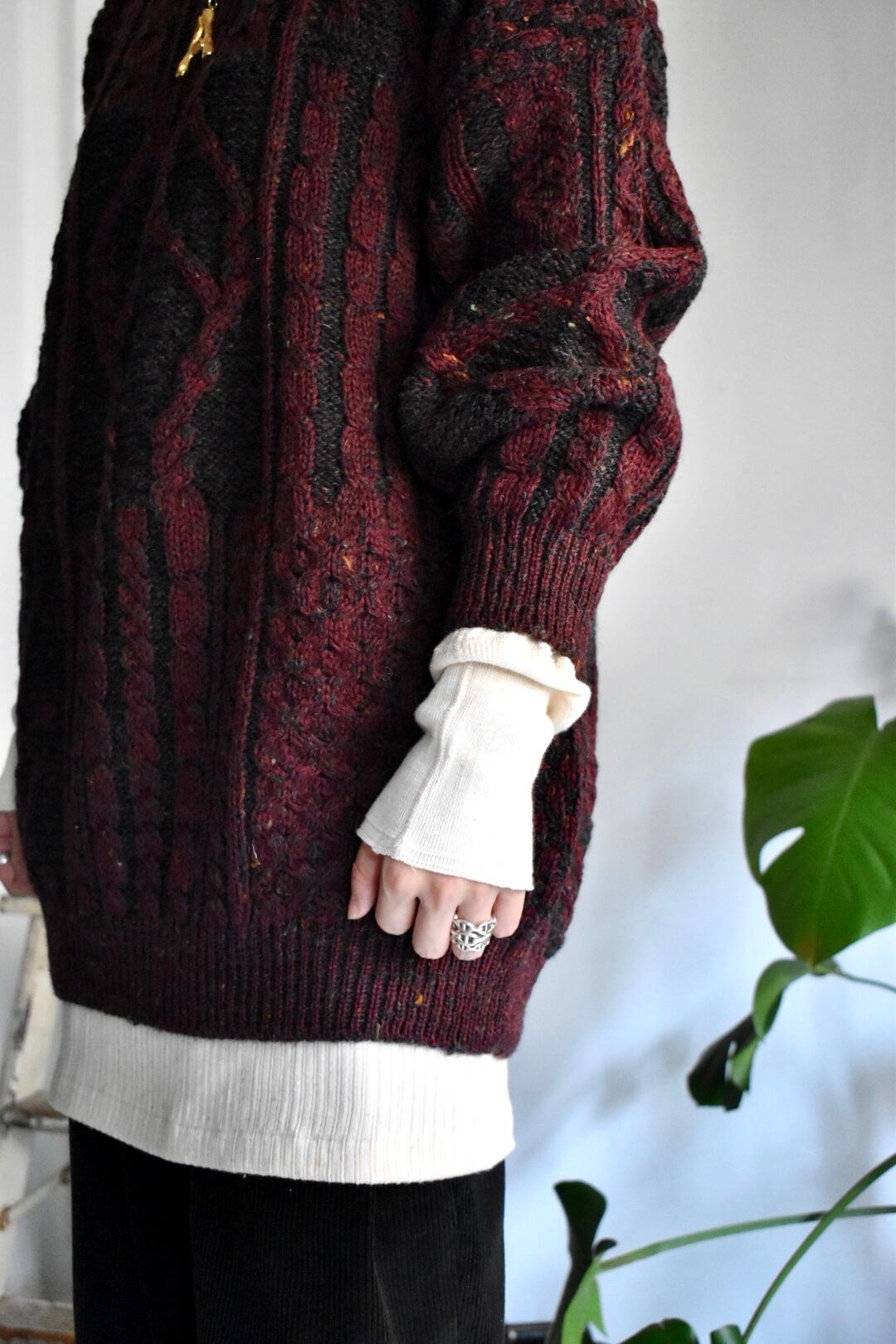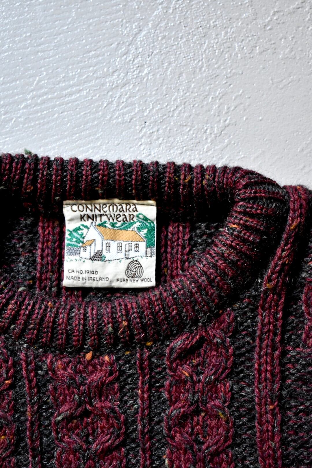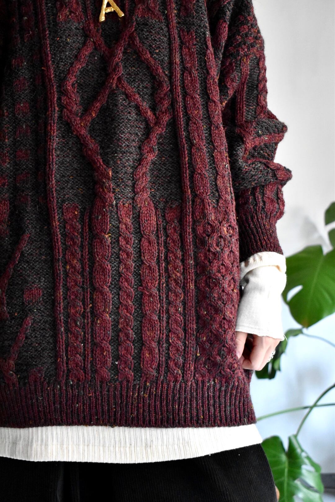90‘s “fisherman knit sweater“ color red made in Irelandのご紹介となります。