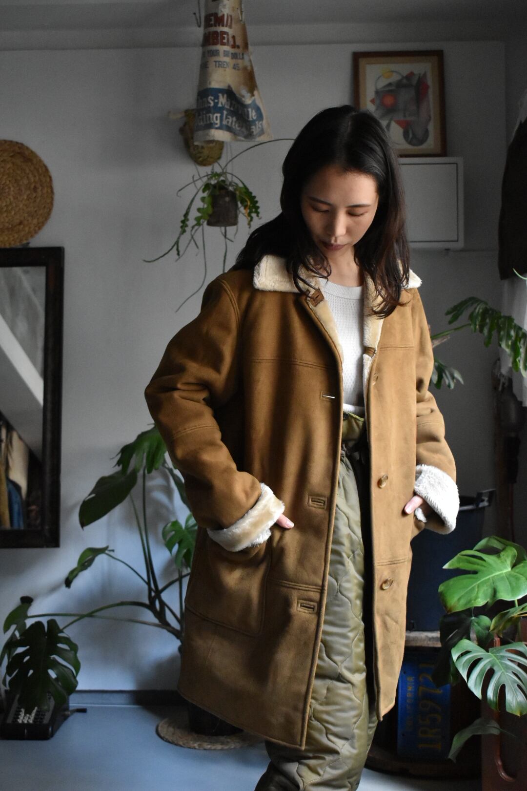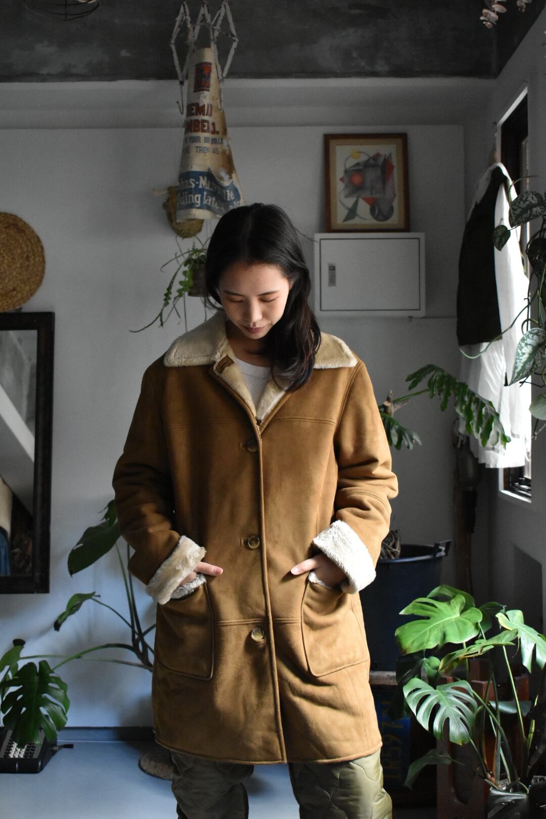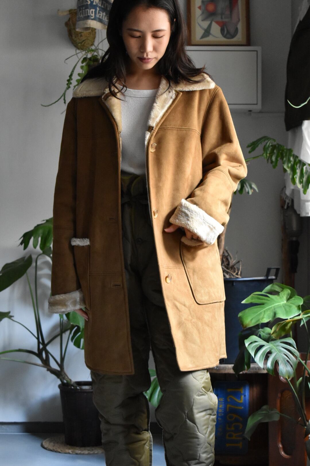 90‘s old “fake suede leather jkt“ “camel brown“