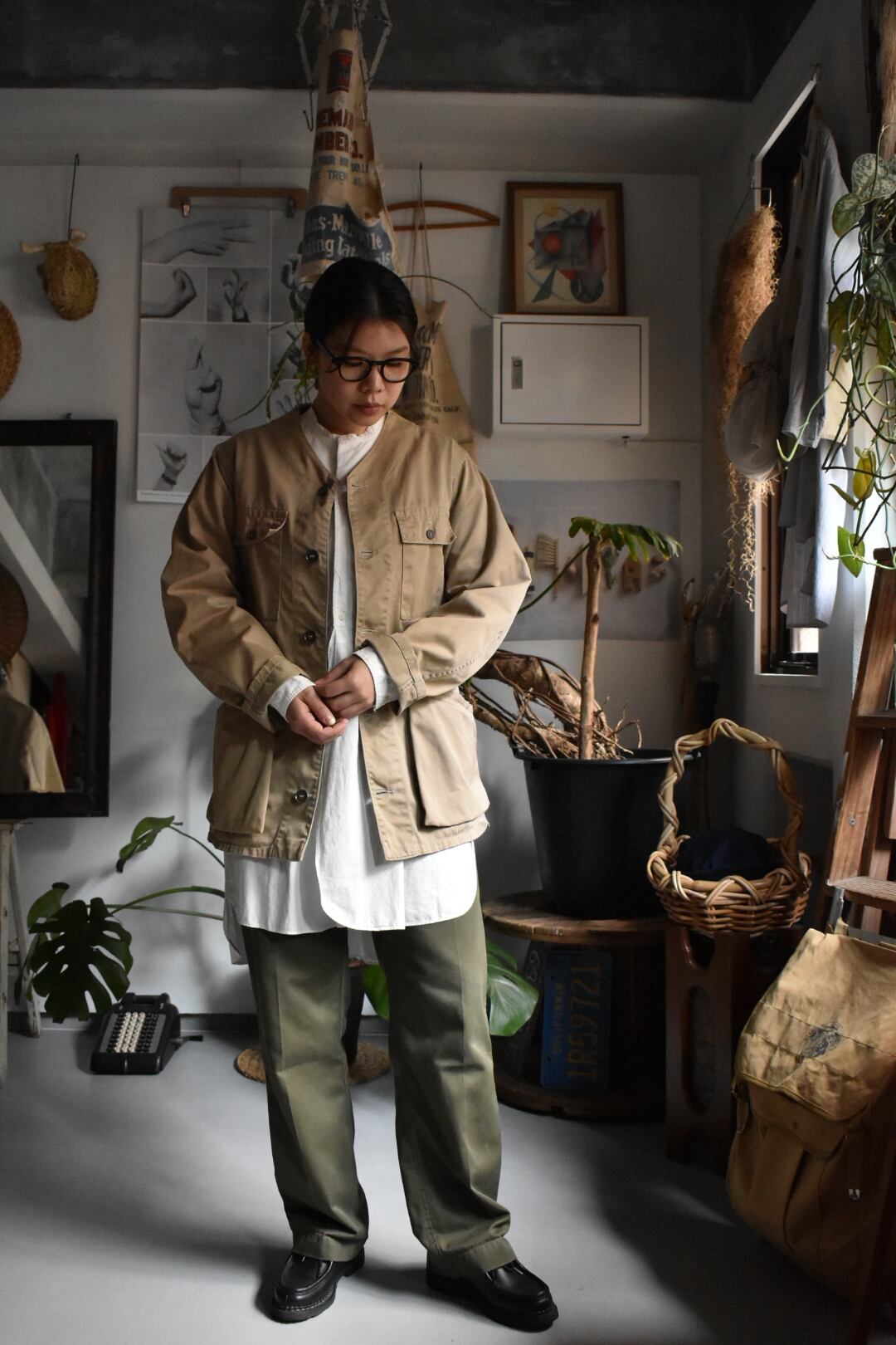 ワッペンやエルボーパッチ等は取り去られ、シンプルな印象です。