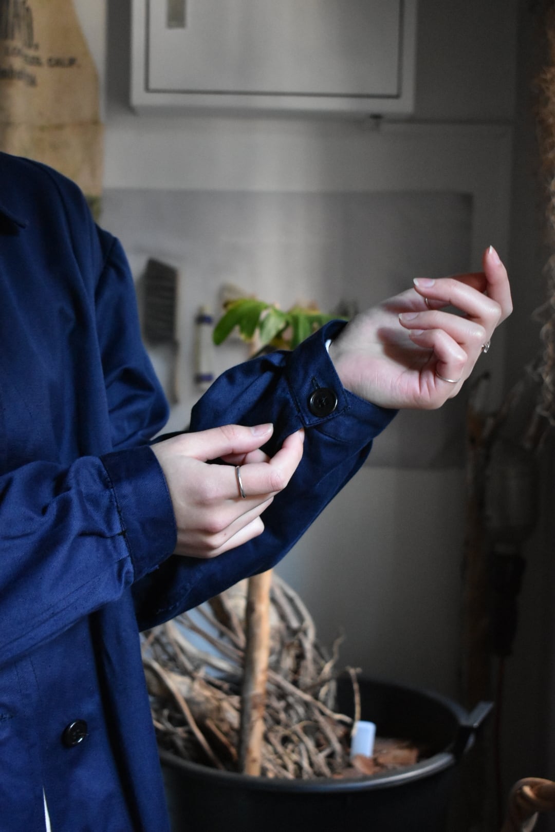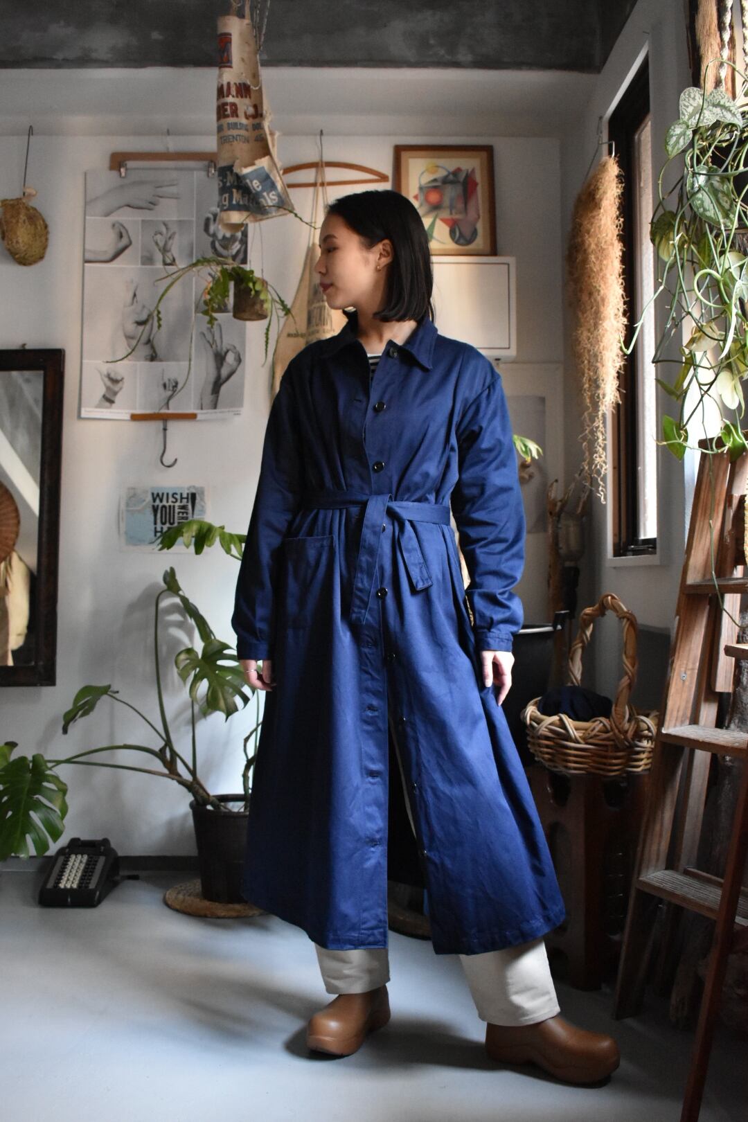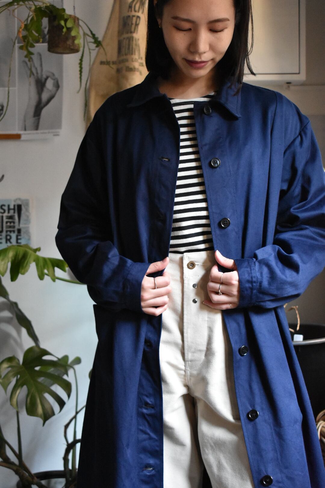深いブルーカラーで、生地感もしっかりとしたコットン地。