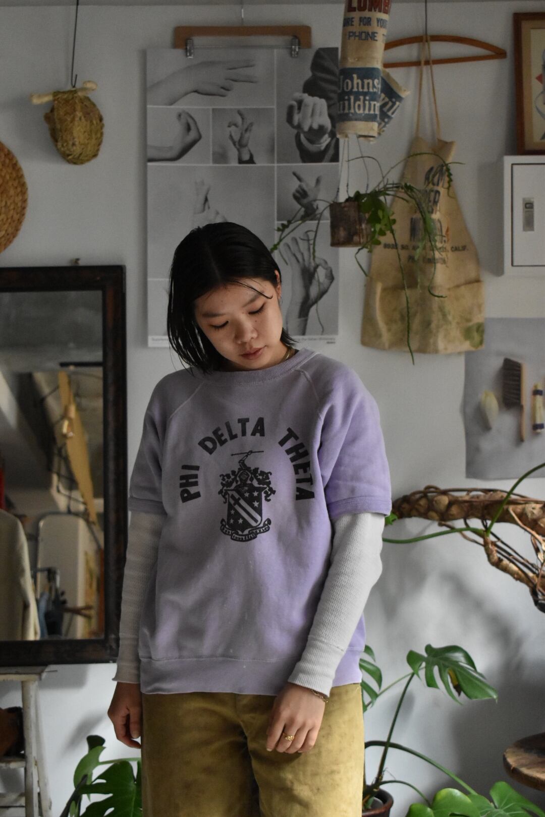 60‘s vintage “town craft“ “s/s sweat shirts“ “college print“ “purple“のご紹介となります。