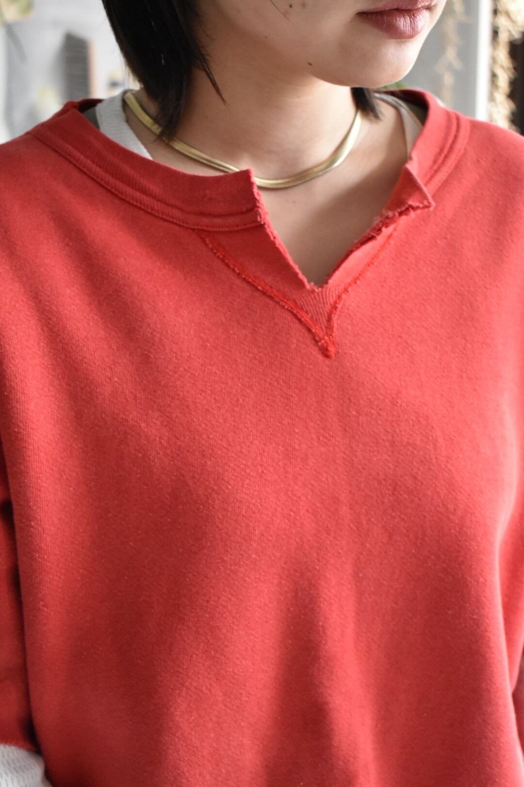 60‘s vintage “russel athletic“ “s/s front V sweat shirts“ “cut off“ “RED“のご紹介となります。