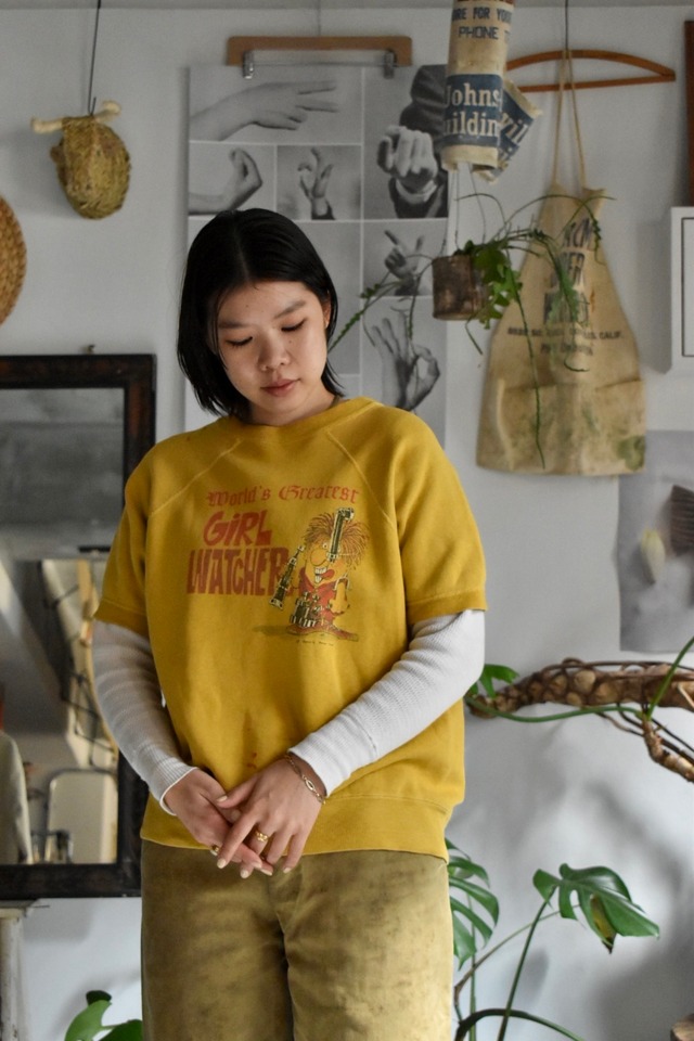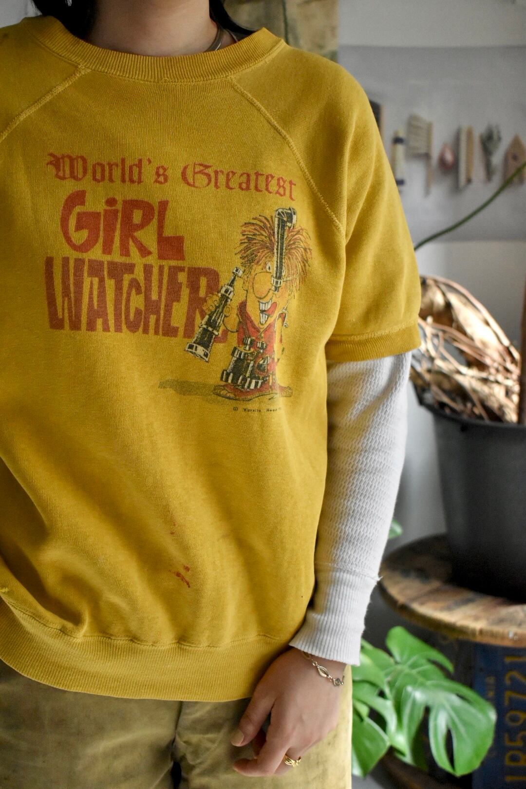 60‘s vintage “s/s sweat shirts“ “character print“ “mustard color“