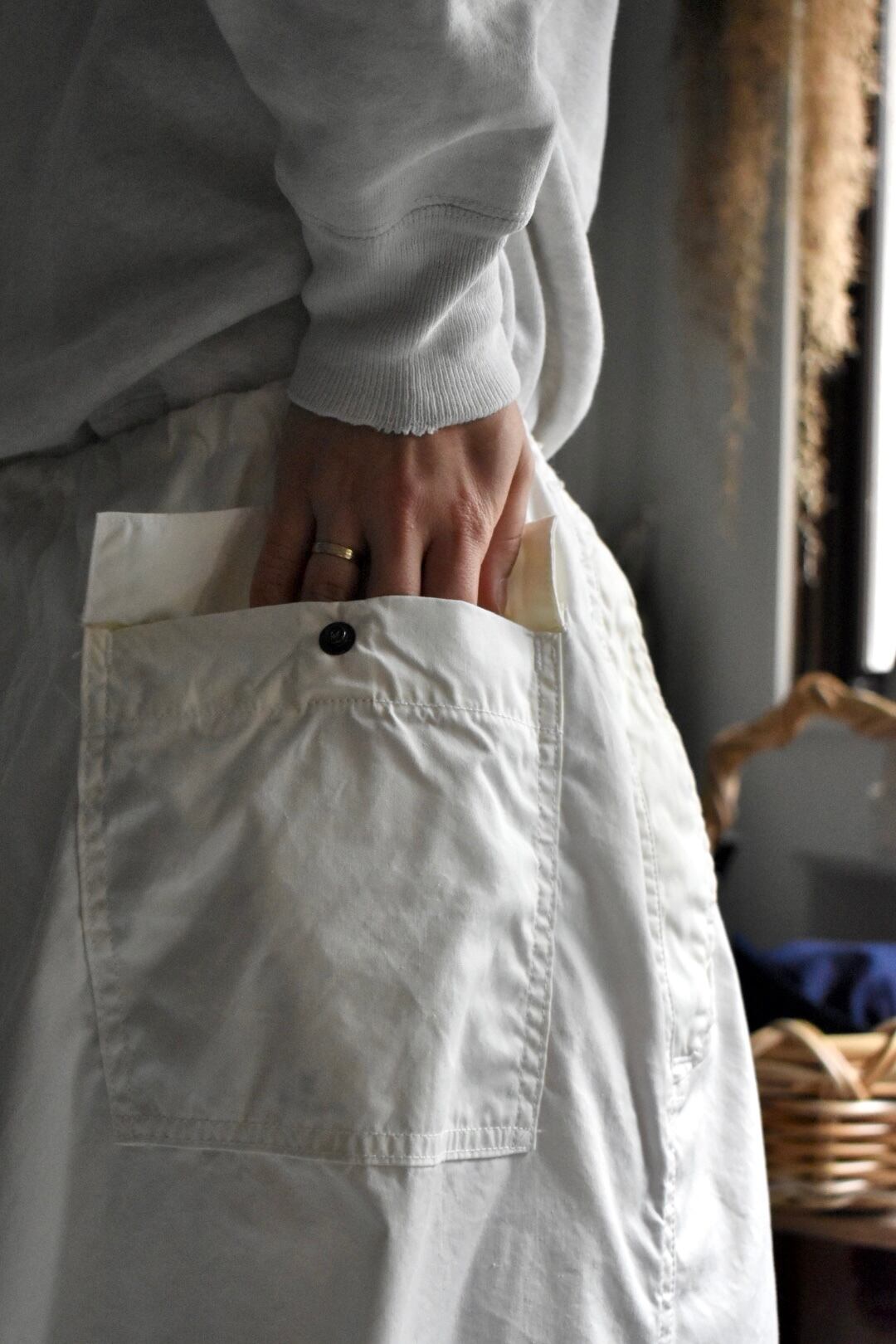 ポケットはオーバーパンツの性質上、貫通式となります。