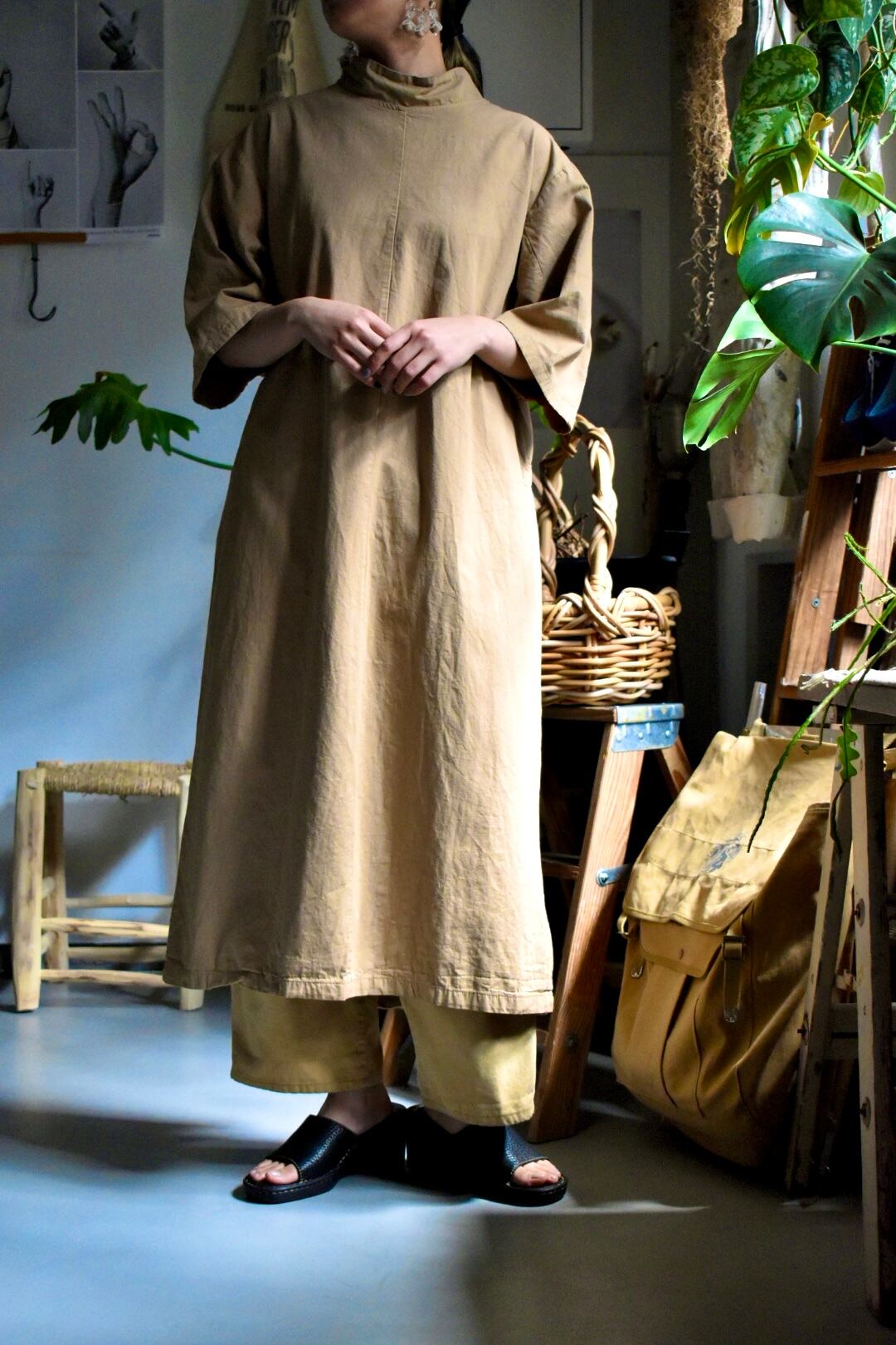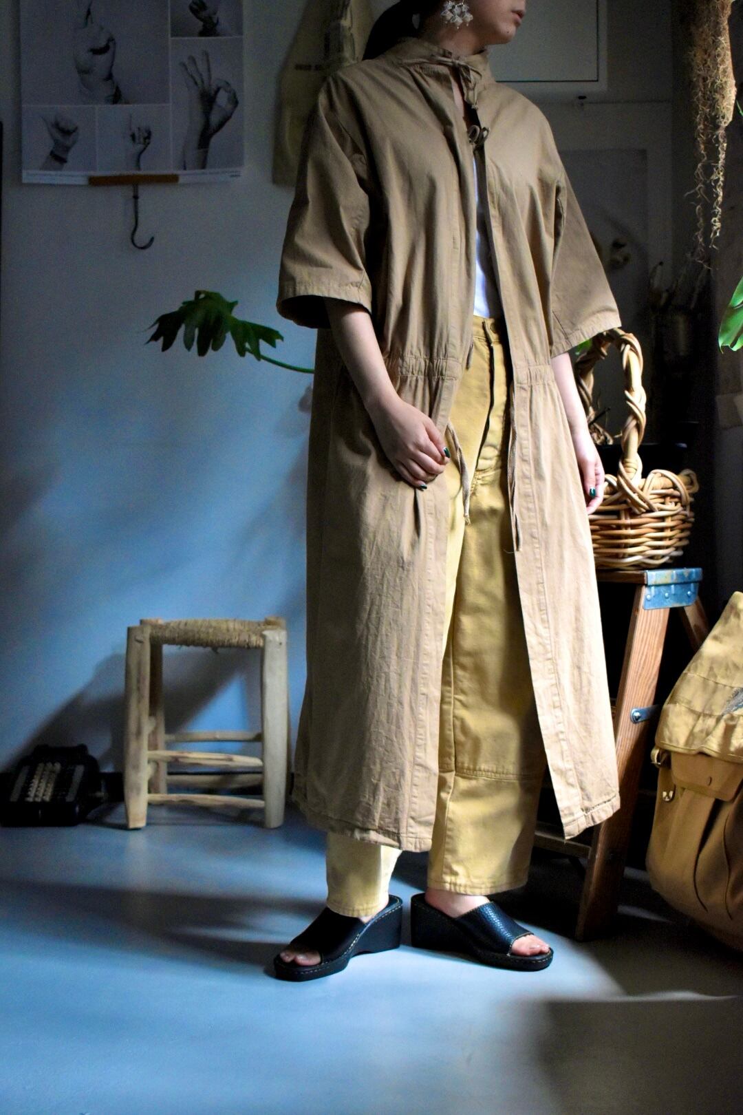 後染めのカーキカラーなので、雰囲気があって着やすいと思います。