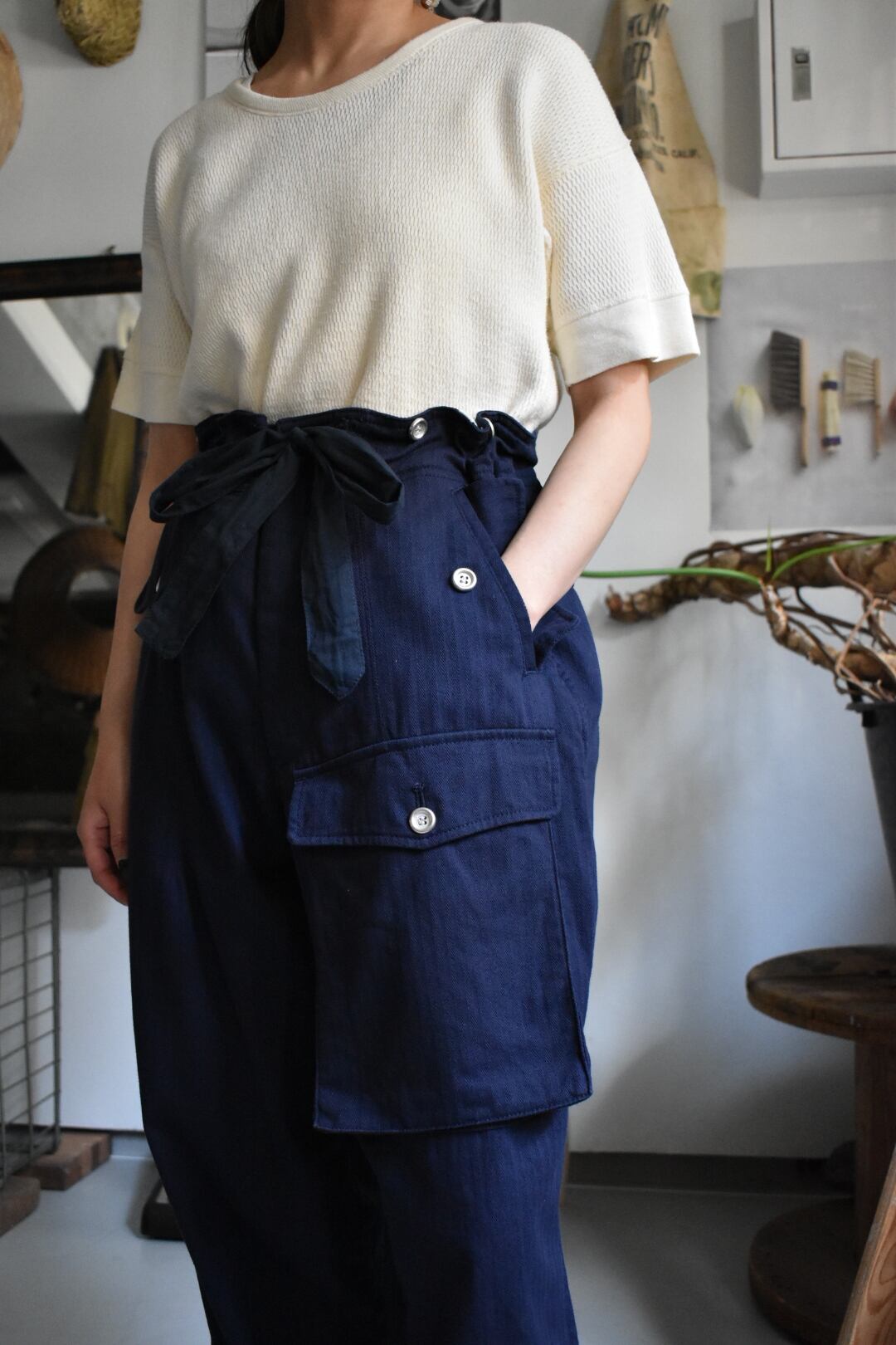 【size 3】ウエスト 45cm×2 (紐で絞れます) 股上36cm、股下70cm、裾幅20cm、ヒップ56㎝、ワタリ34㎝、総丈102㎝